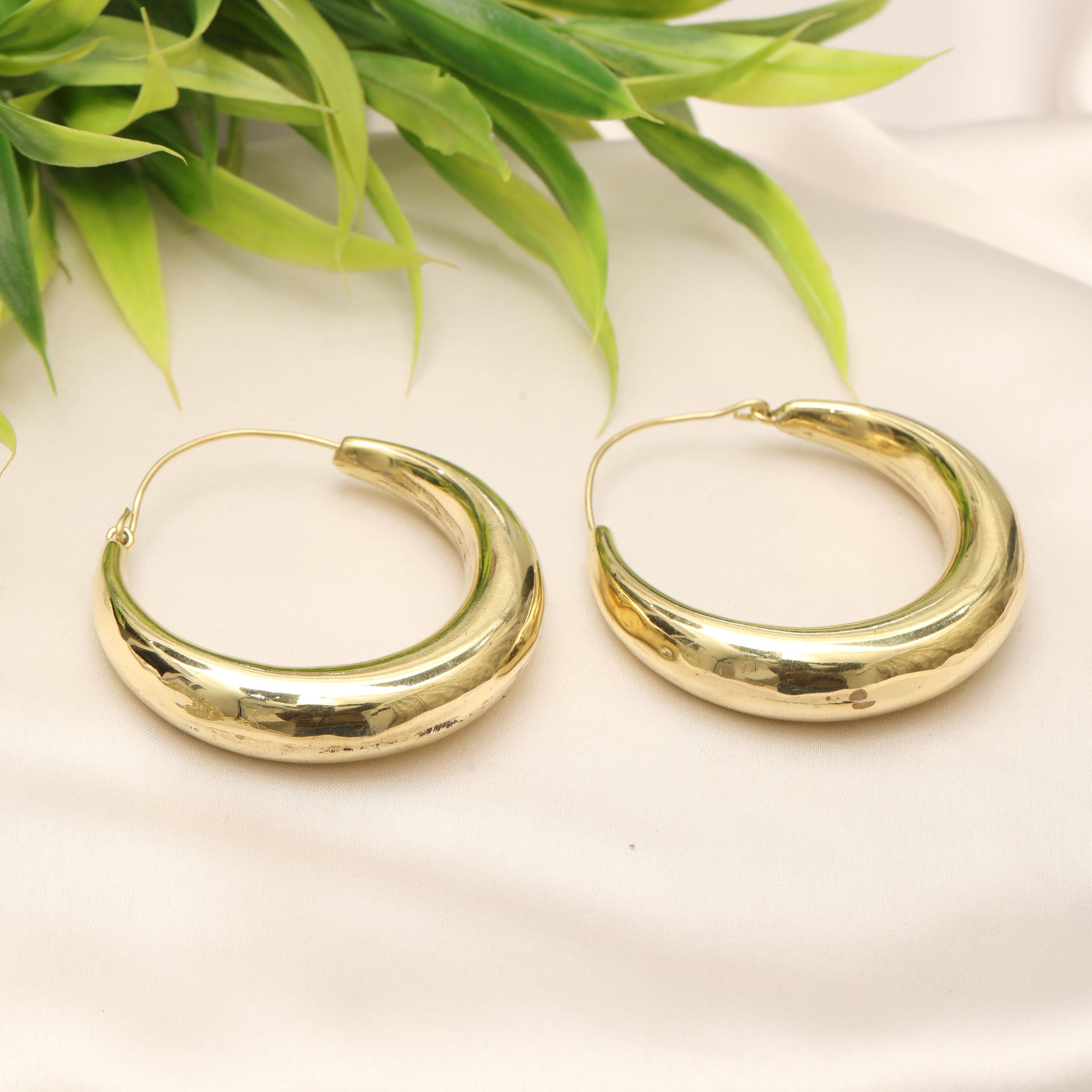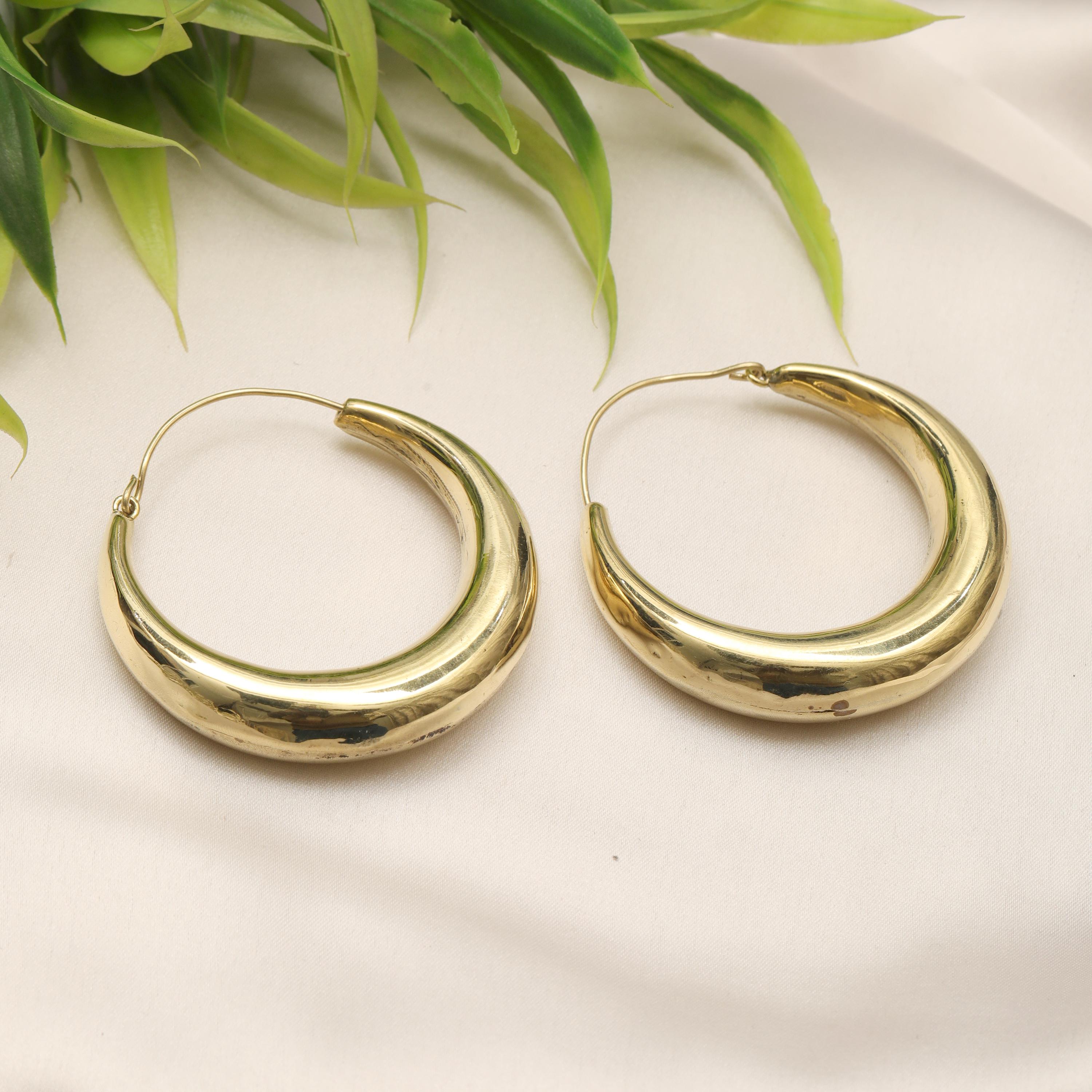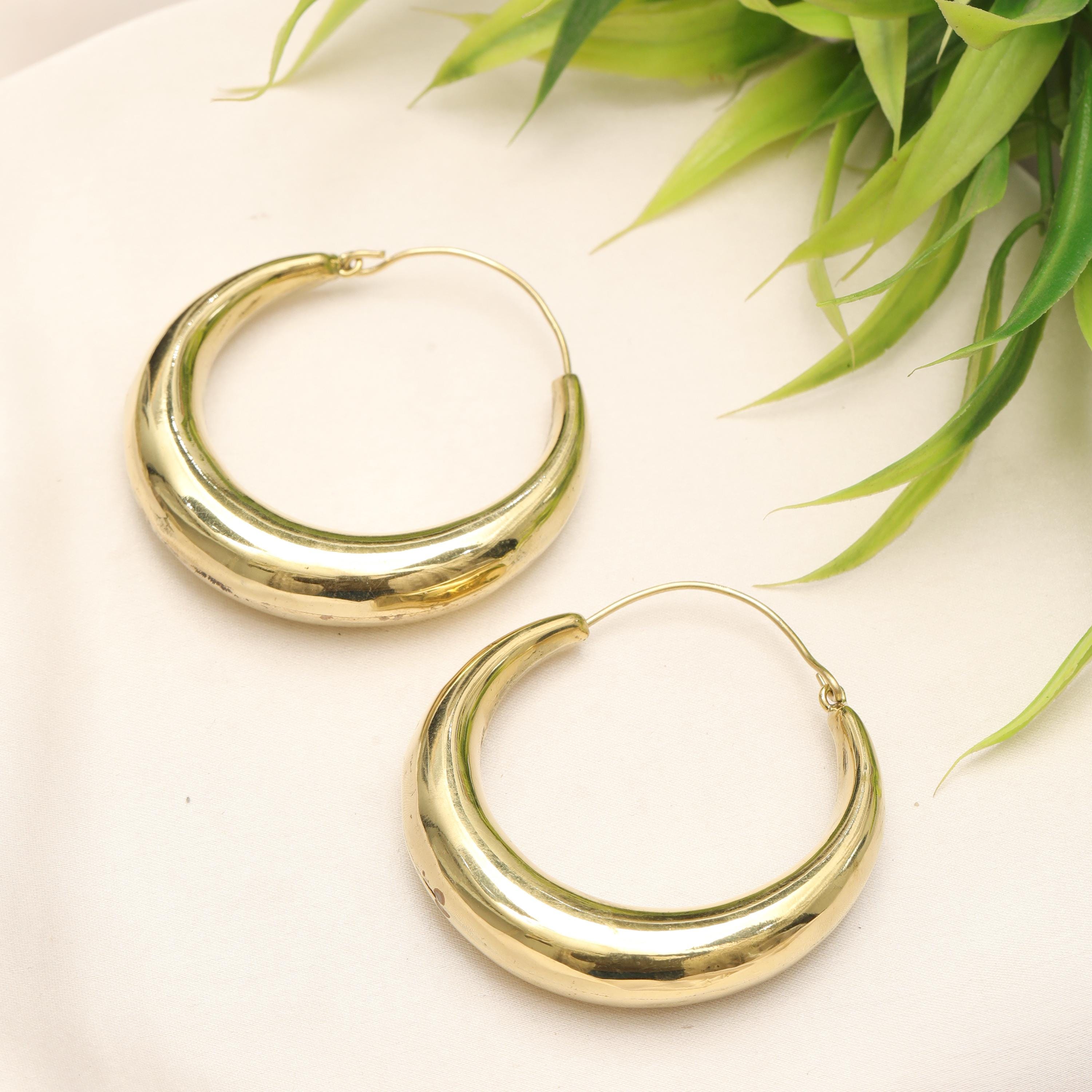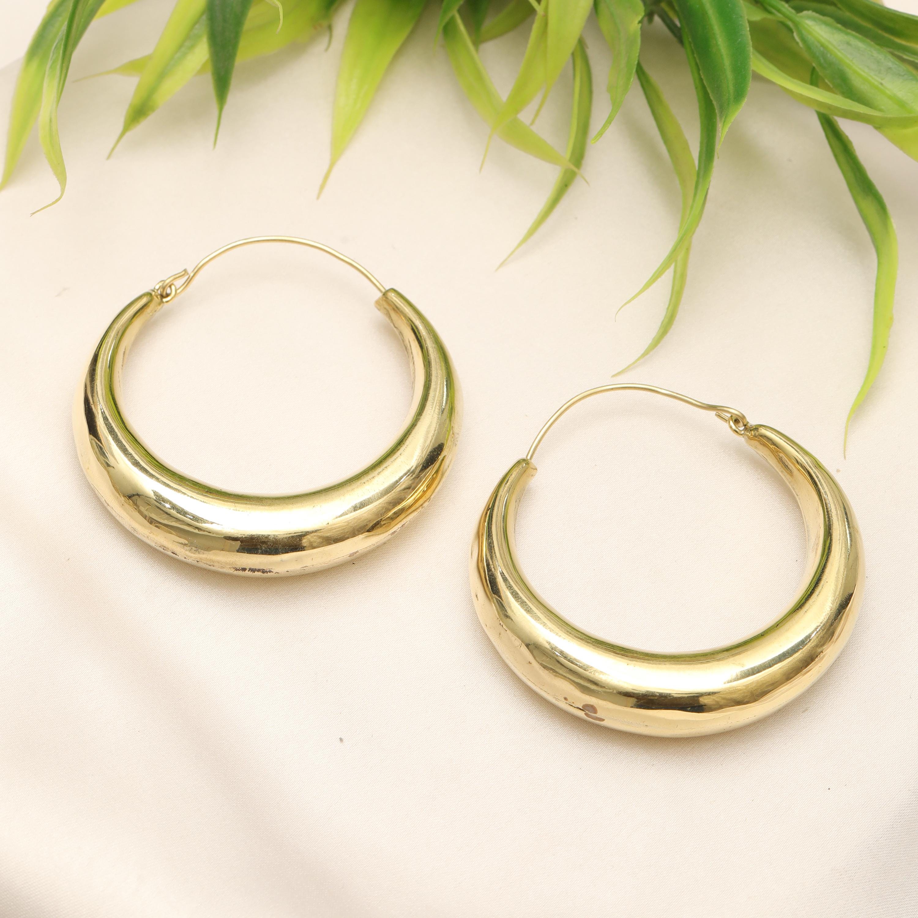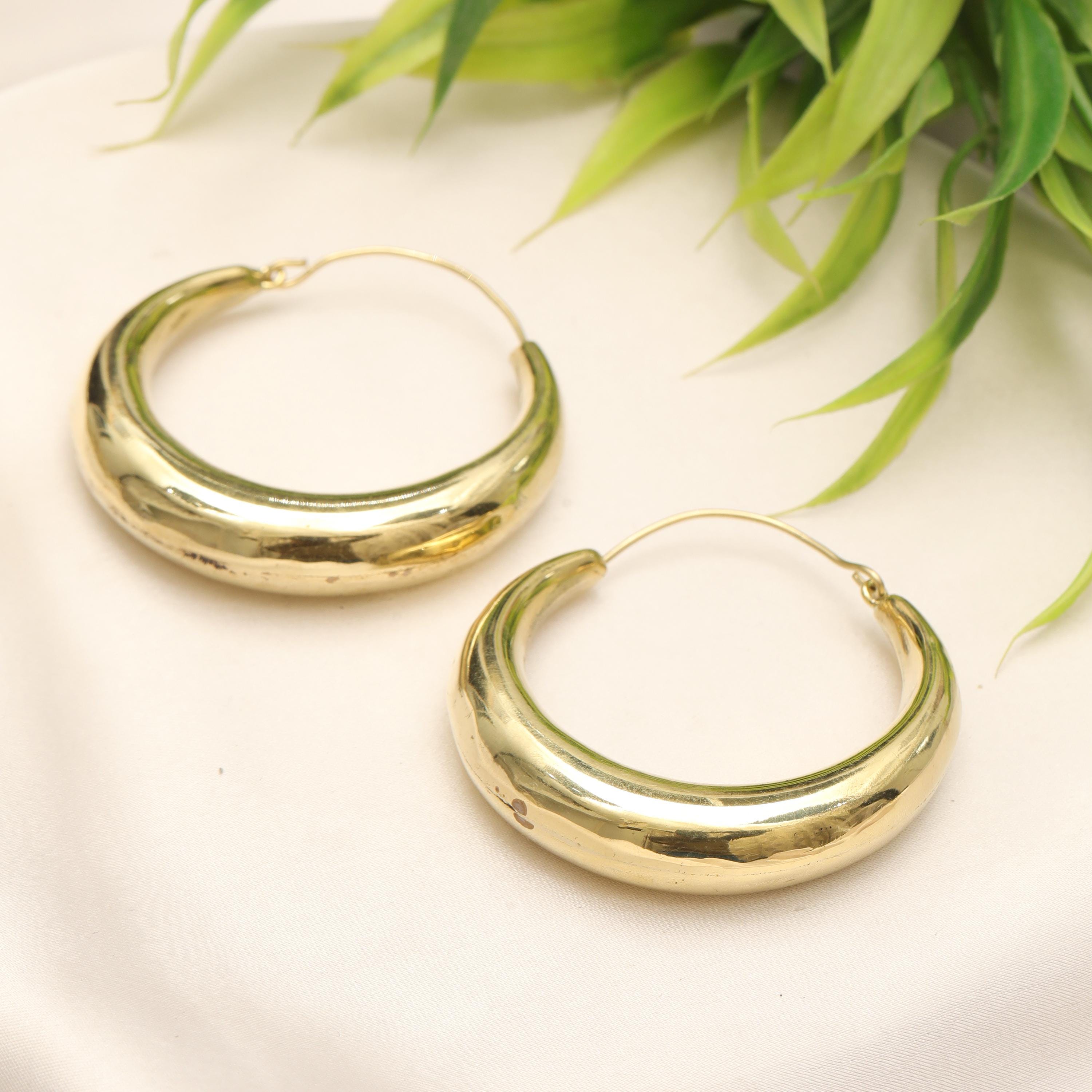 Very Large Hoop Earrings in Silver or Gold Brass. These Creoles are Thick but Light, Minimalist Sleek style to Complement all Styles
