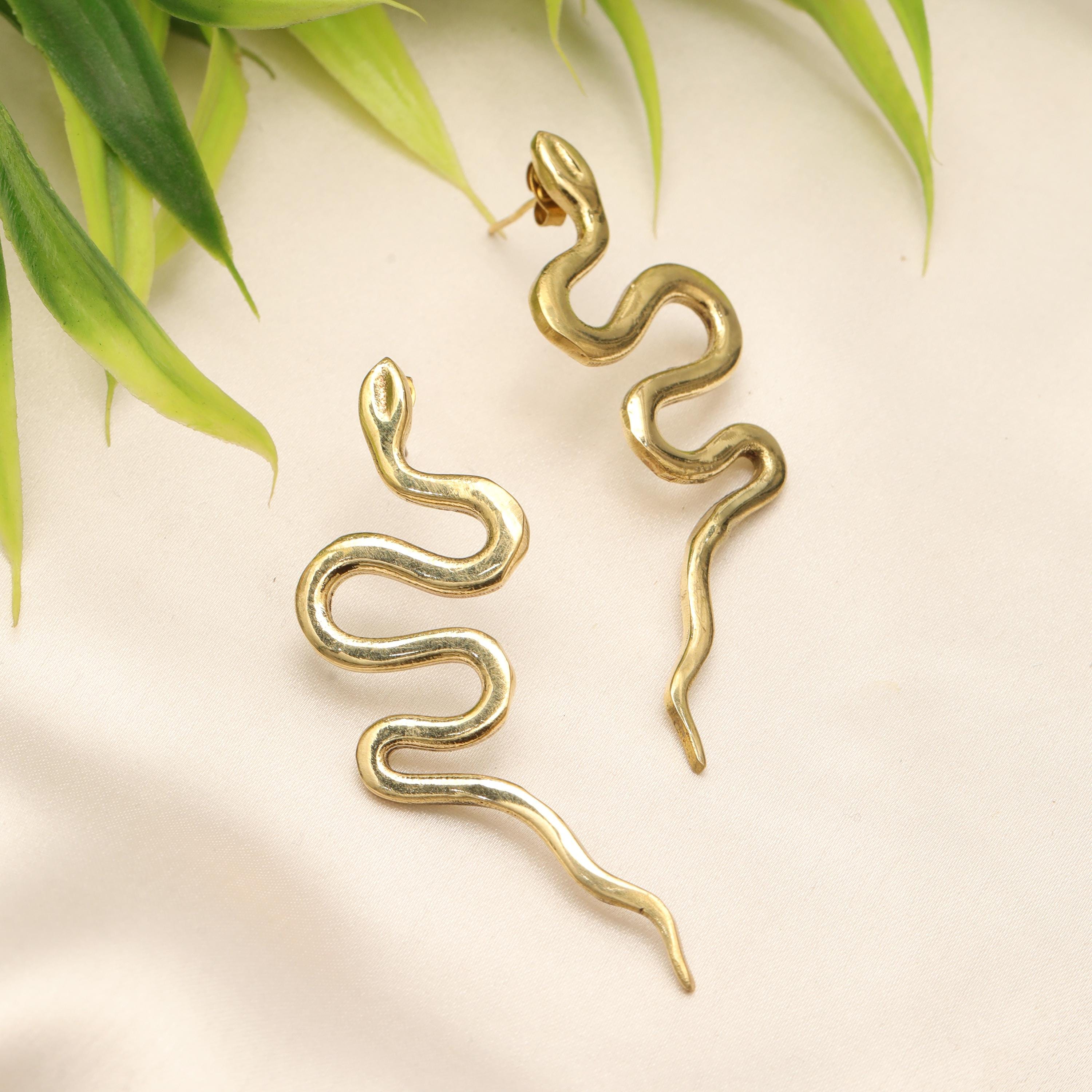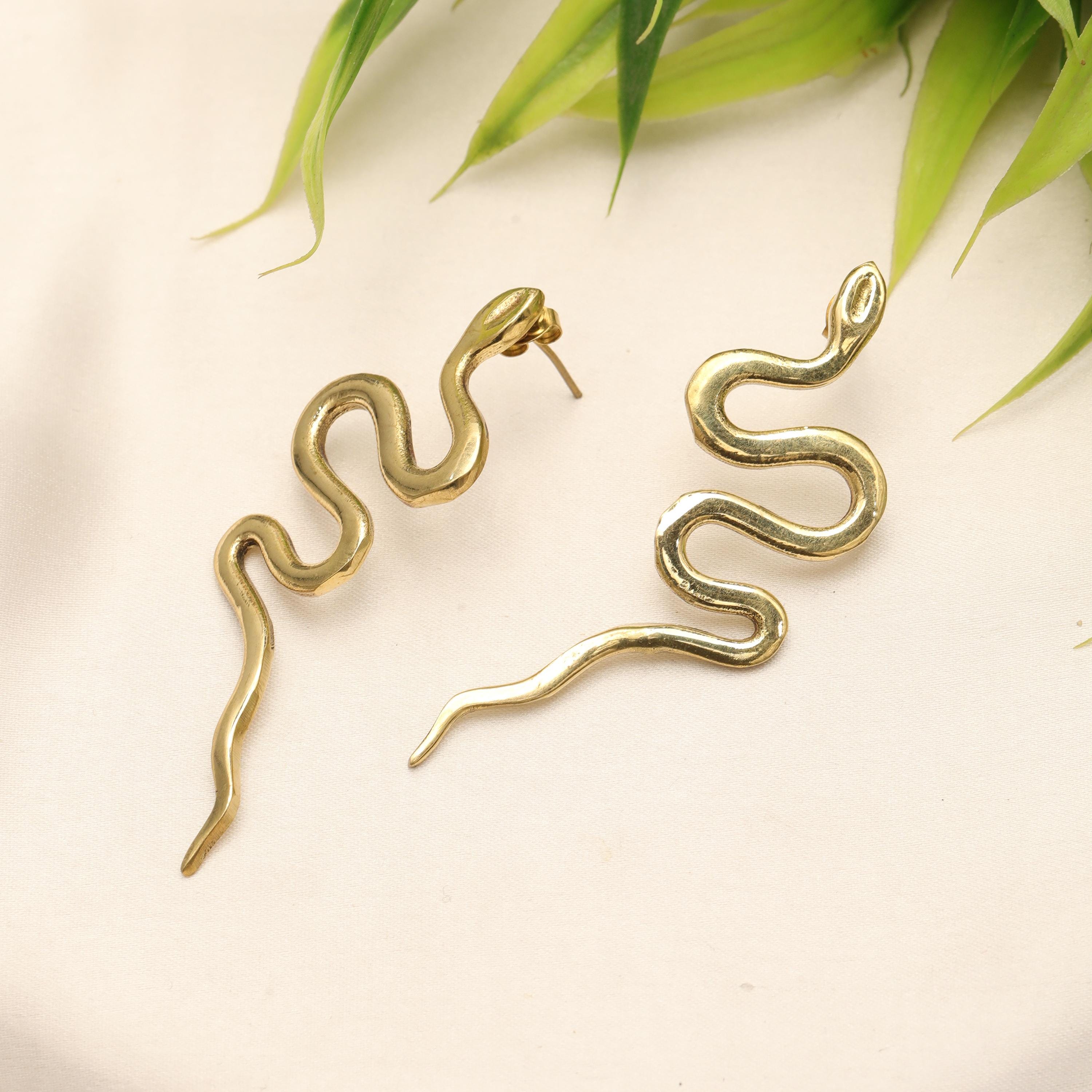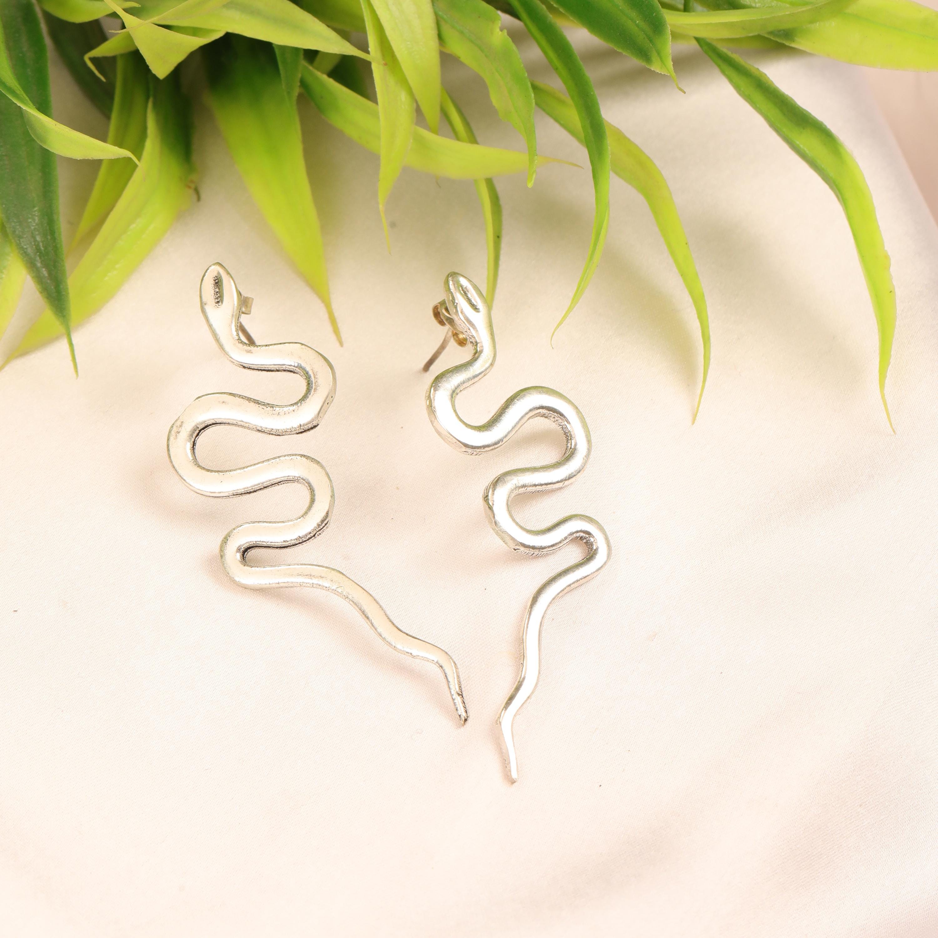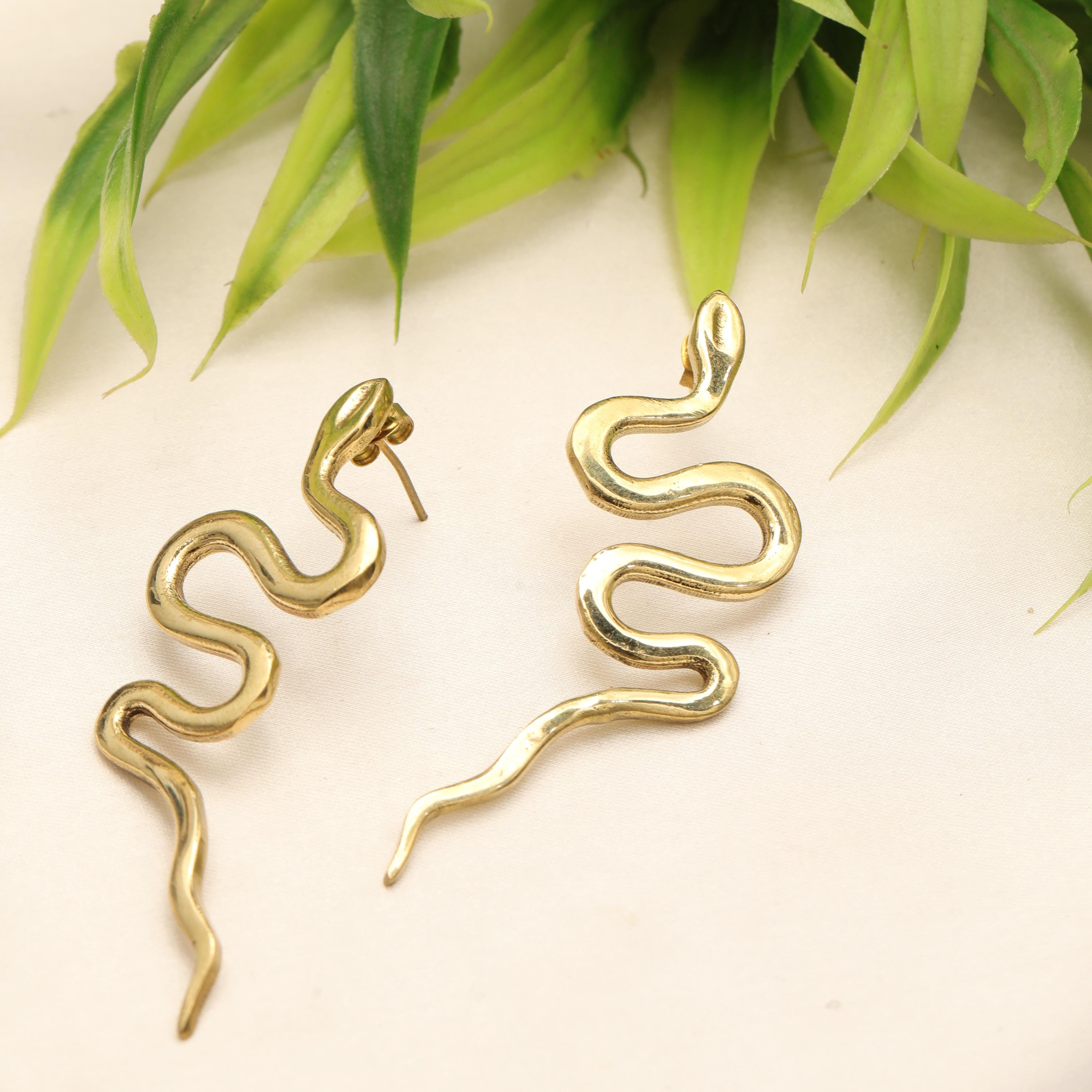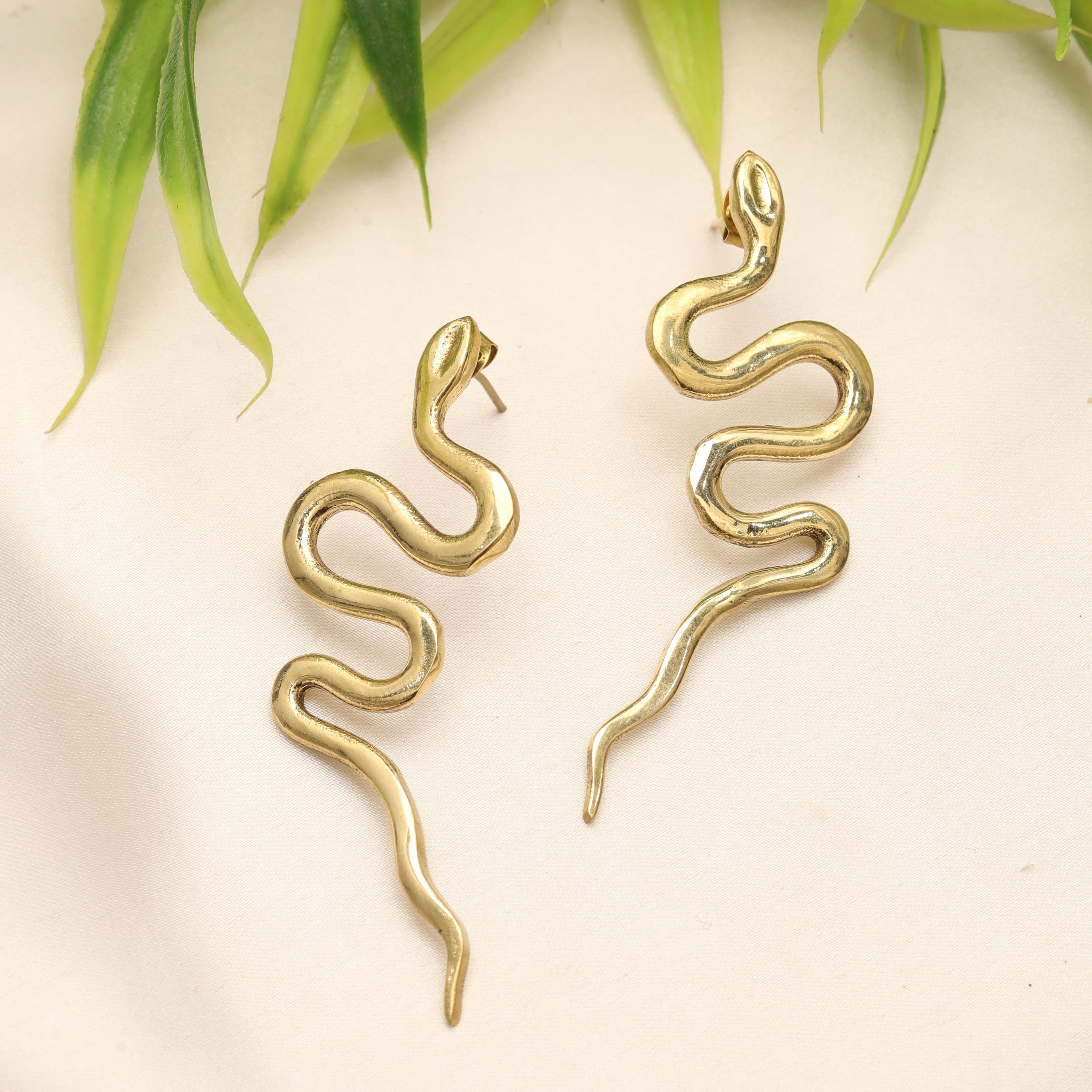 Original Ethnic Silver Or Golden Handmade Brass Earrings. Beautiful and Delicate, These Stud Earrings are Inspired by Ethnic Viking Jewelry Worn Directly Over the Ears and Gives the Impression of "Floating" on the Ear Lobe without Attachment. They Symbolize the Serpent Jormundgand Rival of the God Thor. These earrings are very elegant and they will illuminate your face. Suitable for Classic Ear Piercings.