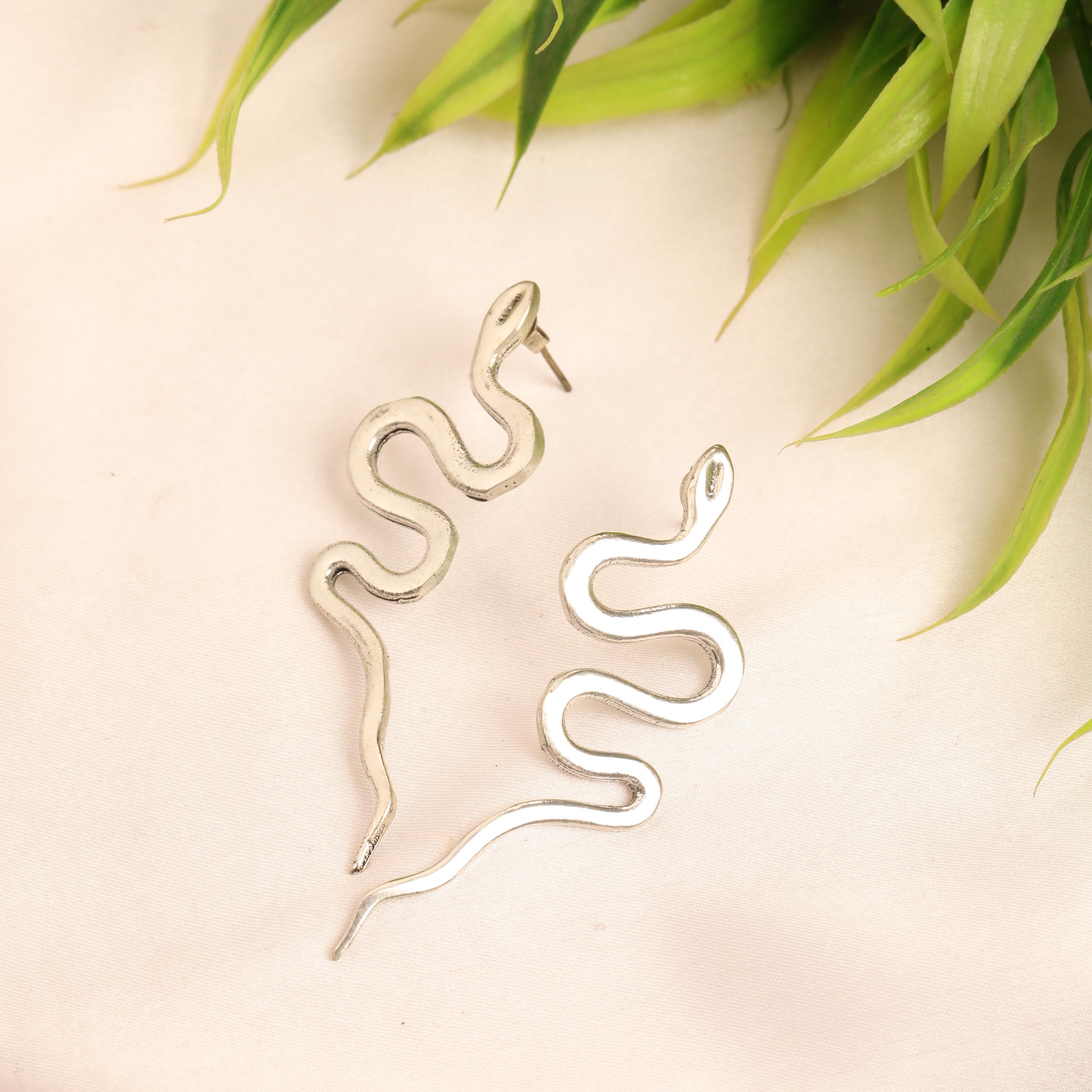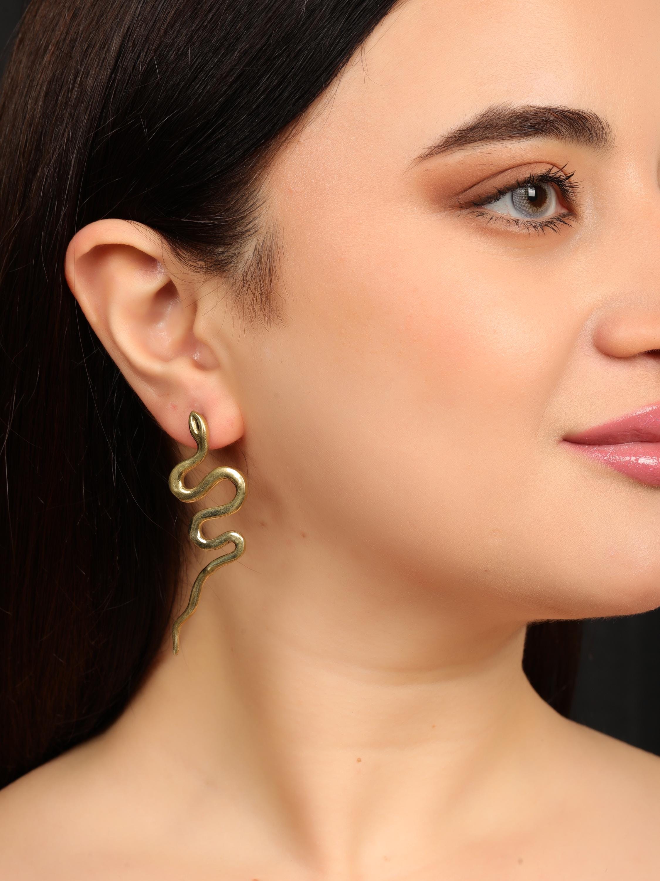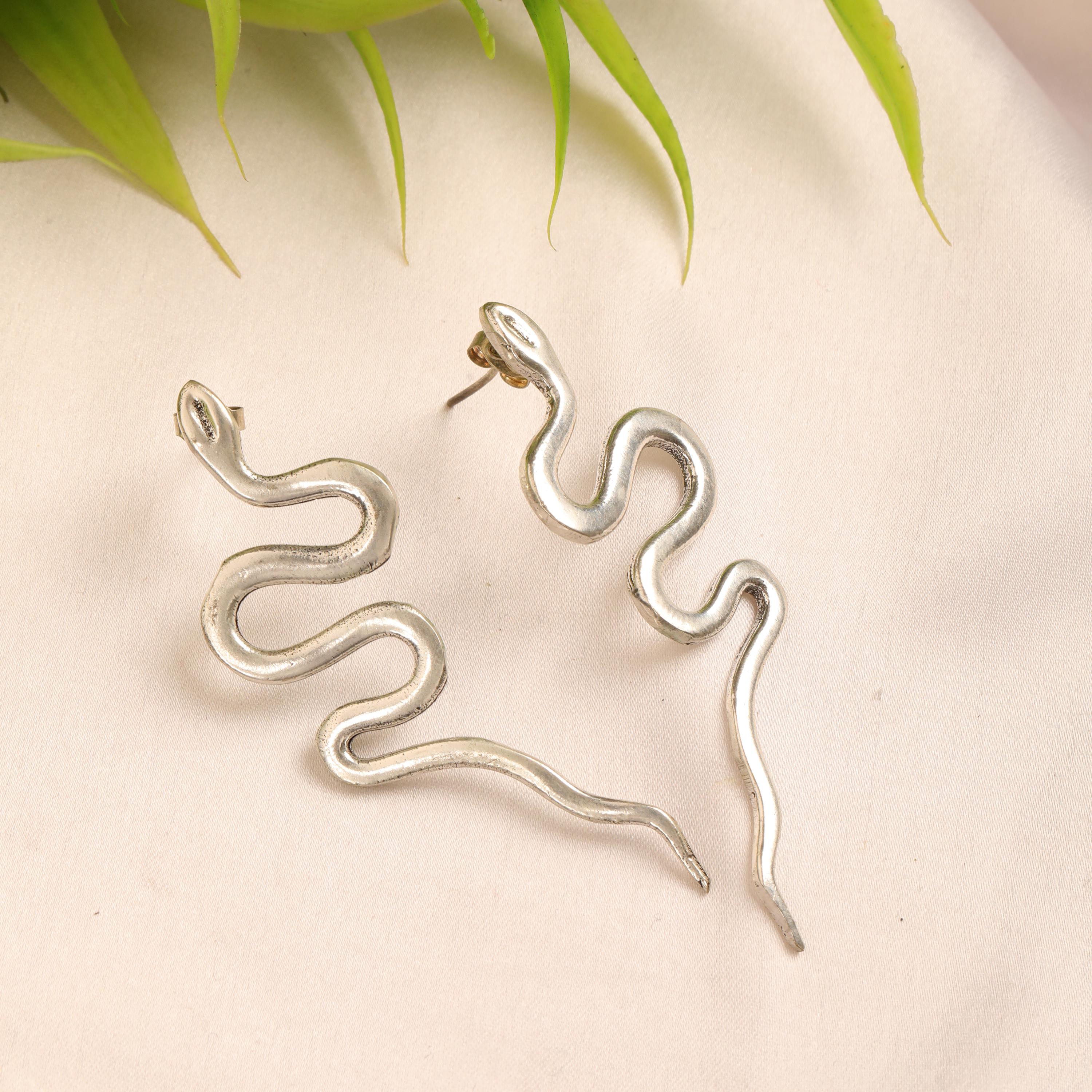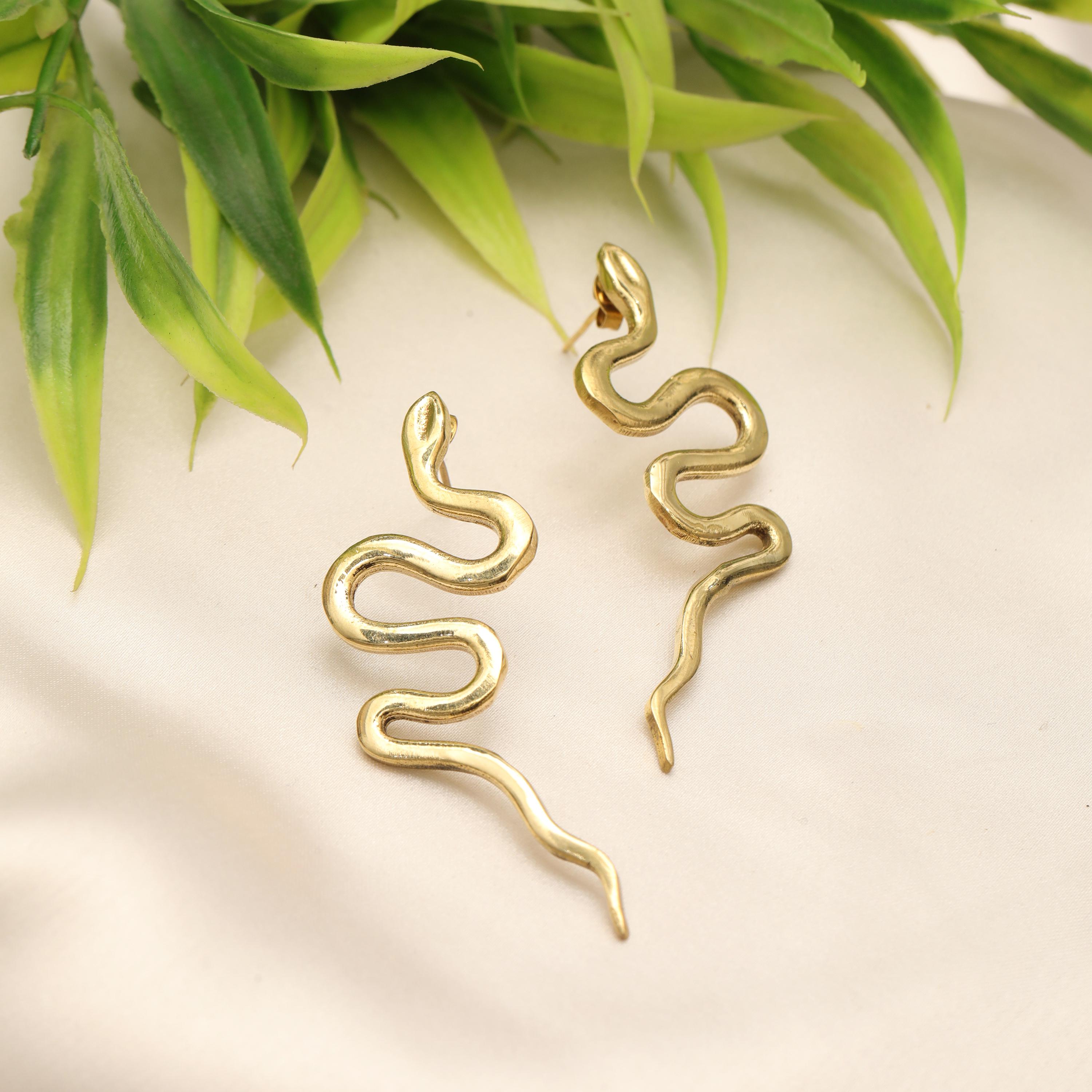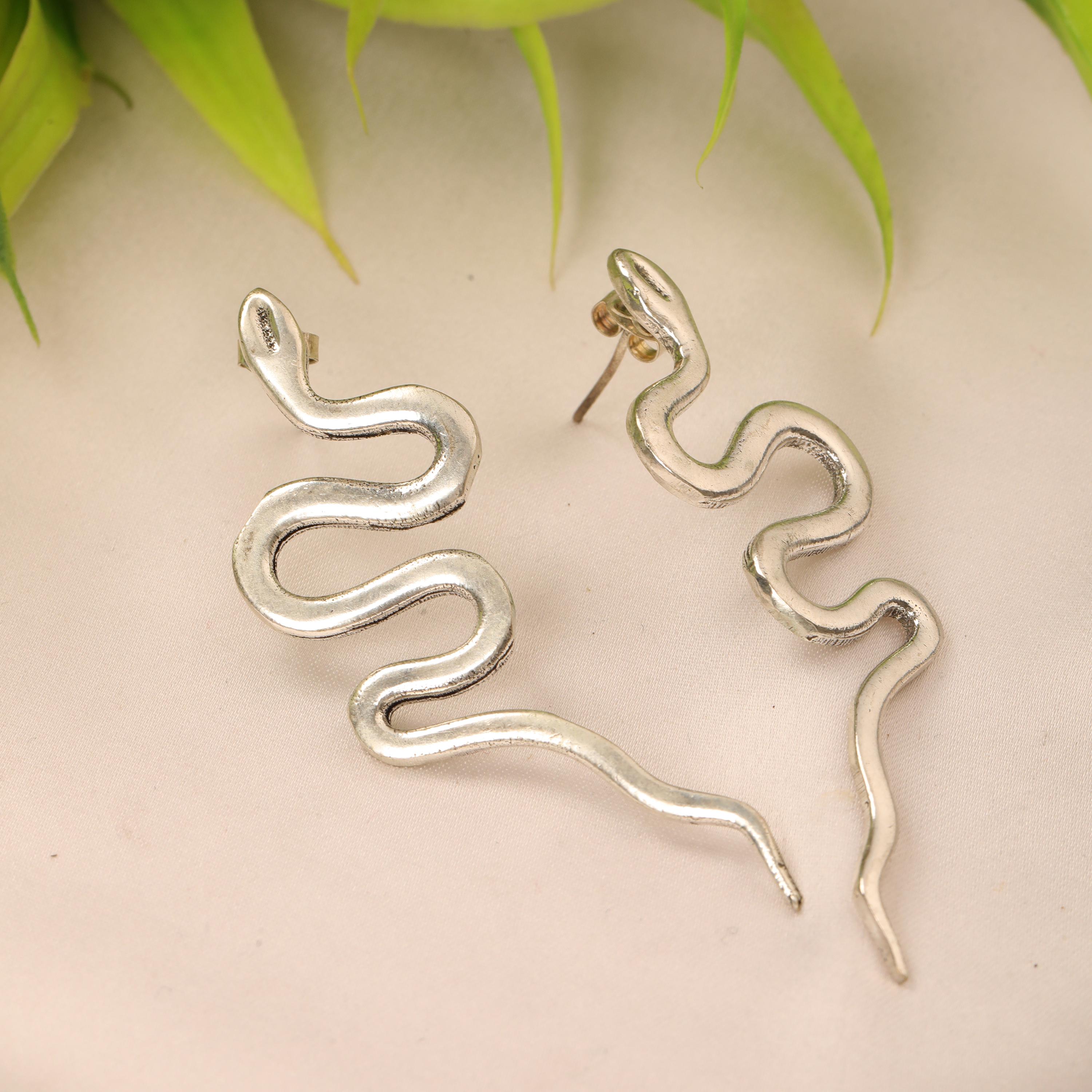 Original Ethnic Silver Or Golden Handmade Brass Earrings. Beautiful and Delicate, These Stud Earrings are Inspired by Ethnic Viking Jewelry Worn Directly Over the Ears and Gives the Impression of "Floating" on the Ear Lobe without Attachment. They Symbolize the Serpent Jormundgand Rival of the God Thor. These earrings are very elegant and they will illuminate your face. Suitable for Classic Ear Piercings.