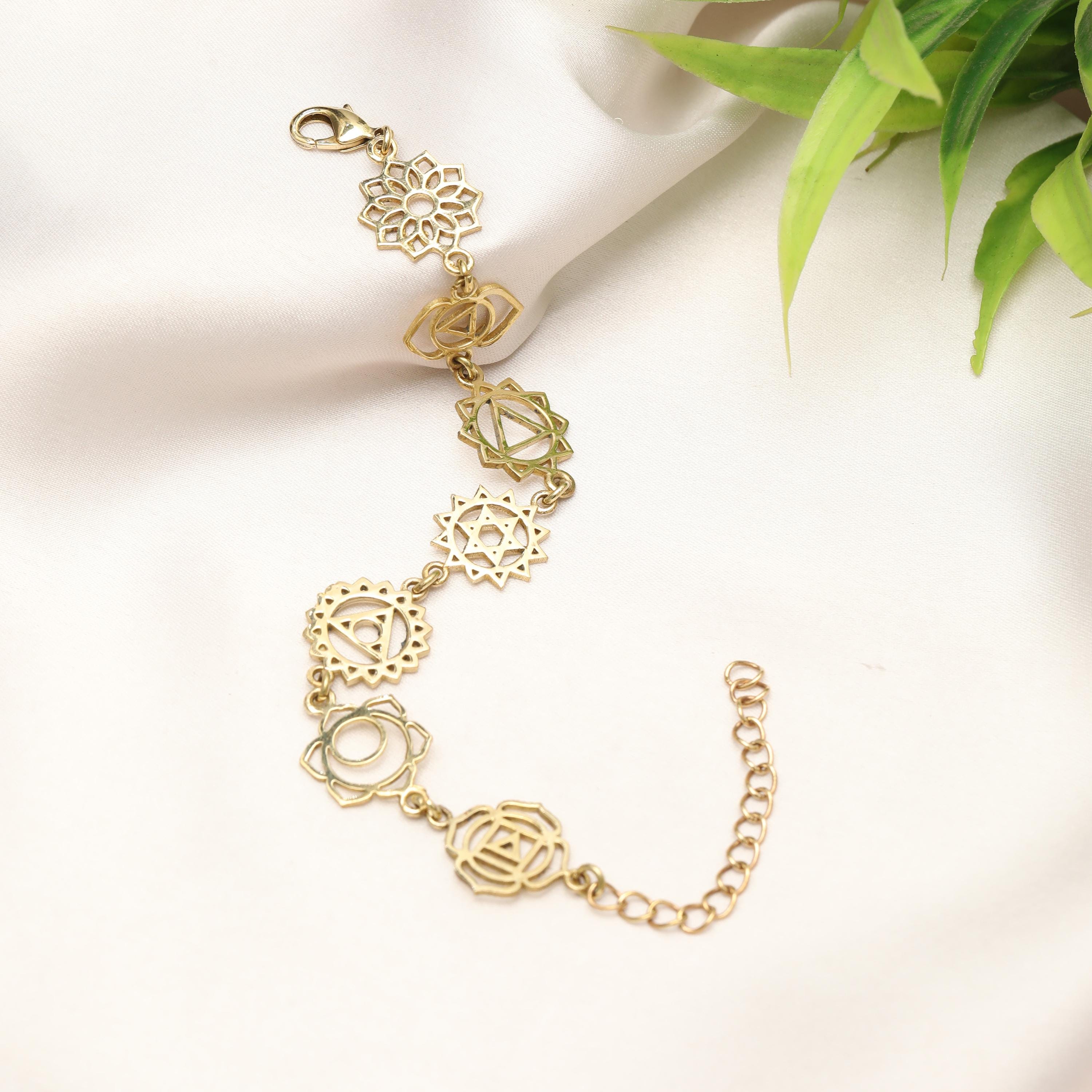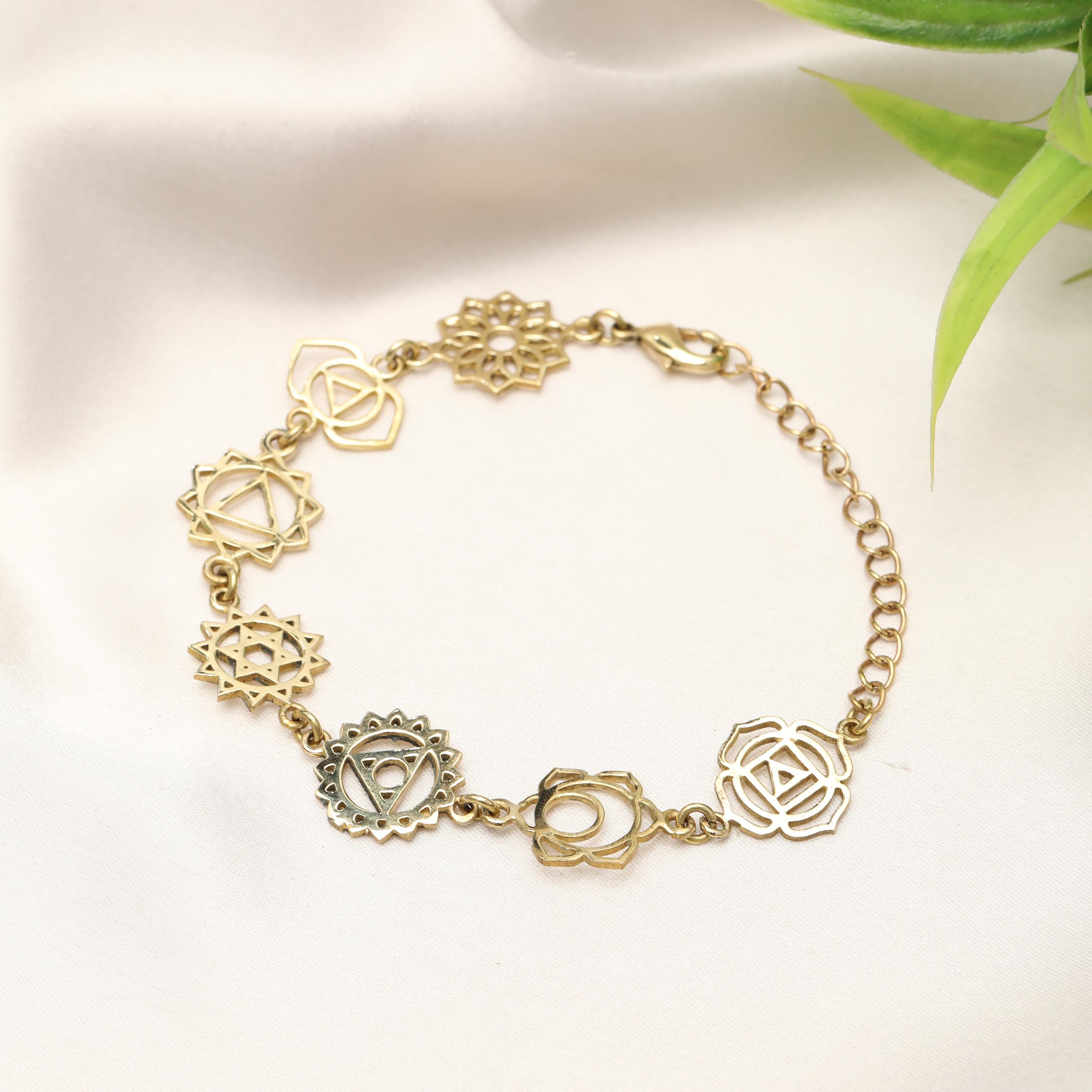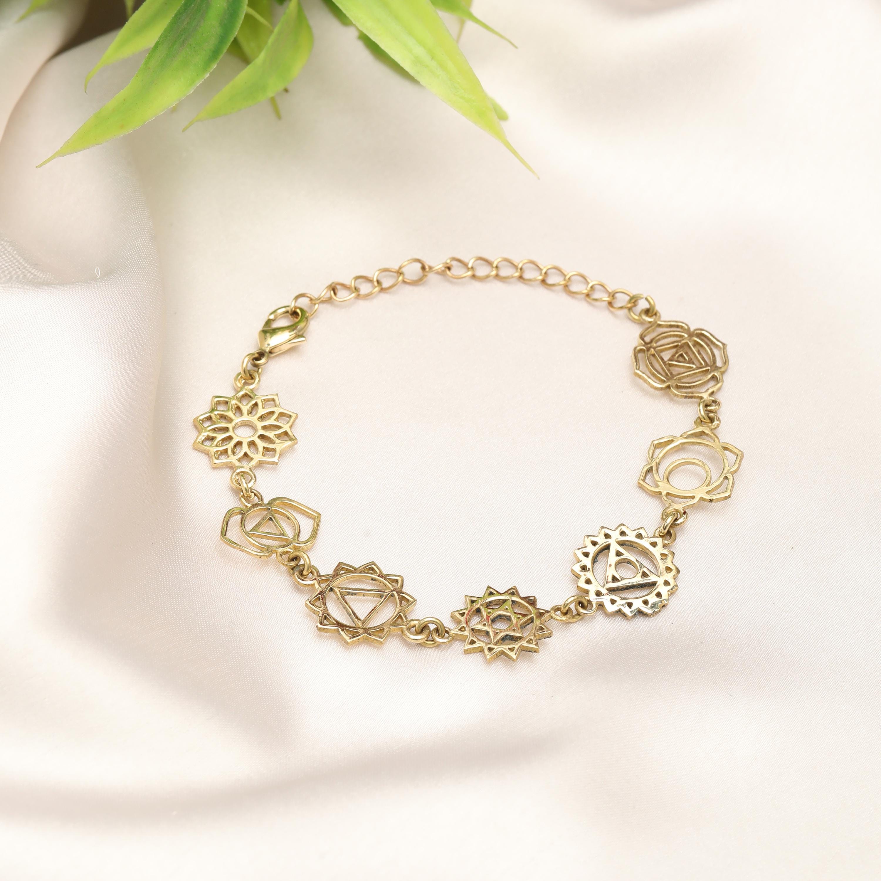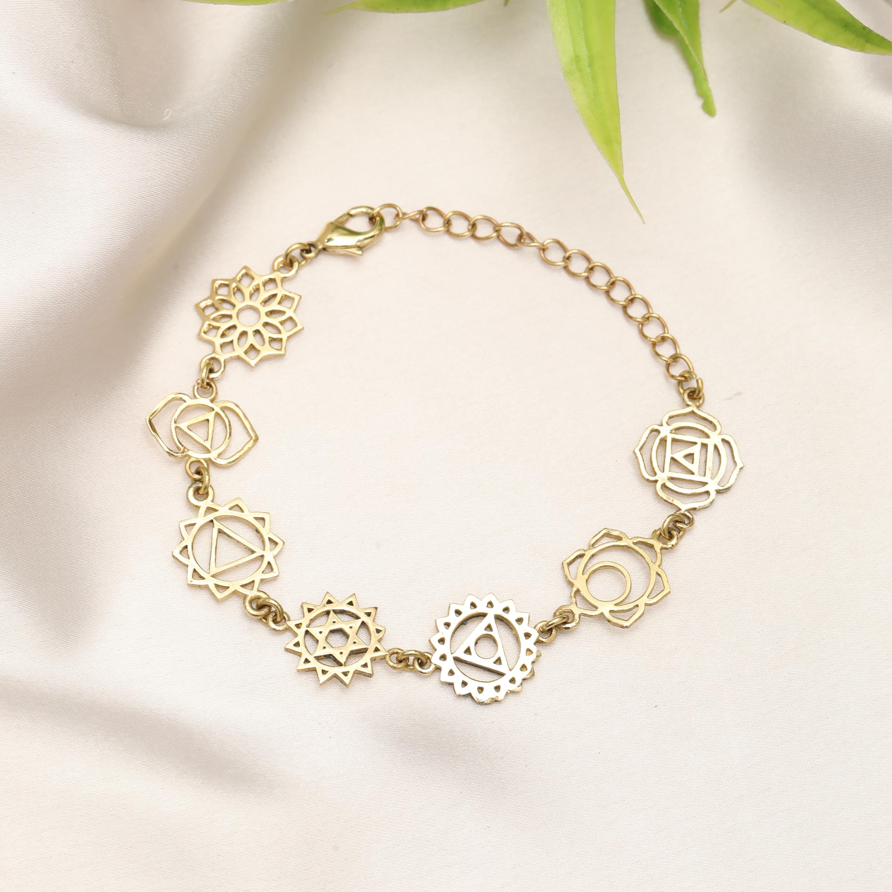 Elegant Golden or Silver Brass Bracelet. This Openwork Chakra Symbols Bracelet Represents The Symbols Of The 7 Chakras. The Chakras Are Junction Points of Energy in Our Body, They Emit a Vibratory Energy which Acts on the Organs. This Chakra Symbols Bracelet is Sober and Minimalist, But Very Original.