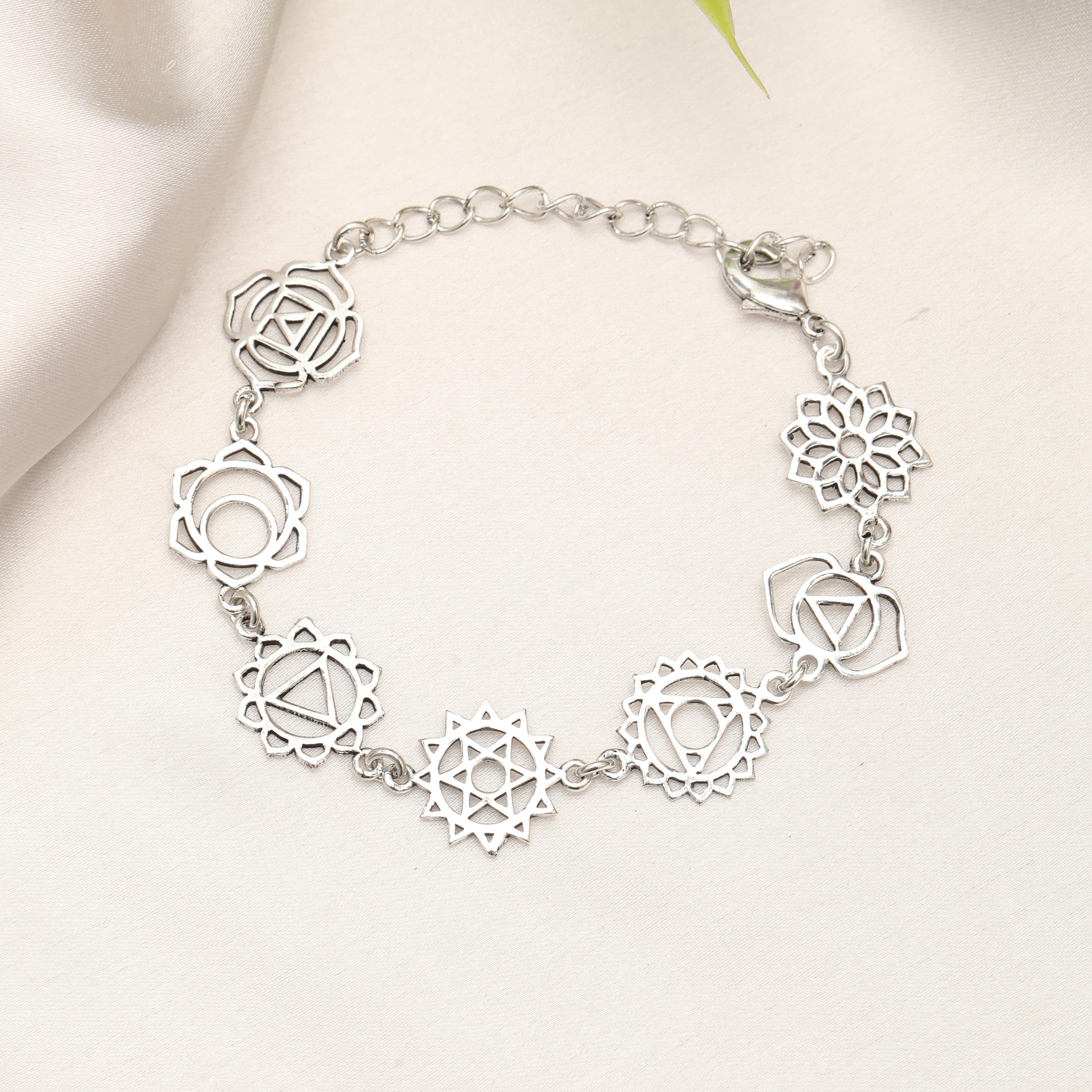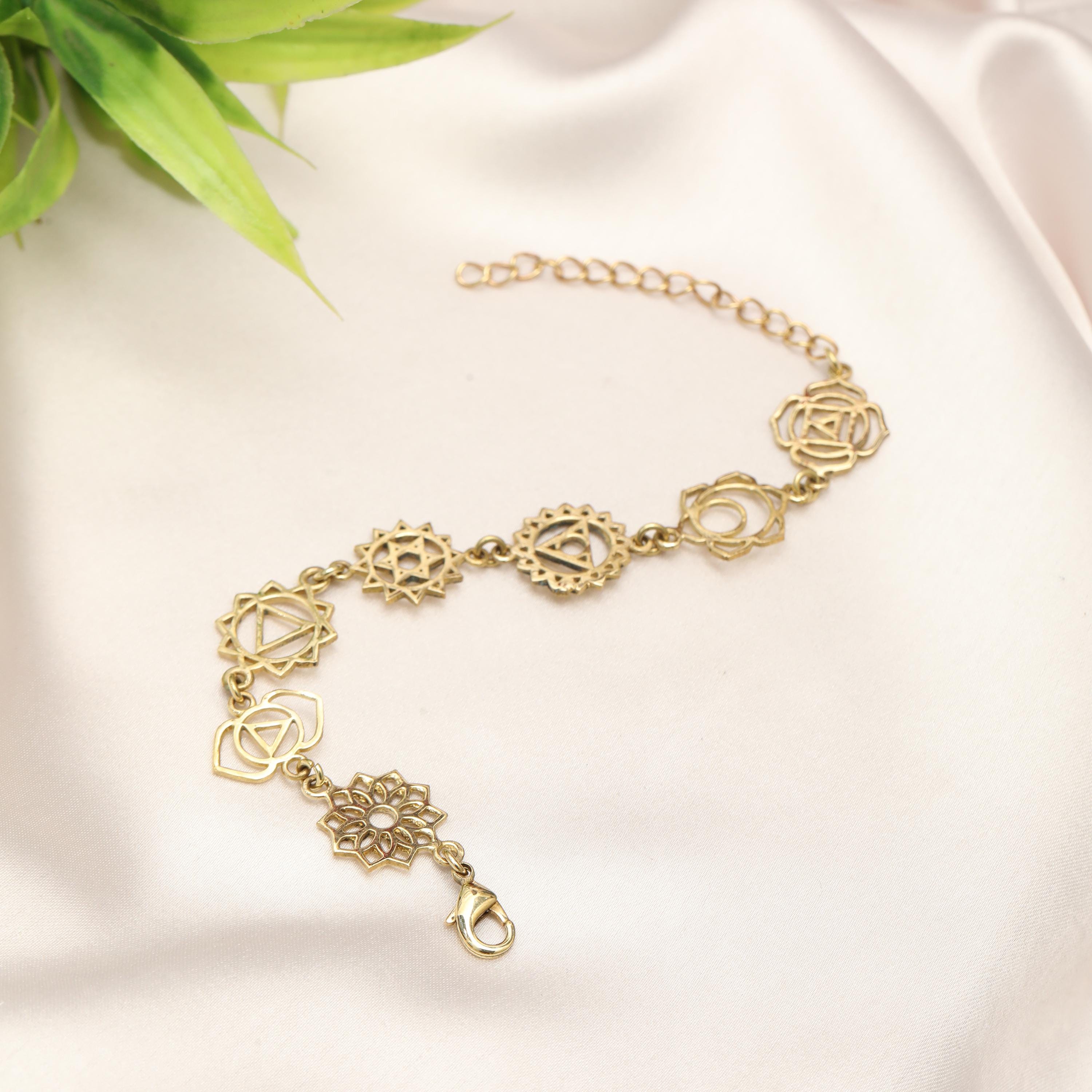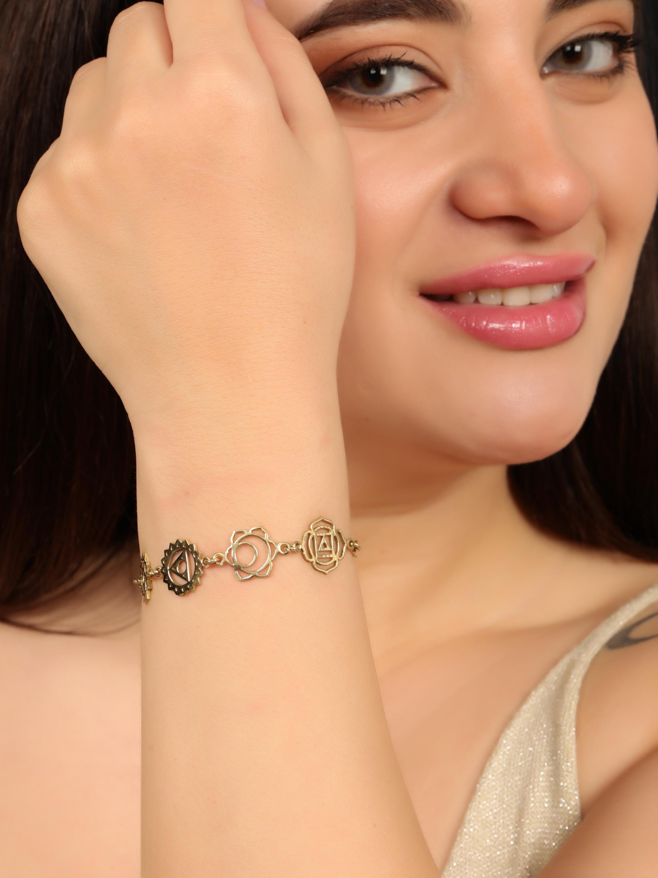 Elegant Golden or Silver Brass Bracelet. This Openwork Chakra Symbols Bracelet Represents The Symbols Of The 7 Chakras. The Chakras Are Junction Points of Energy in Our Body, They Emit a Vibratory Energy which Acts on the Organs. This Chakra Symbols Bracelet is Sober and Minimalist, But Very Original.