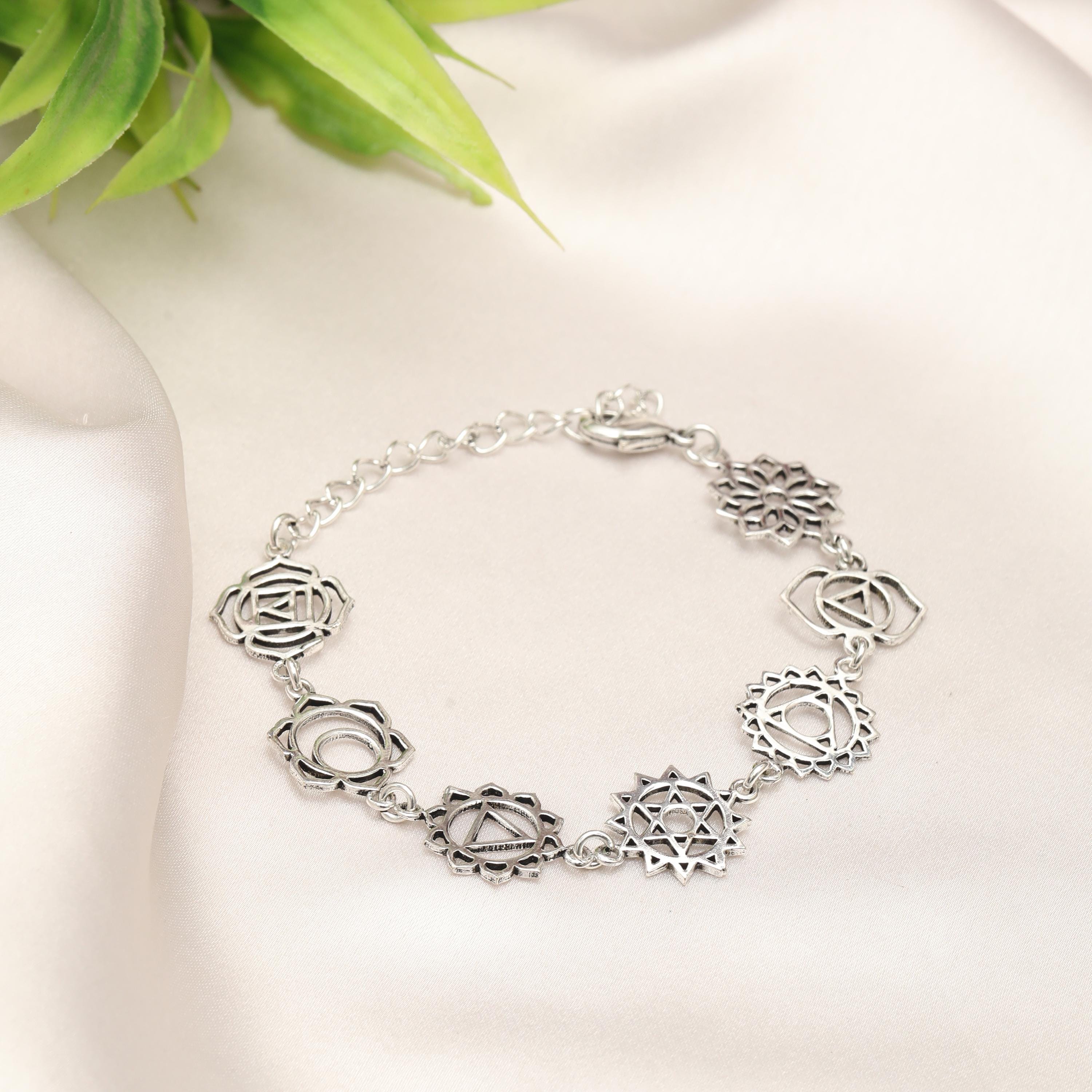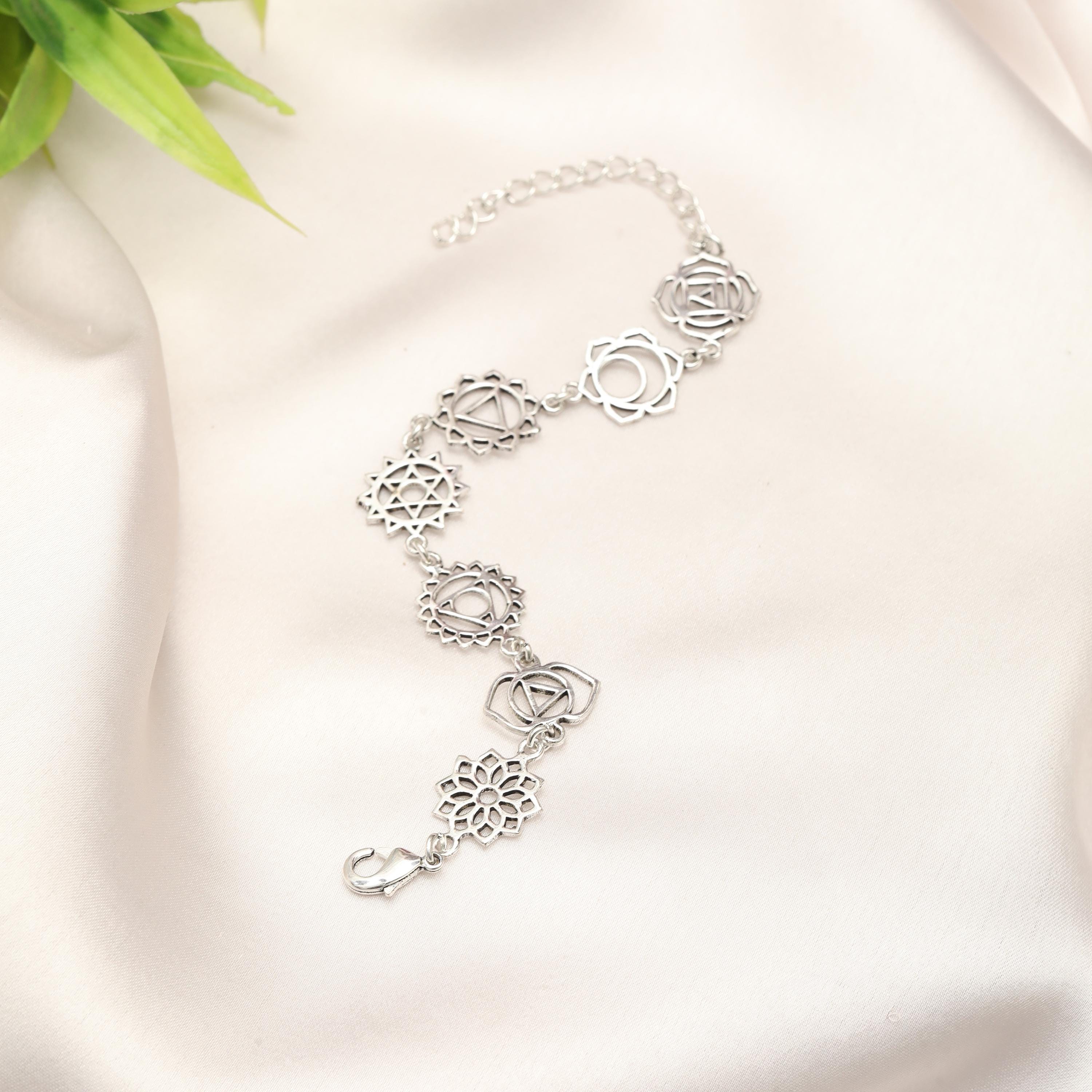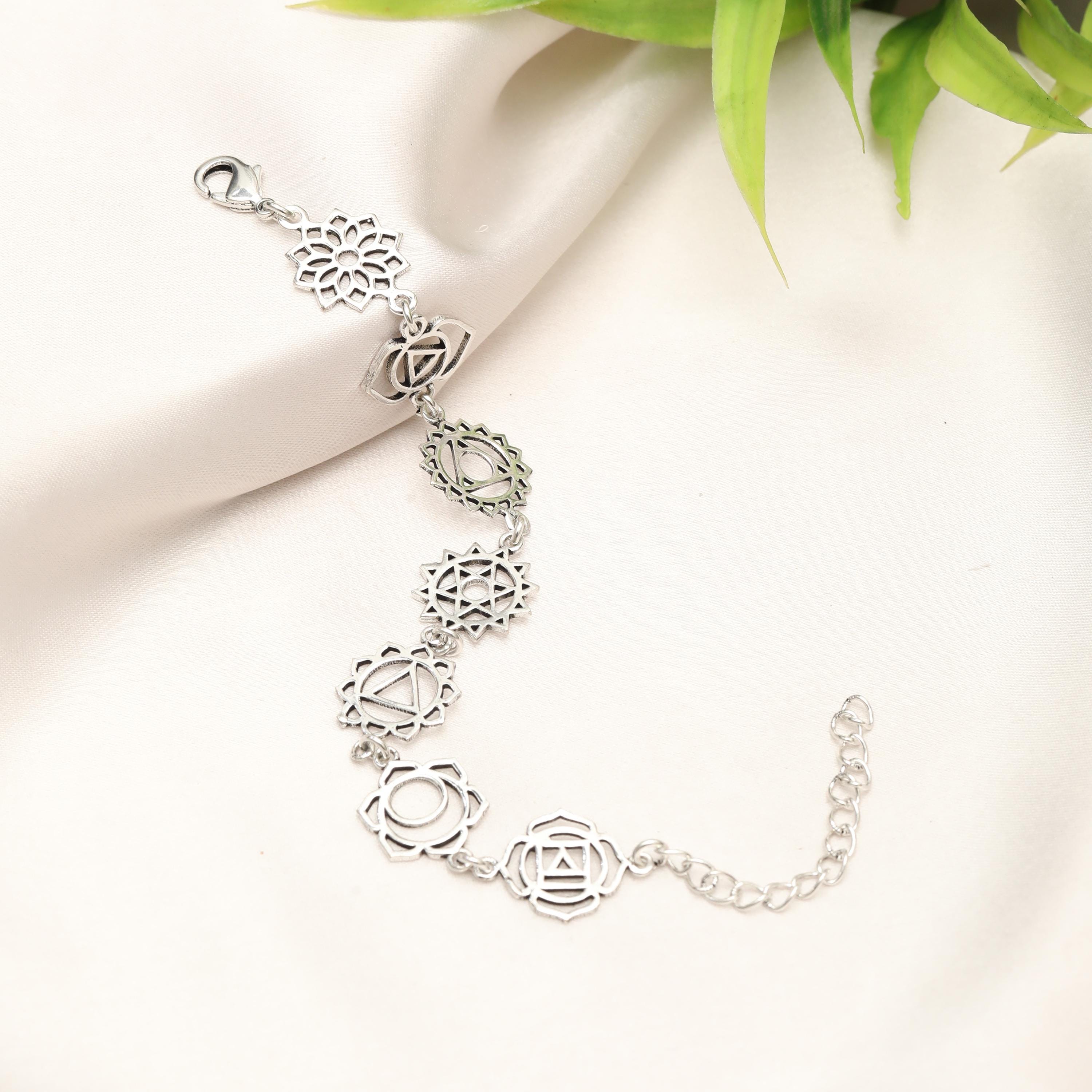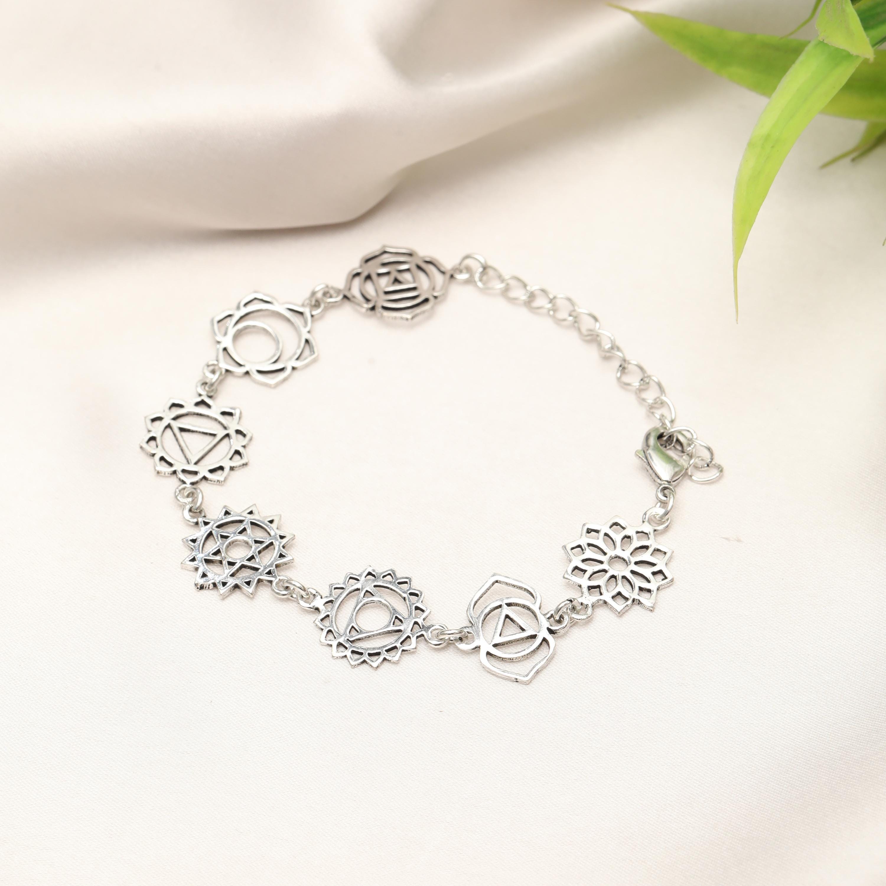 Elegant Golden or Silver Brass Bracelet. This Openwork Chakra Symbols Bracelet Represents The Symbols Of The 7 Chakras. The Chakras Are Junction Points of Energy in Our Body, They Emit a Vibratory Energy which Acts on the Organs. This Chakra Symbols Bracelet is Sober and Minimalist, But Very Original.