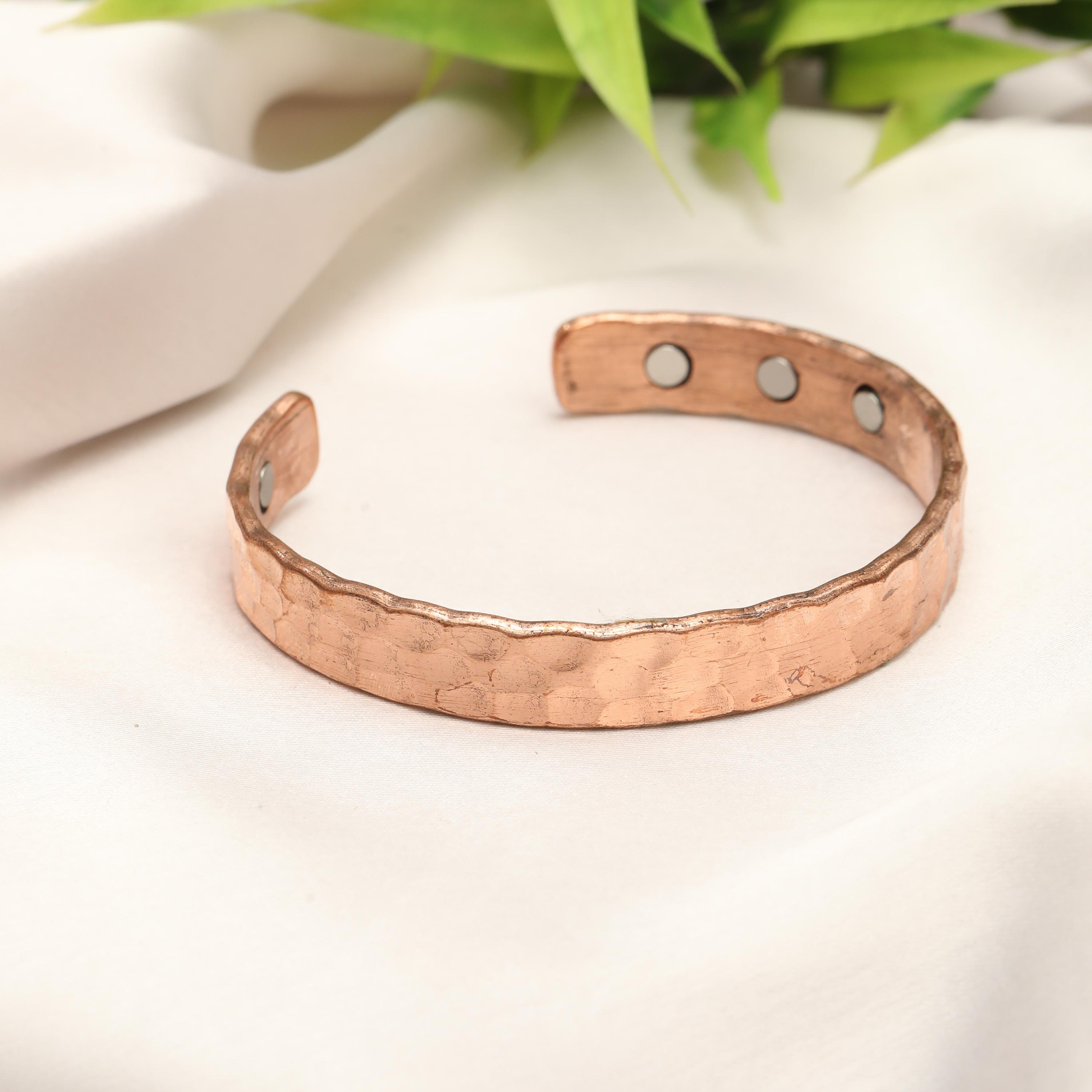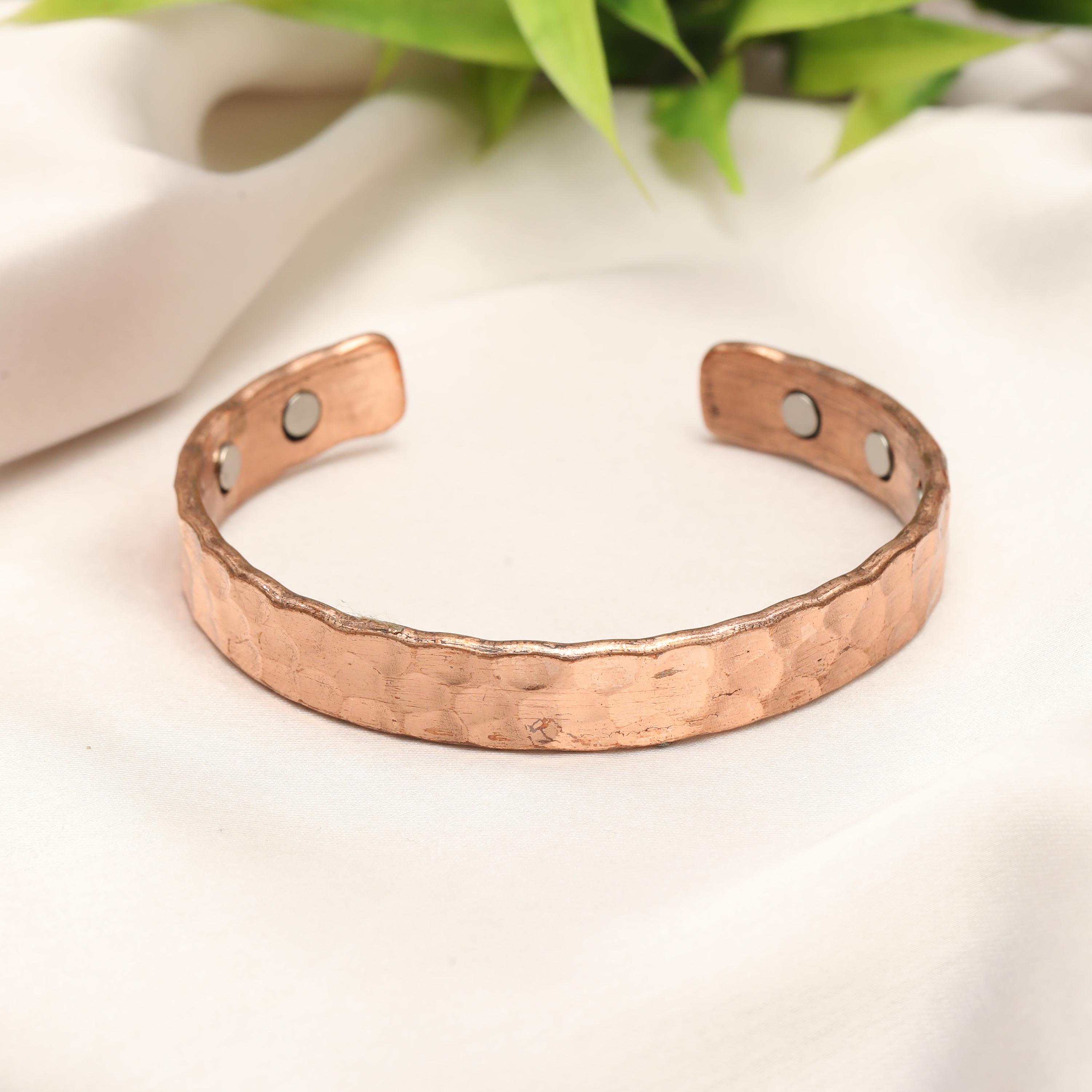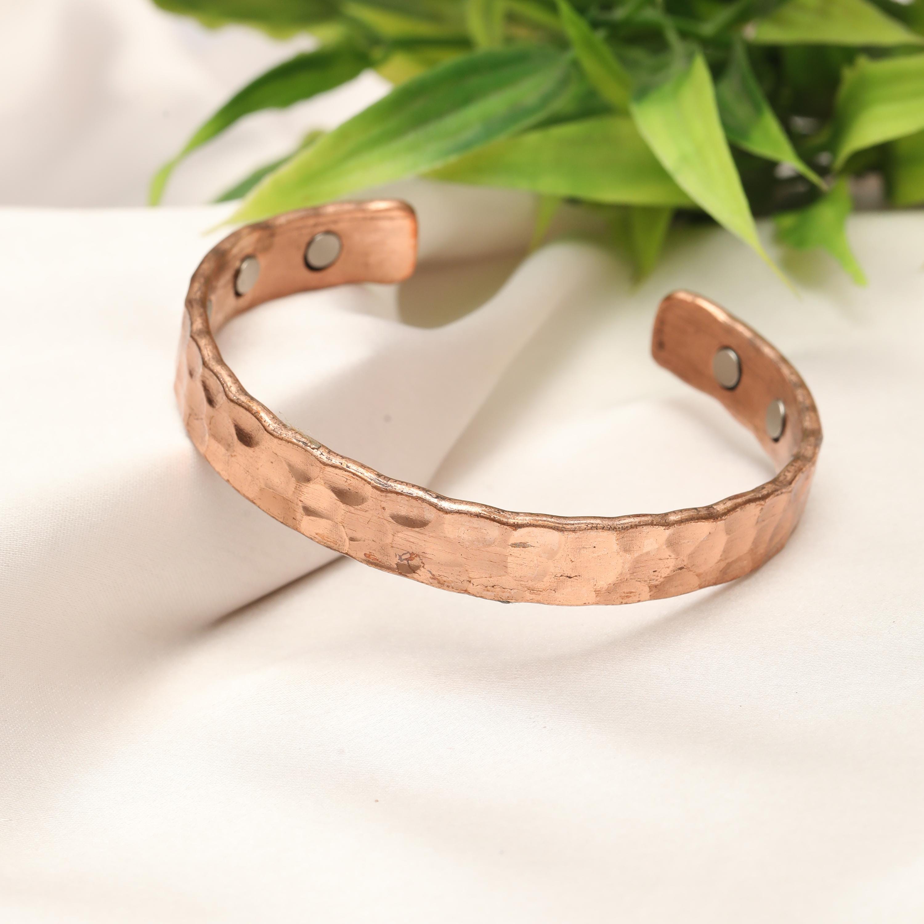 Adjustable Hammered Copper Cuff Bracelet. Sober and Minimalist Style that suits both Men and Women. It is embellished with magnets inside because copper and magnets are used to relieve osteoarthritis and rheumatic pain thanks to their anti-rheumatic and anti-inflammatory properties.