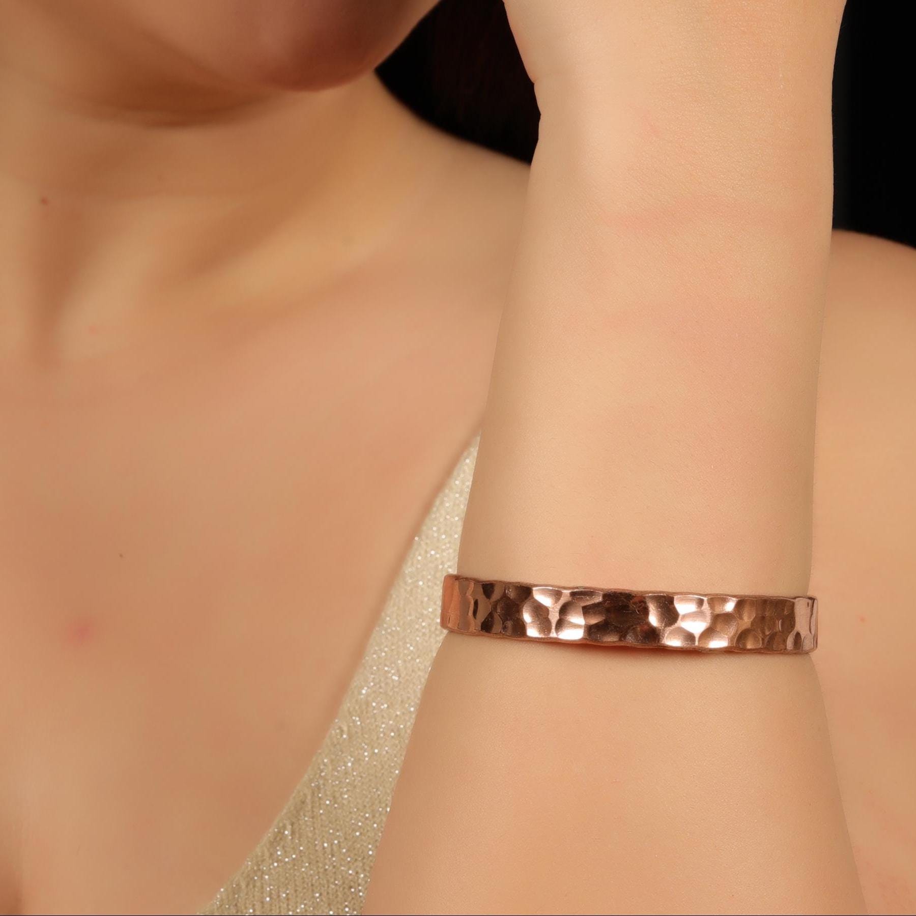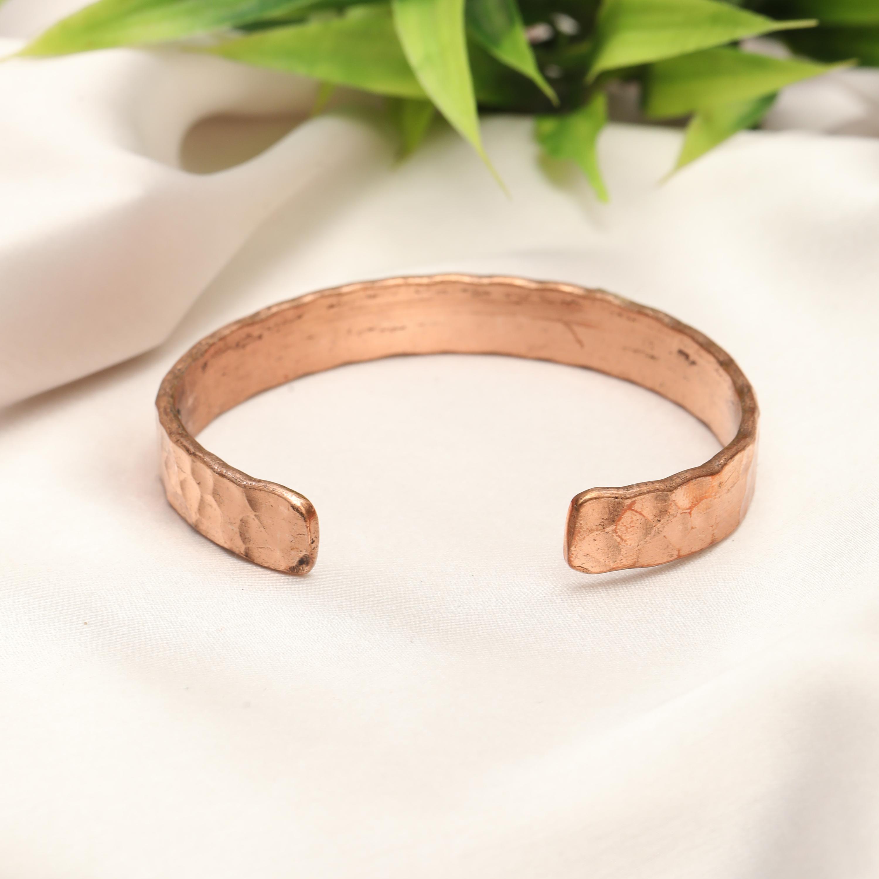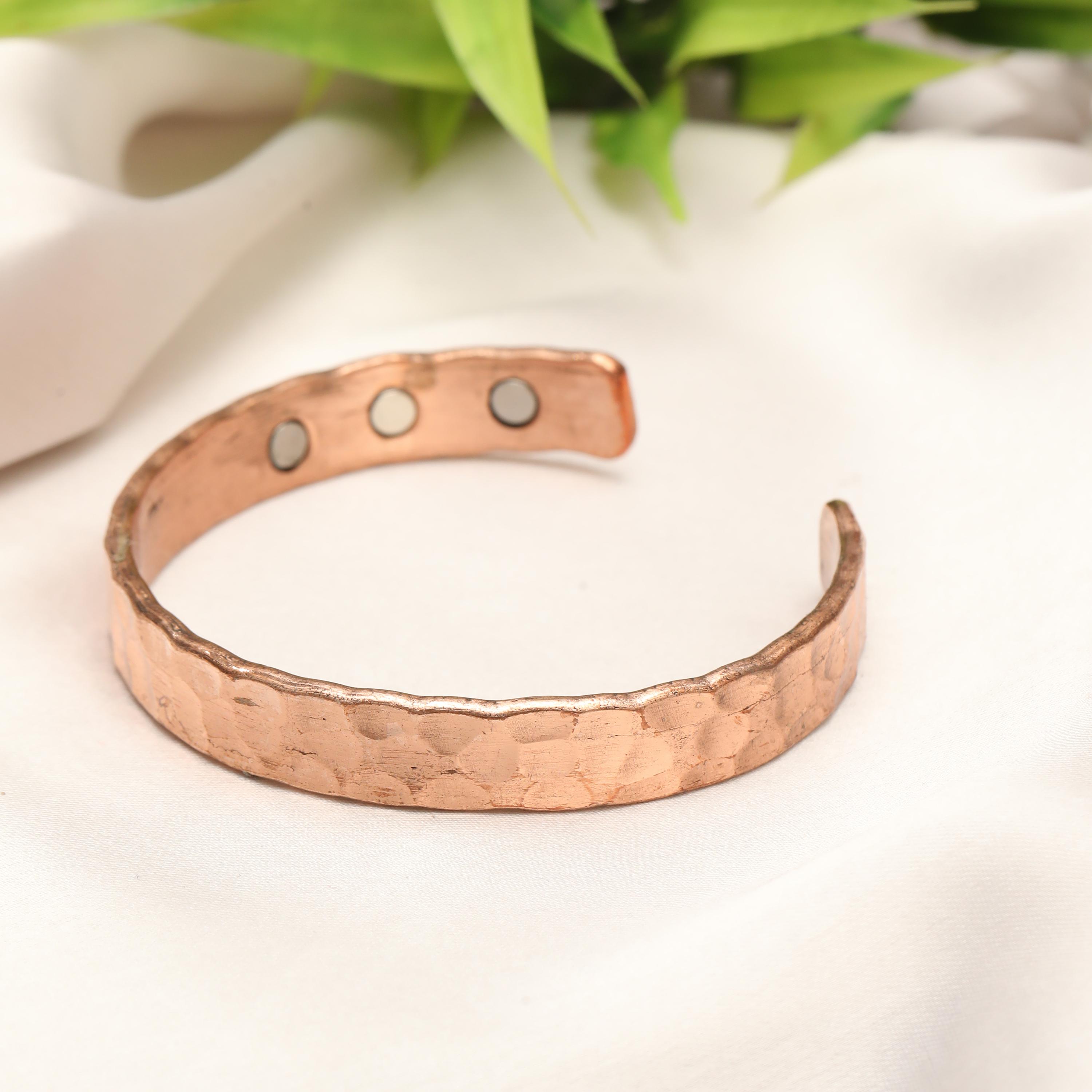 Adjustable Hammered Copper Cuff Bracelet. Sober and Minimalist Style that suits both Men and Women. It is embellished with magnets inside because copper and magnets are used to relieve osteoarthritis and rheumatic pain thanks to their anti-rheumatic and anti-inflammatory properties.