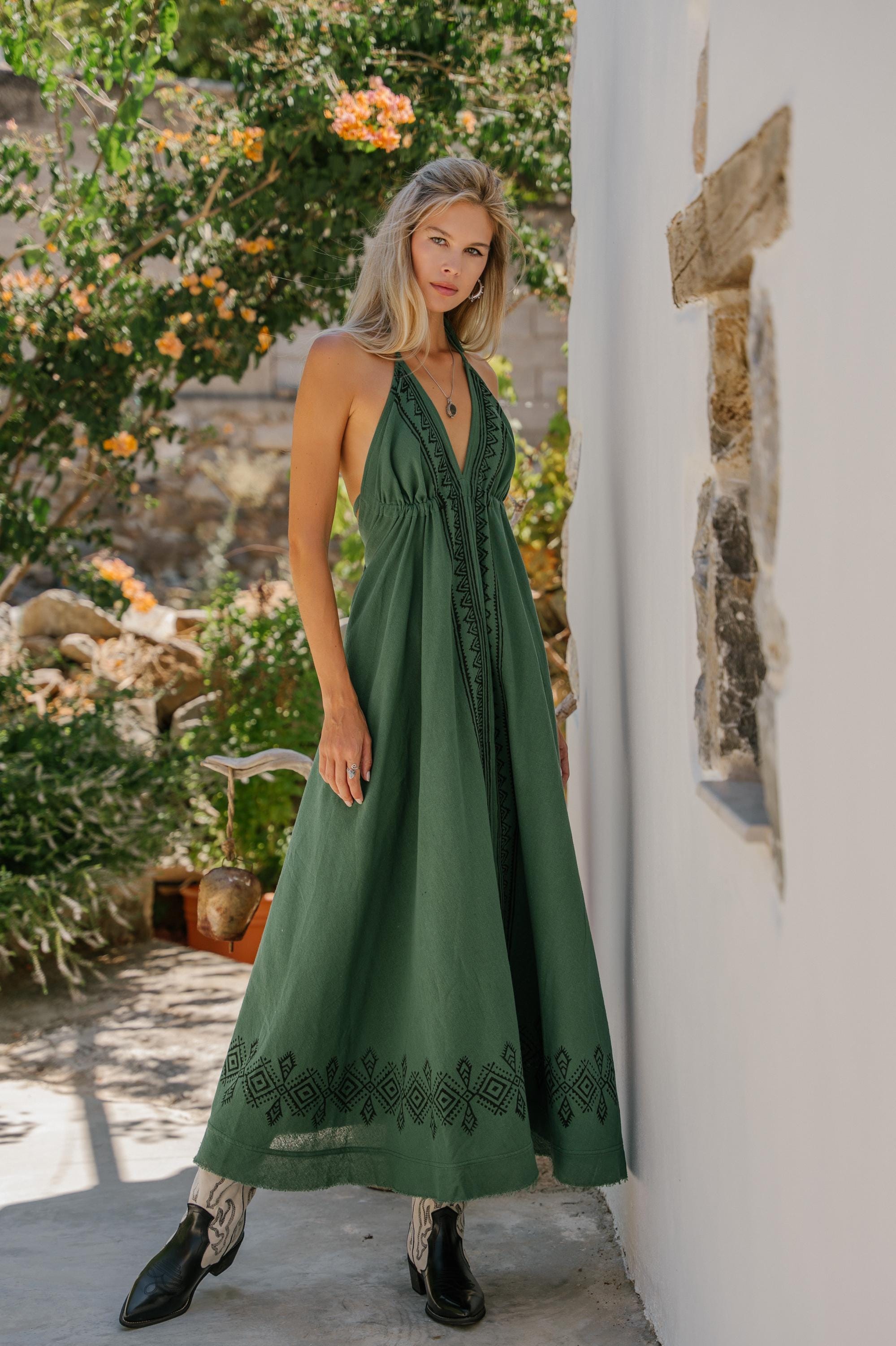 Ideal for summer adventures, this dress embodies sustainable and elegant bohemian style.