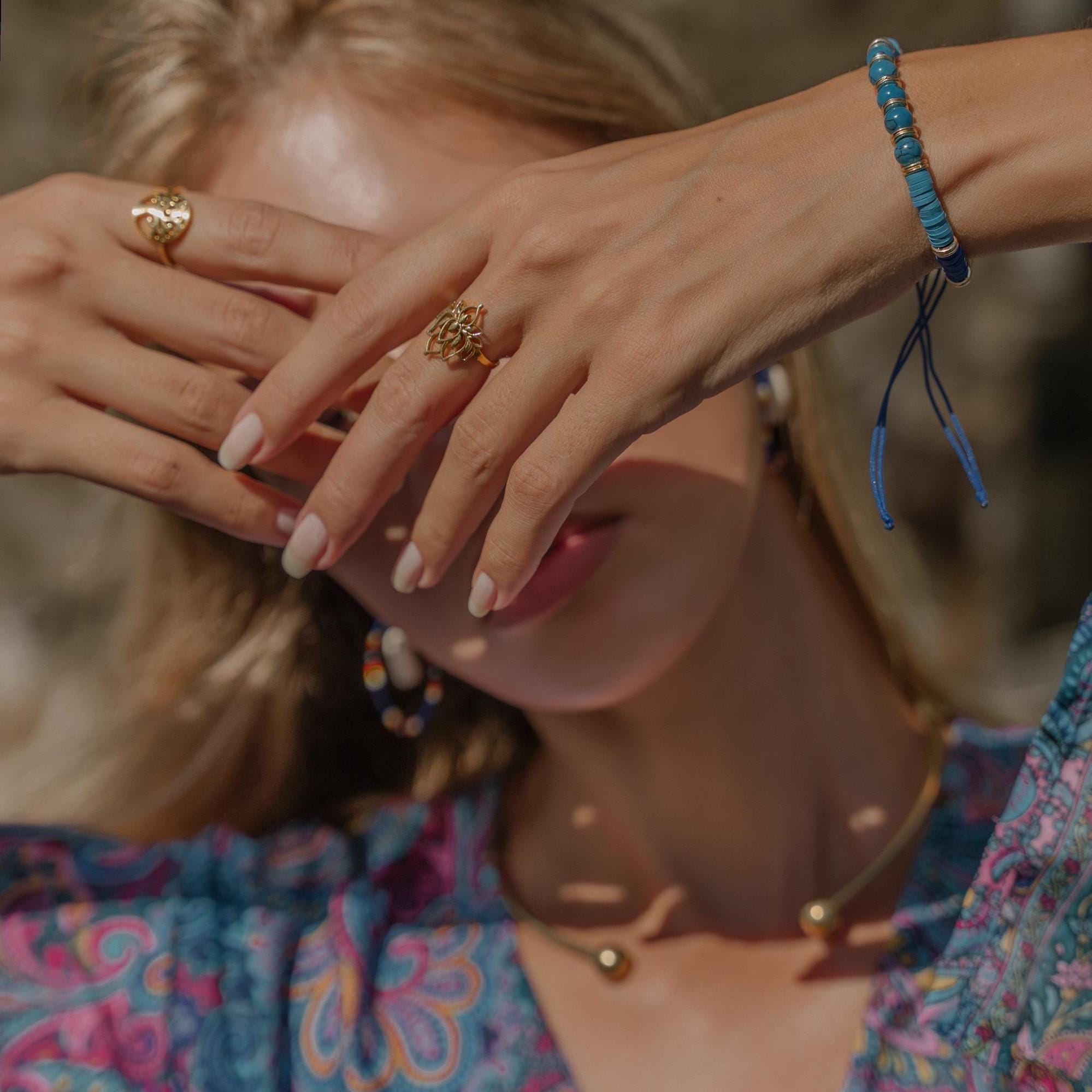 Bohemian Adjustable Brass Ring in the Shape of a Lotus.