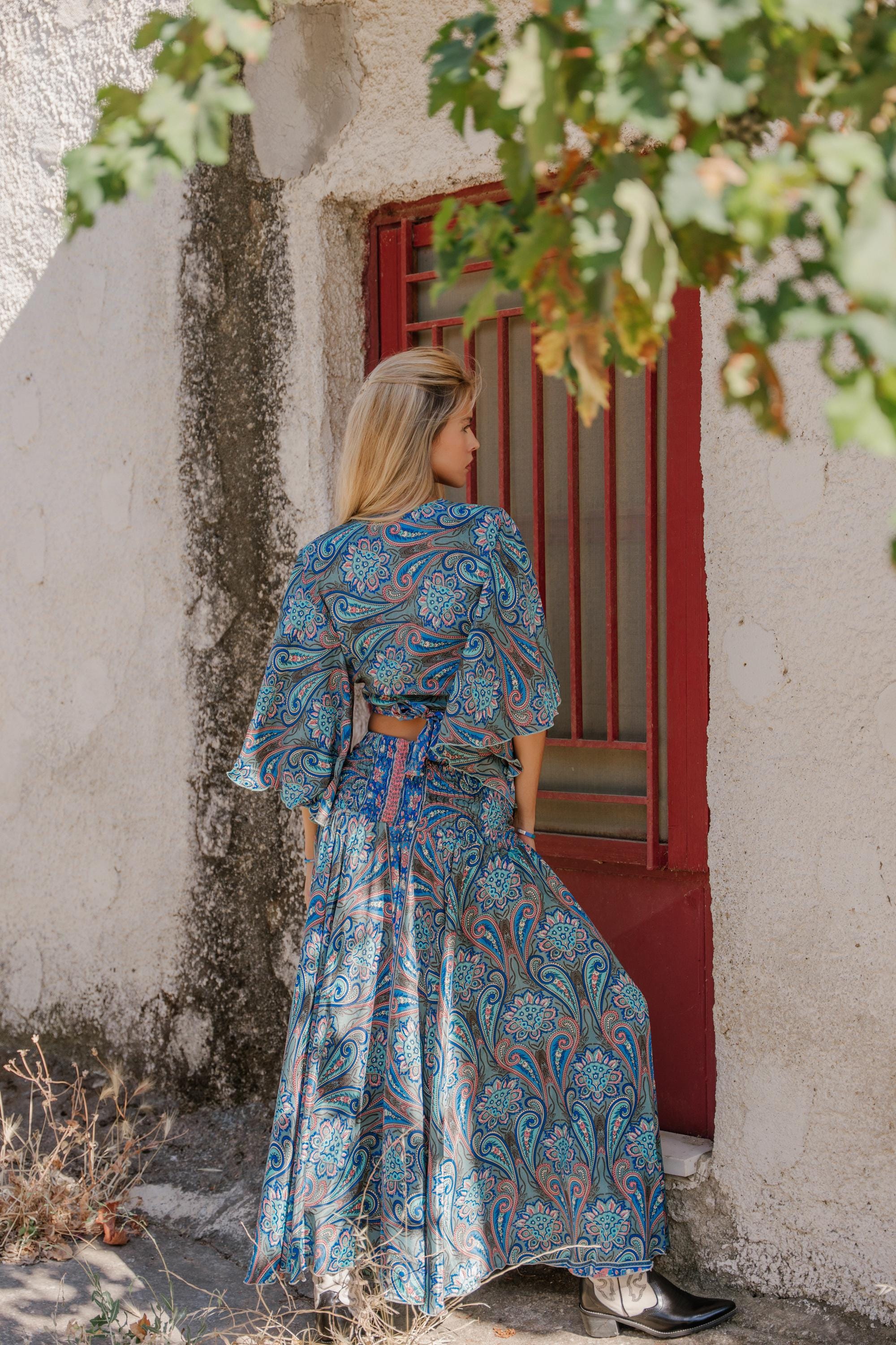 Bohemian Polyester Pants Printed Ethnic Paisley Pattern. Elasticated waistband for more comfort. Wide Flared Leg.