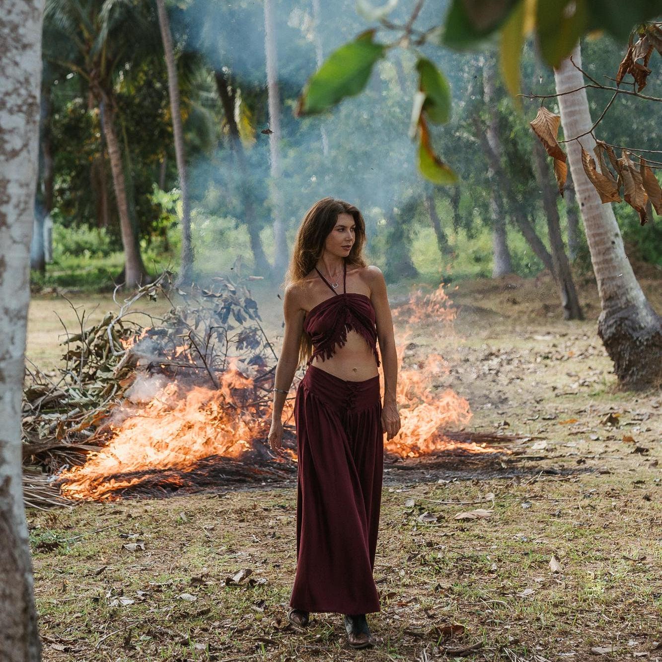 This Long Skirt is the essential piece of clothing to own for an everyday bohemian look or for a medieval outfit to match with one of our off-white tops or for a cosplay outfit.
