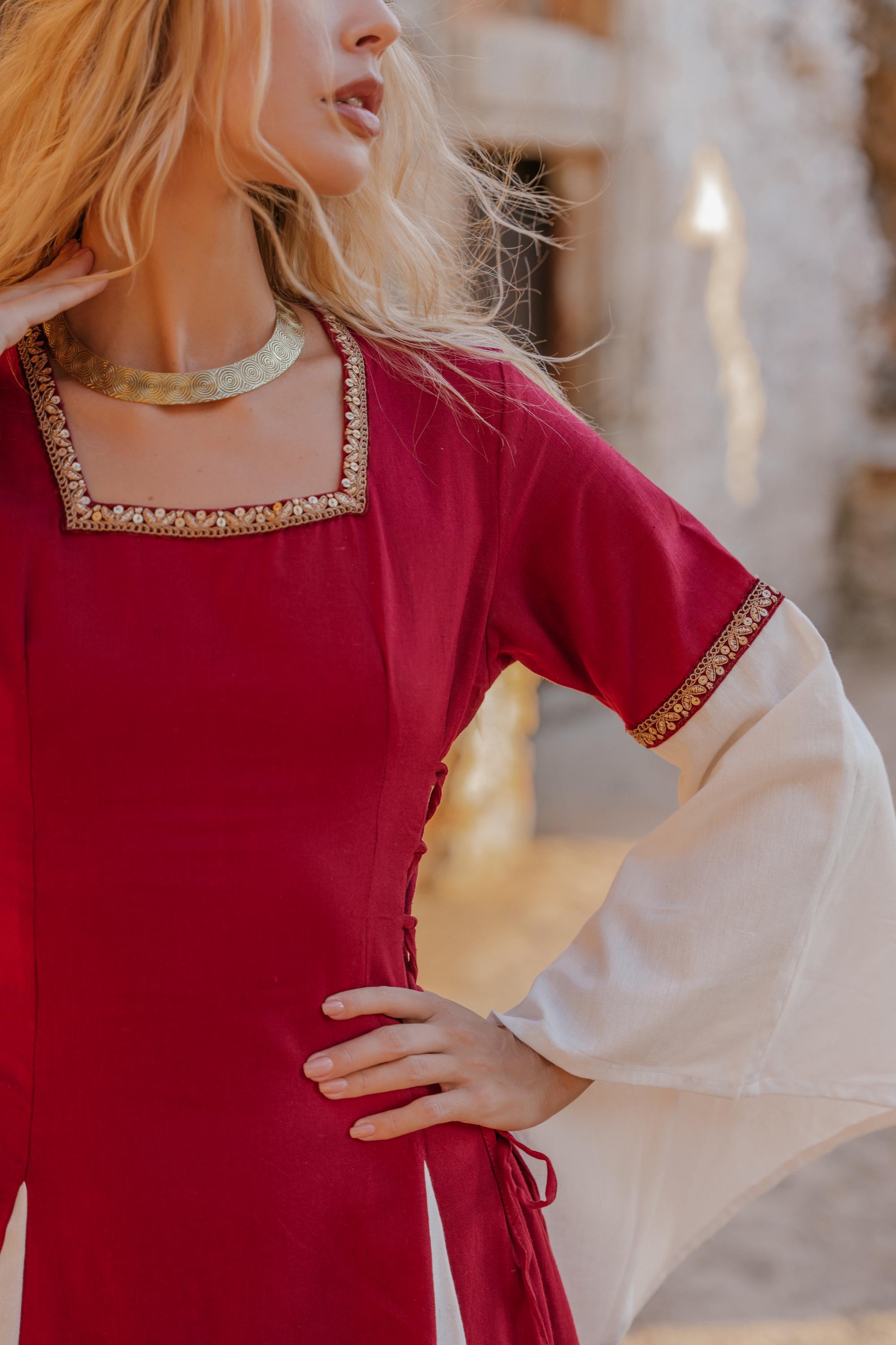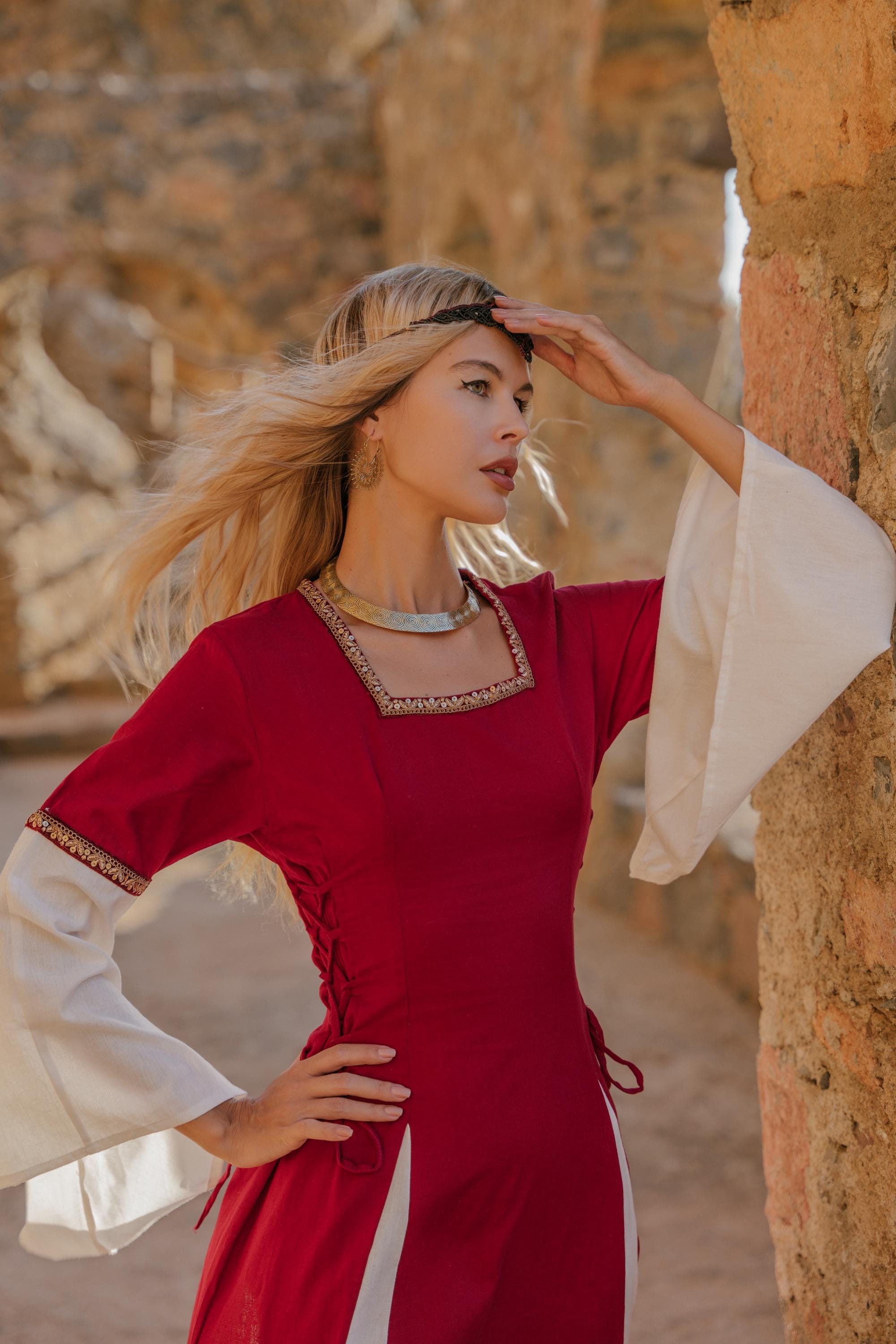 The Flared Pointed Sleeves and the Square Neckline Are Characteristic of Medieval Clothing Worn at the Court. The Lacing on Each Side of the Dress Has Been Carefully Done to Ensure a Perfect Fit.