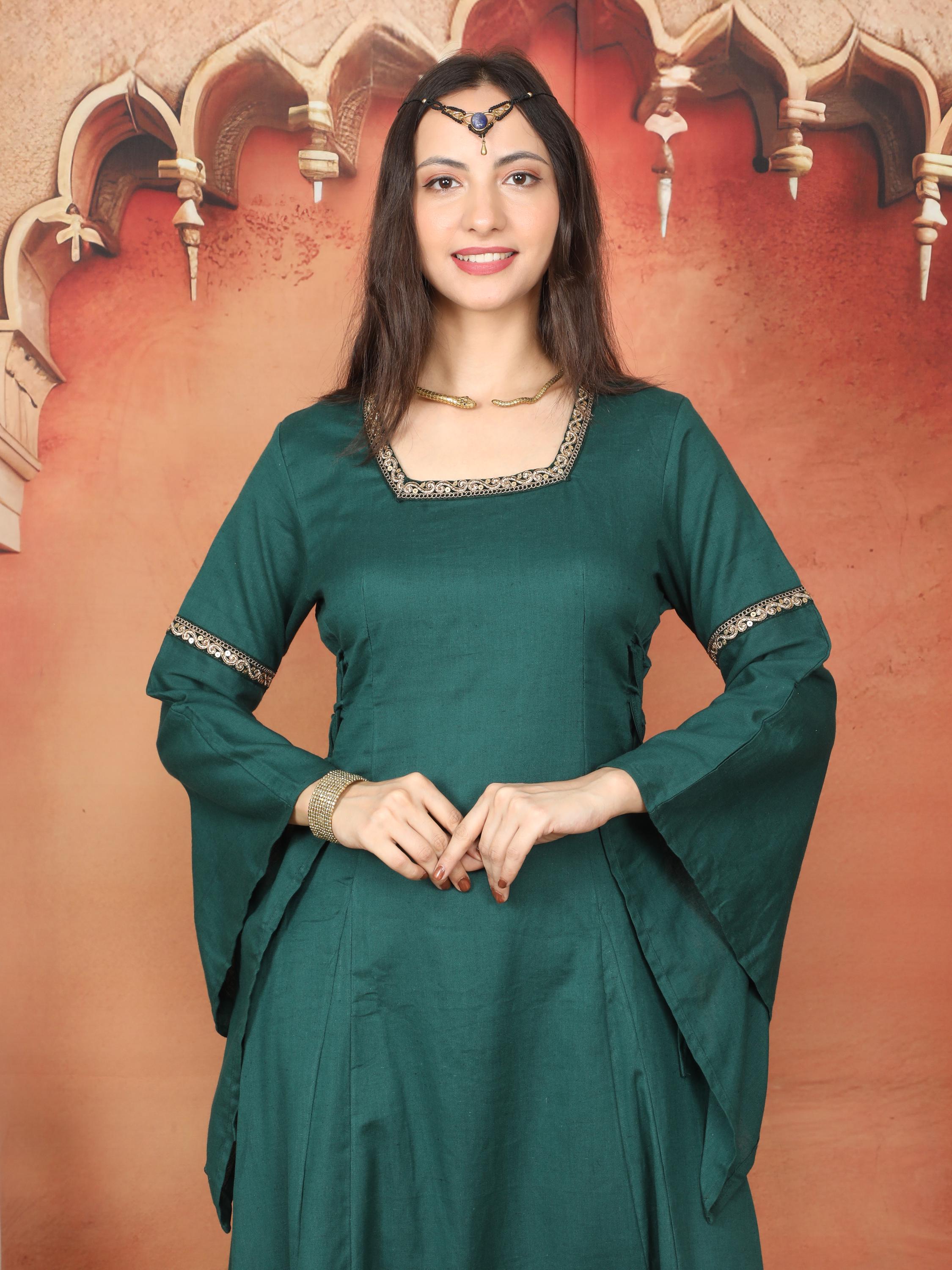The Flared Pointed Sleeves and the Square Neckline Are Characteristic of Medieval Clothing Worn at the Court. The Lacing on Each Side of the Dress Has Been Carefully Done to Ensure a Perfect Fit.
