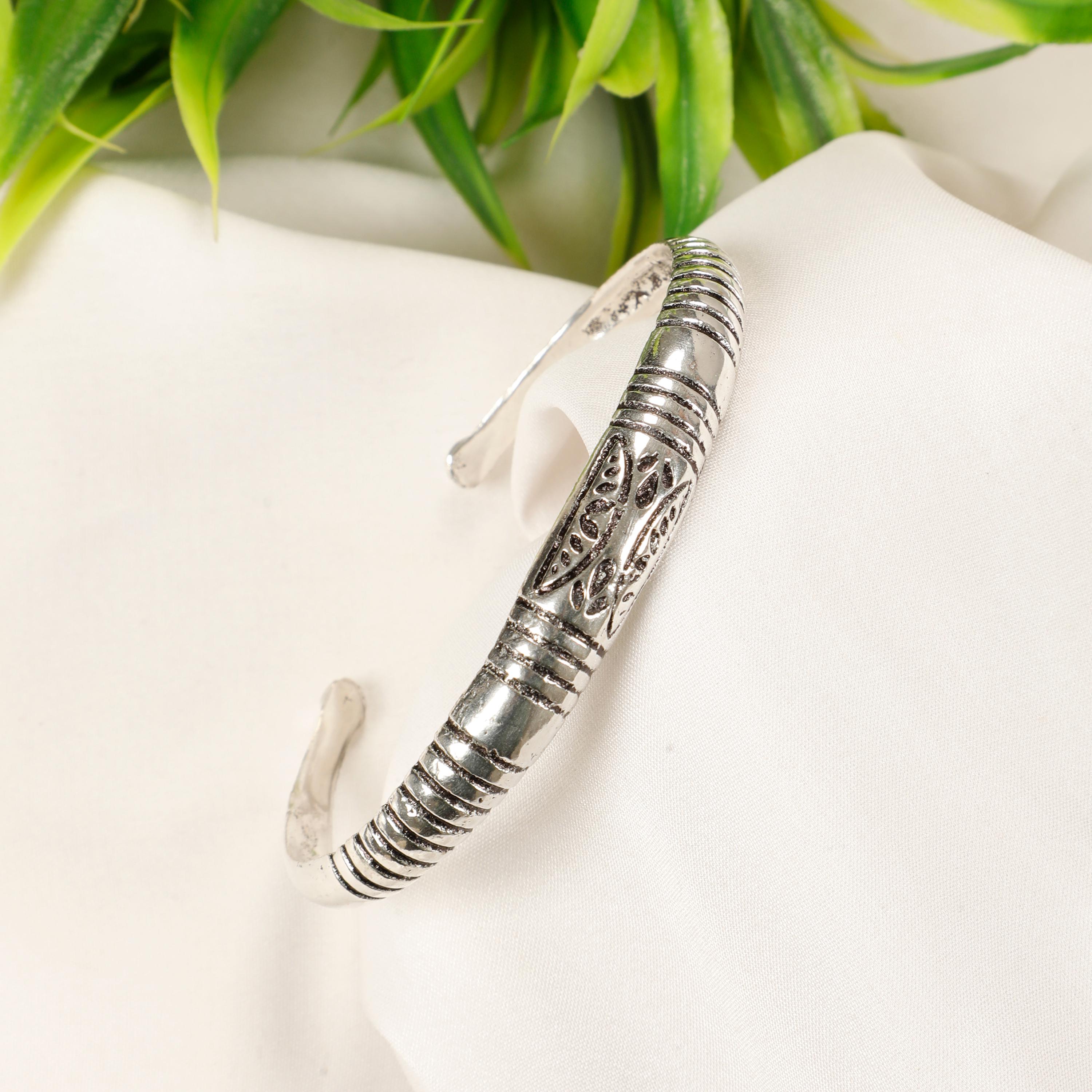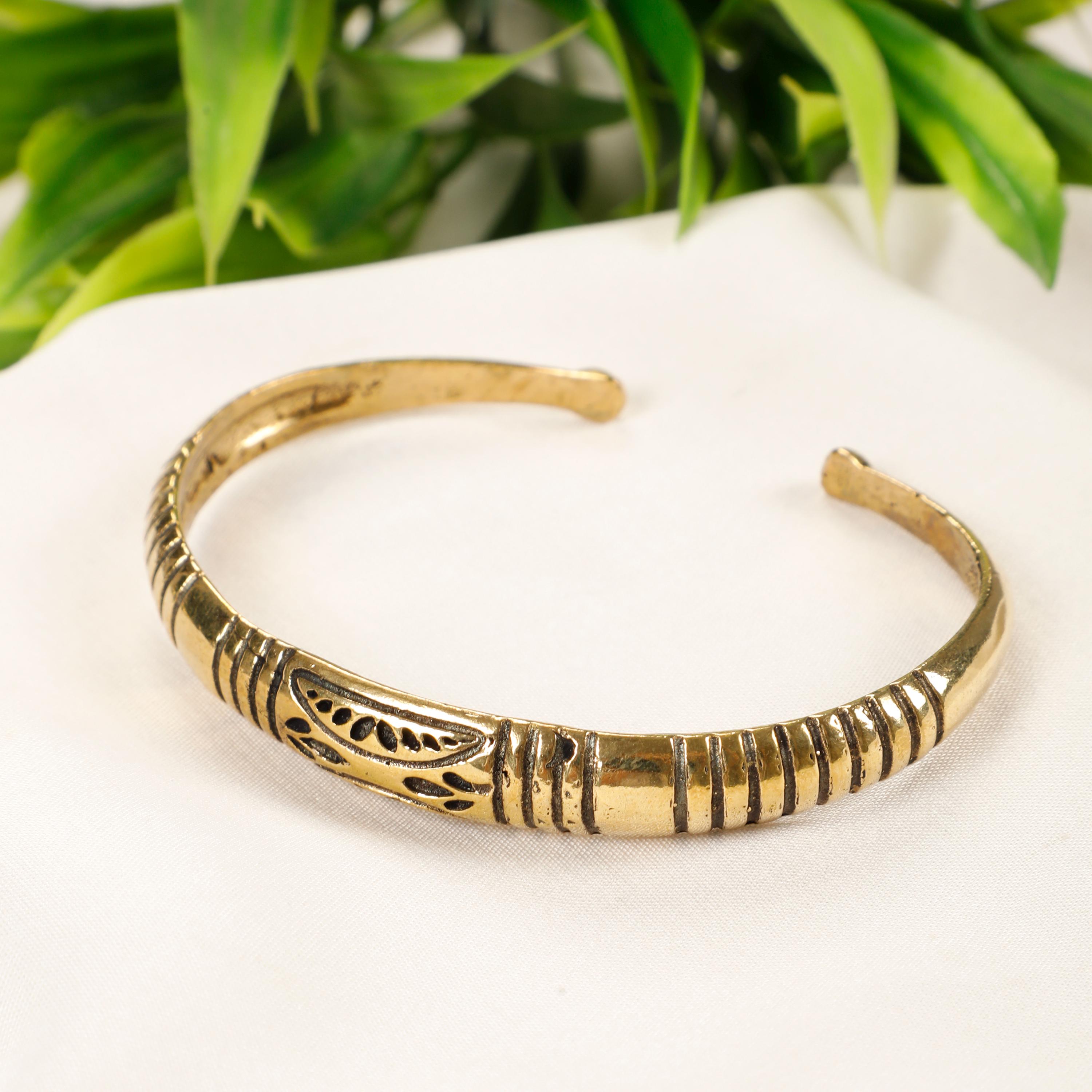 Made from brass, this bracelet features an elegant finish that highlights the refined details of the engraved designs. Its adjustable design allows for comfortable wearing and easily adapts to different wrist sizes, while offering a chic and contemporary look.