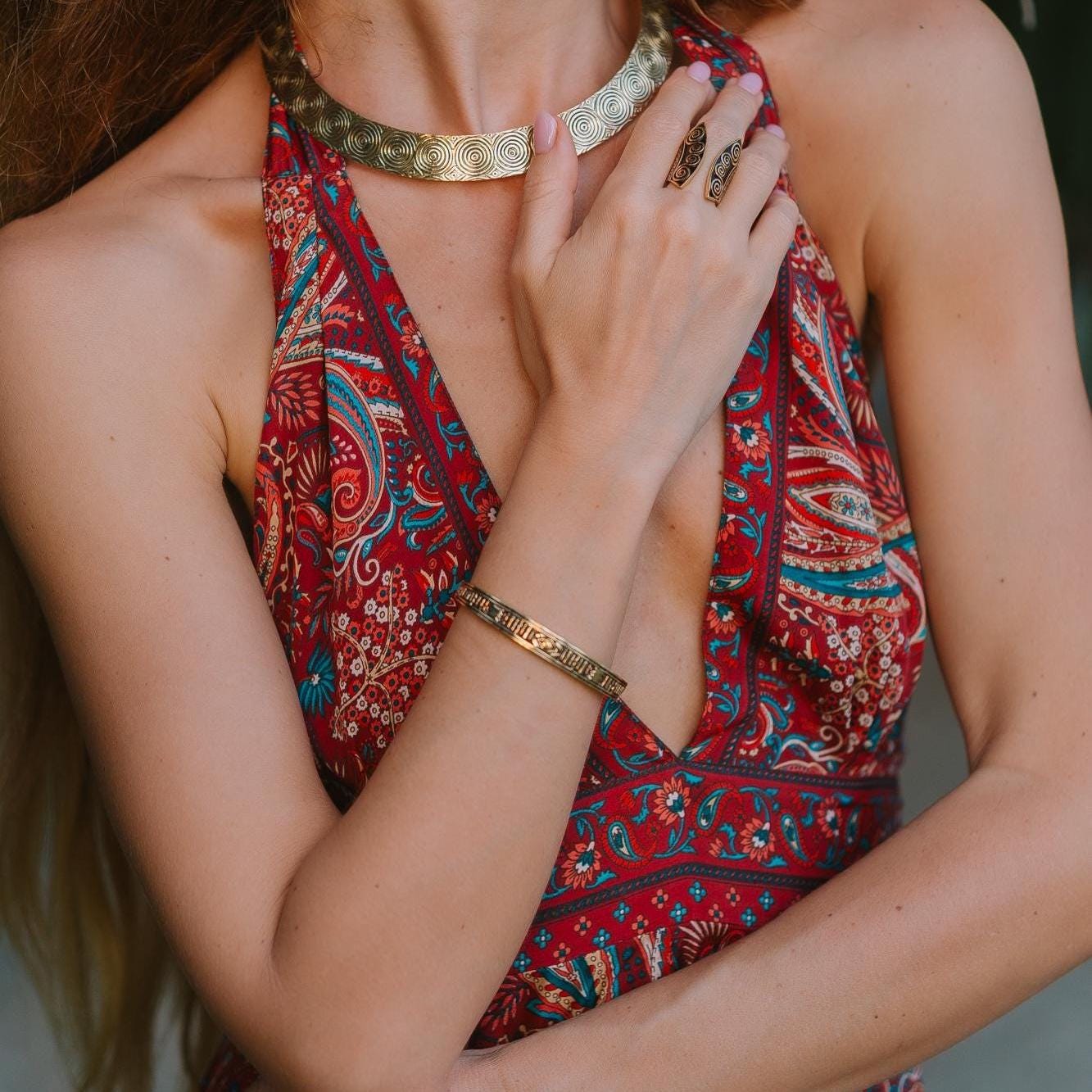 Discover our unisex ethnic brass bracelet, an elegant semi-open bracelet, engraved with geometric patterns. This contemporary piece of jewelry combines traditional craftsmanship and modern design, offering a unique piece that suits any style.