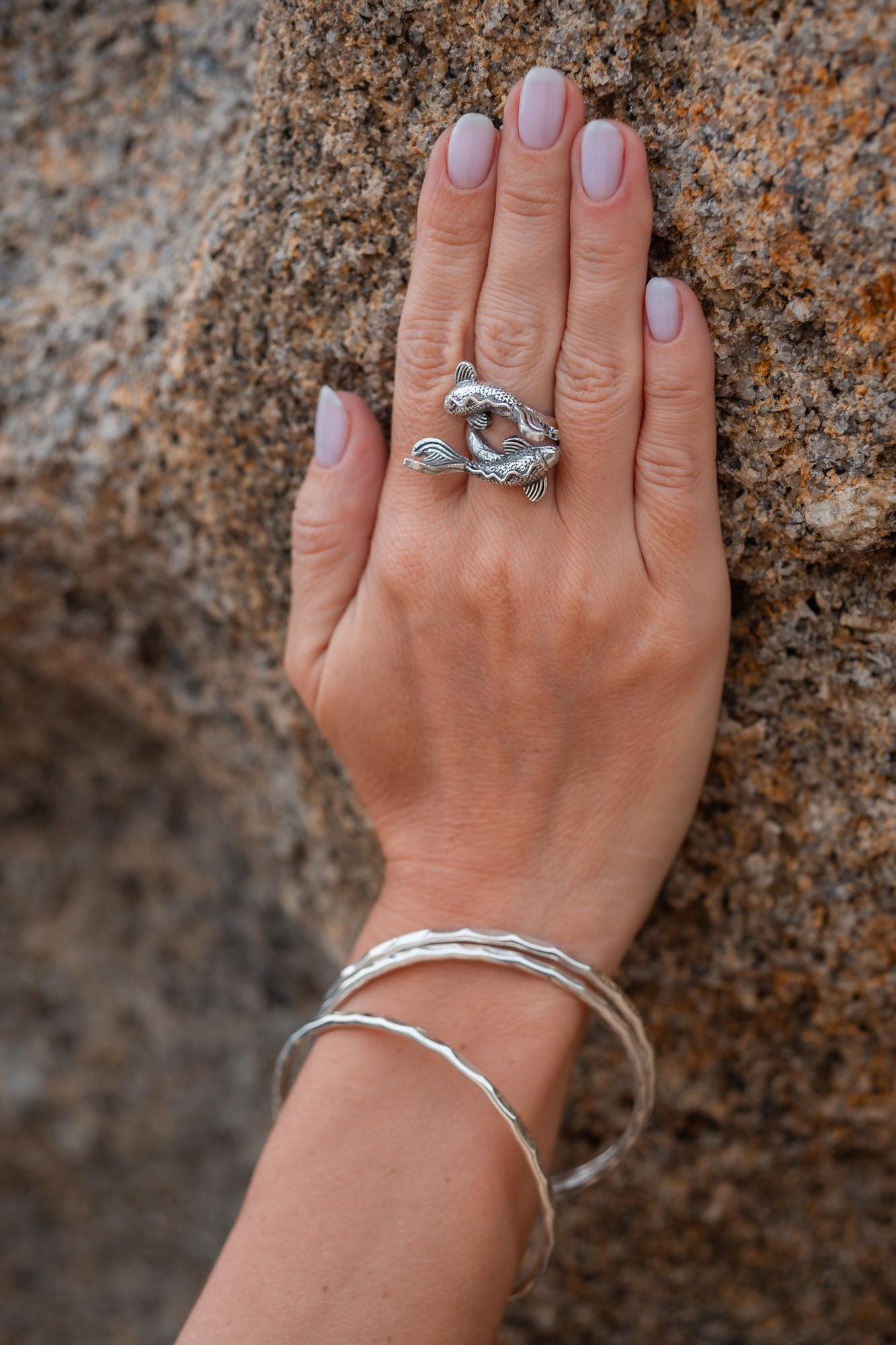 This stunning ring showcases a detailed and unique design with two koi fish intertwined. Revered in Eastern culture, koi represent prosperity, good fortune, and determination.