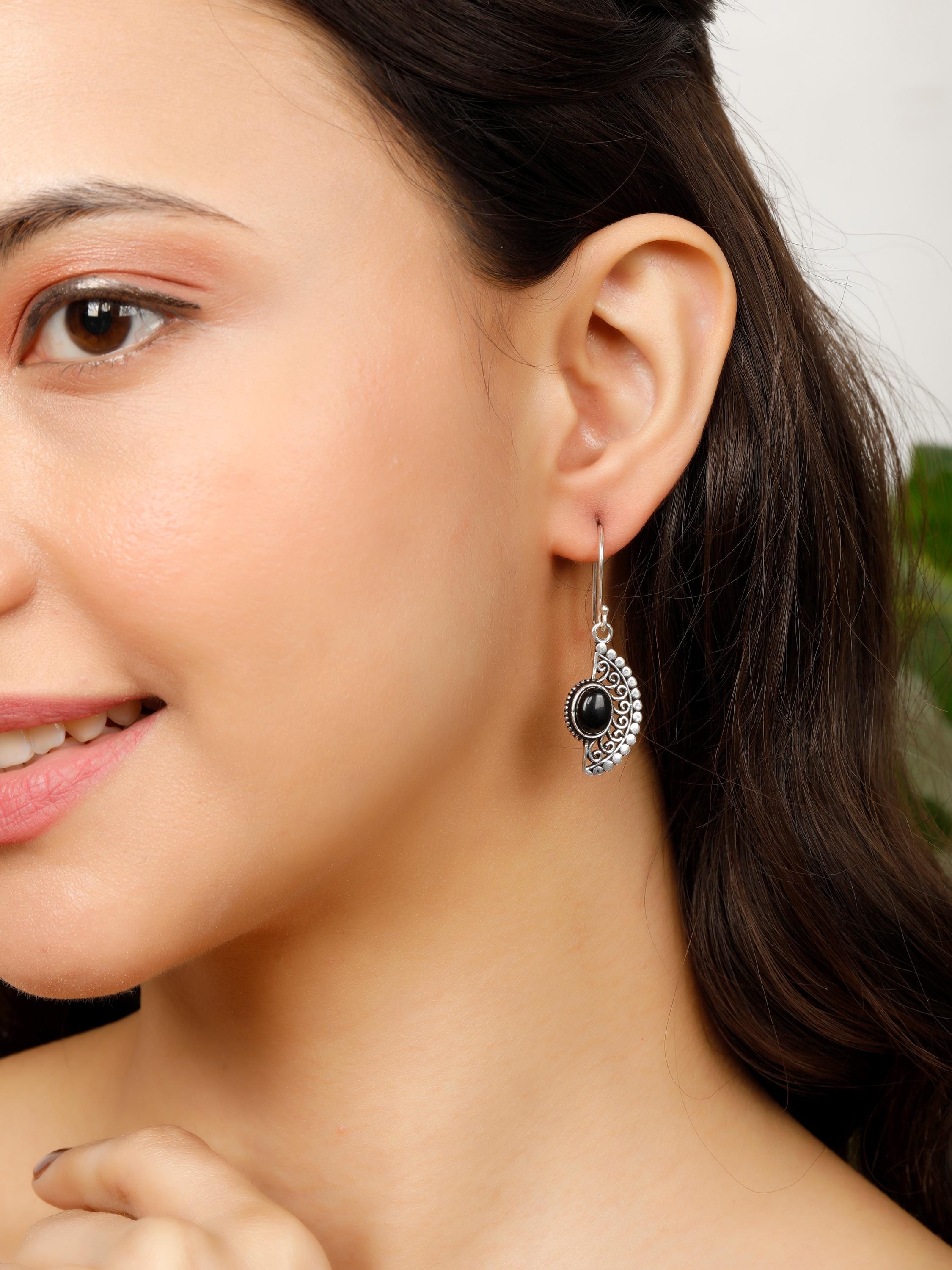 Each earring is adorned with an oval semi-precious stone, adding a touch of elegance and uniqueness.
