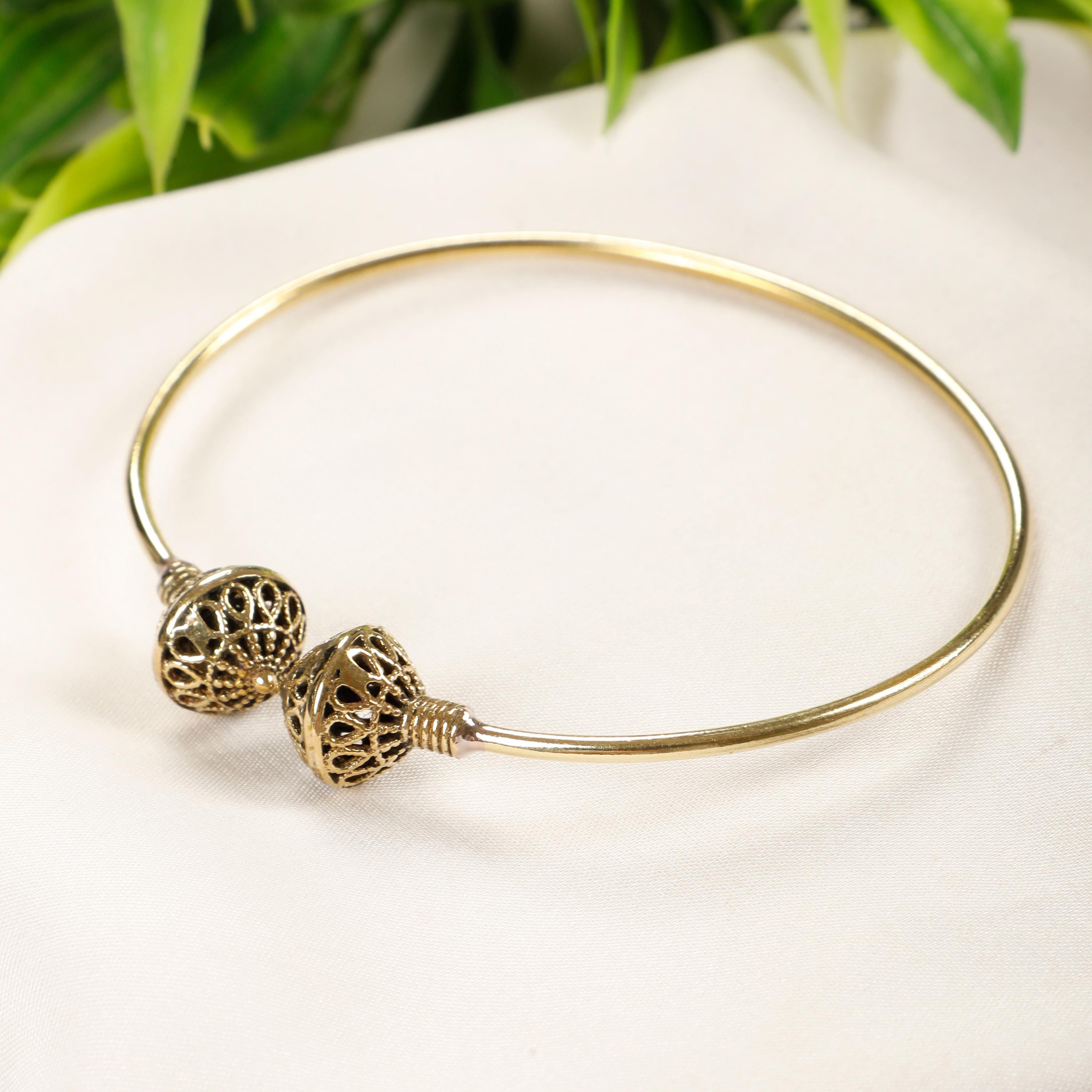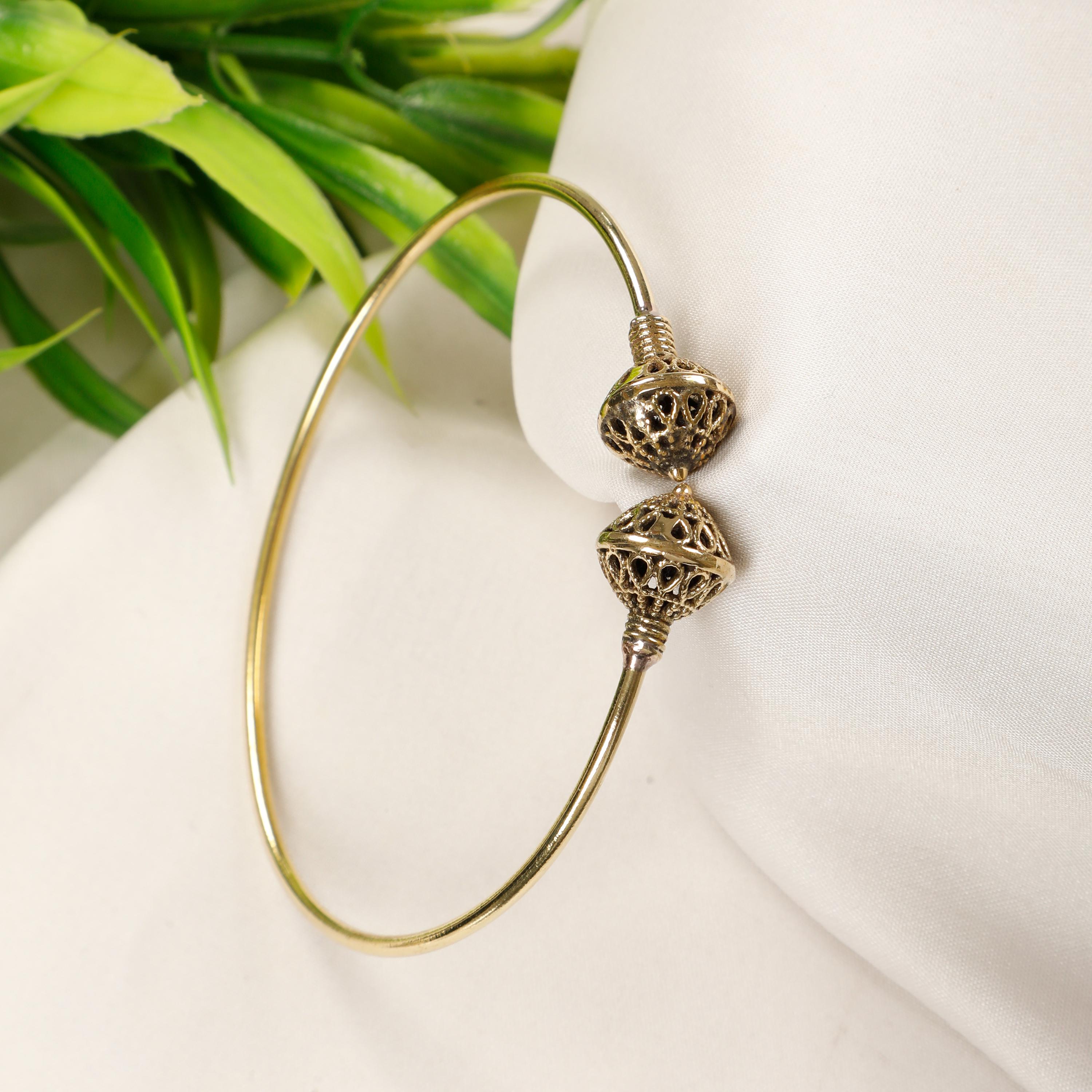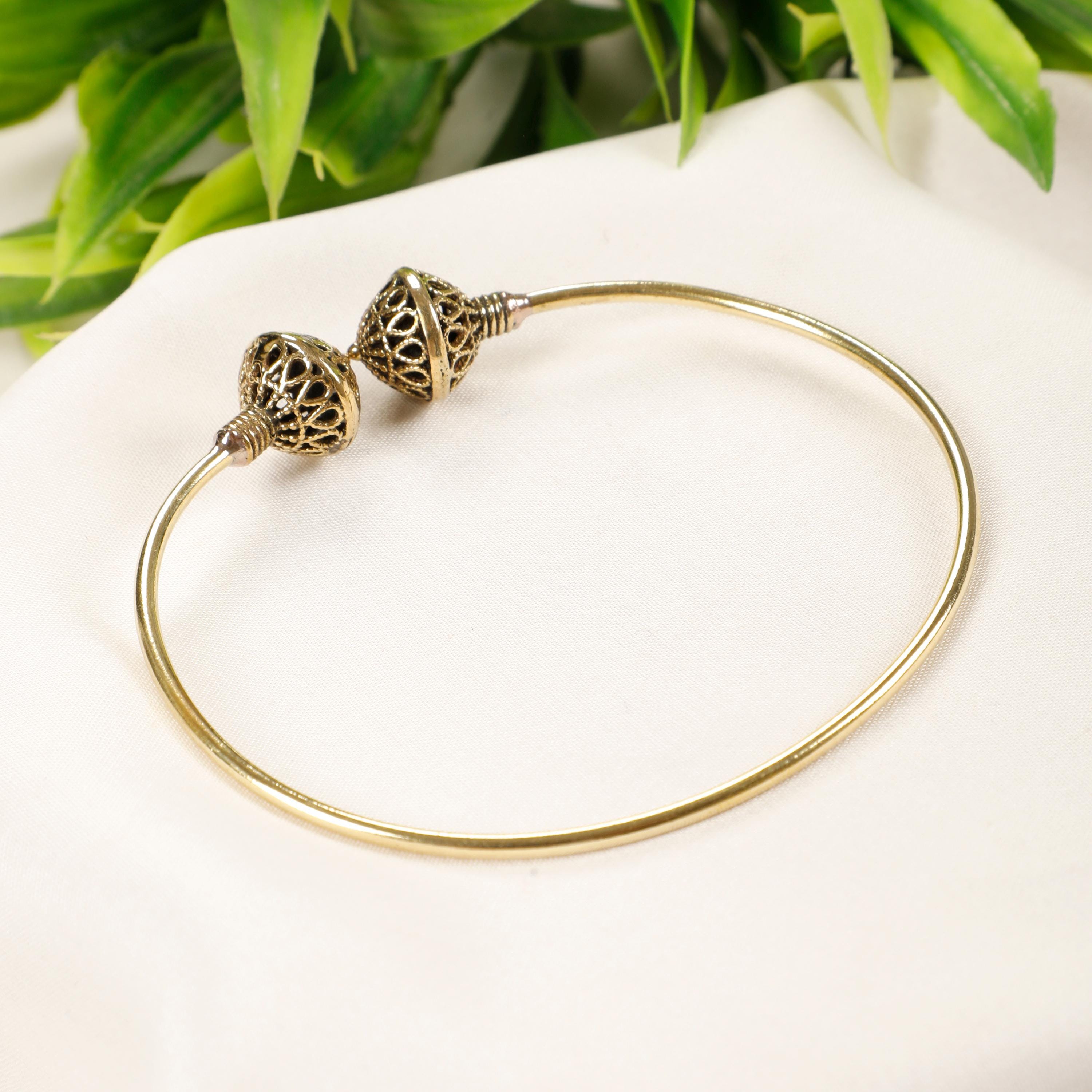 Discover our unisex Viking-style brass bangle, semi-open and adjustable, decorated with two openwork spheres with ethnic motifs. This unique piece of jewelry combines Nordic cultural heritage with contemporary design, creating an eye-catching piece that adds a touch of originality.