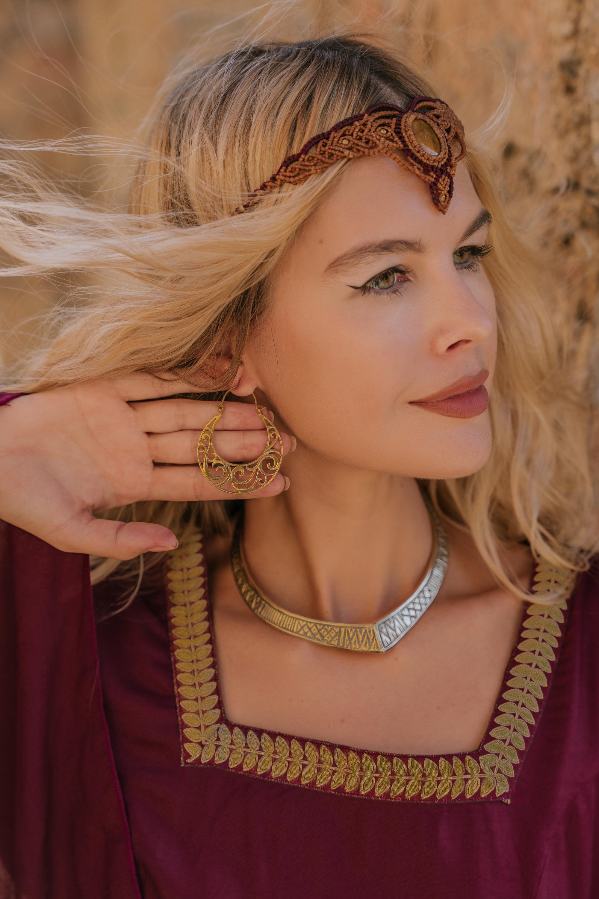 Discover the timeless elegance of our Celtic torque necklace in raw brass, a piece of jewelry that combines tradition and modernity. This unique necklace stands out with its pointed shape and engraved geometric tribal designs, which evoke a rich cultural heritage while adding a contemporary touch to your style.