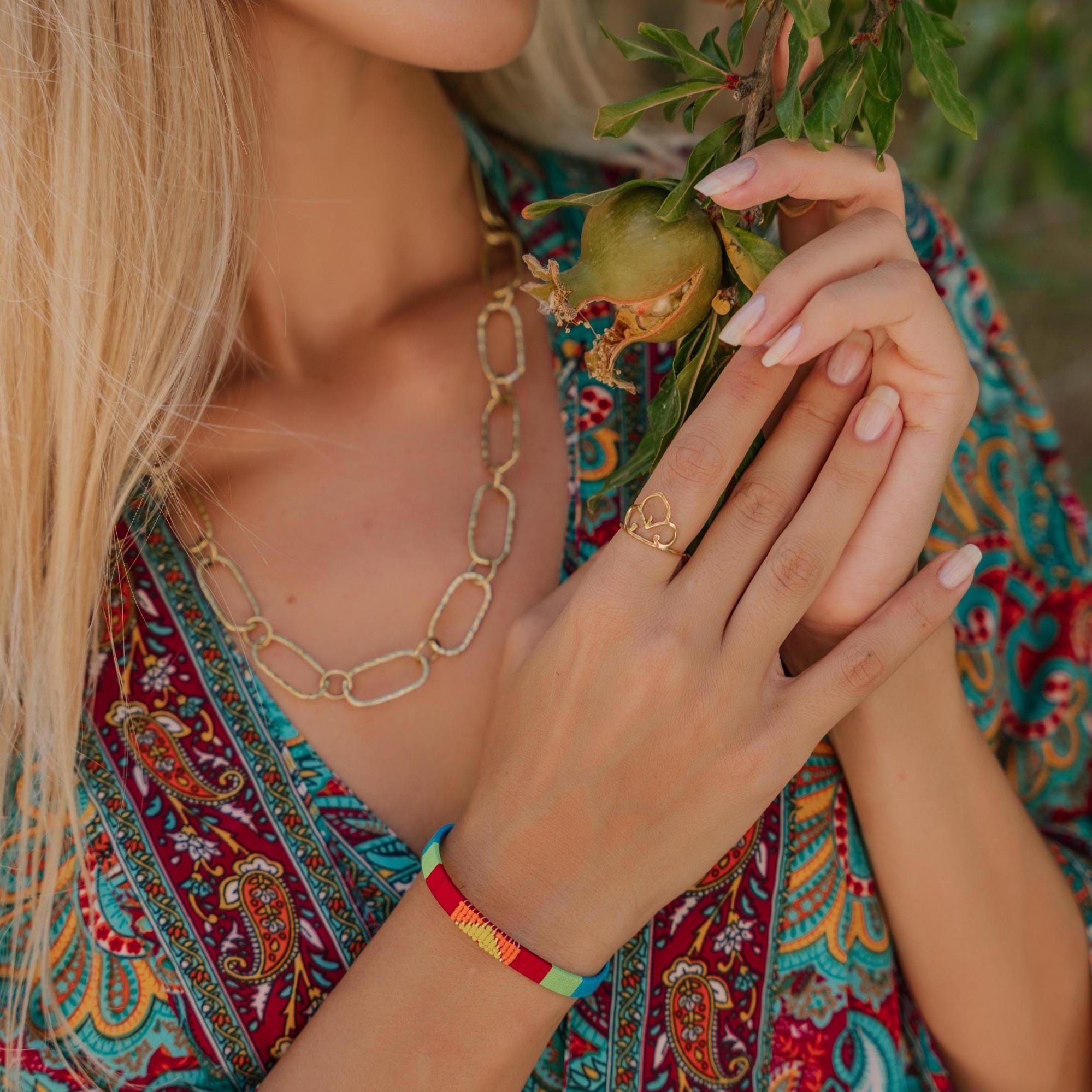 Add a touch of exotic allure to your look with our golden oriental adjustable brass ring.