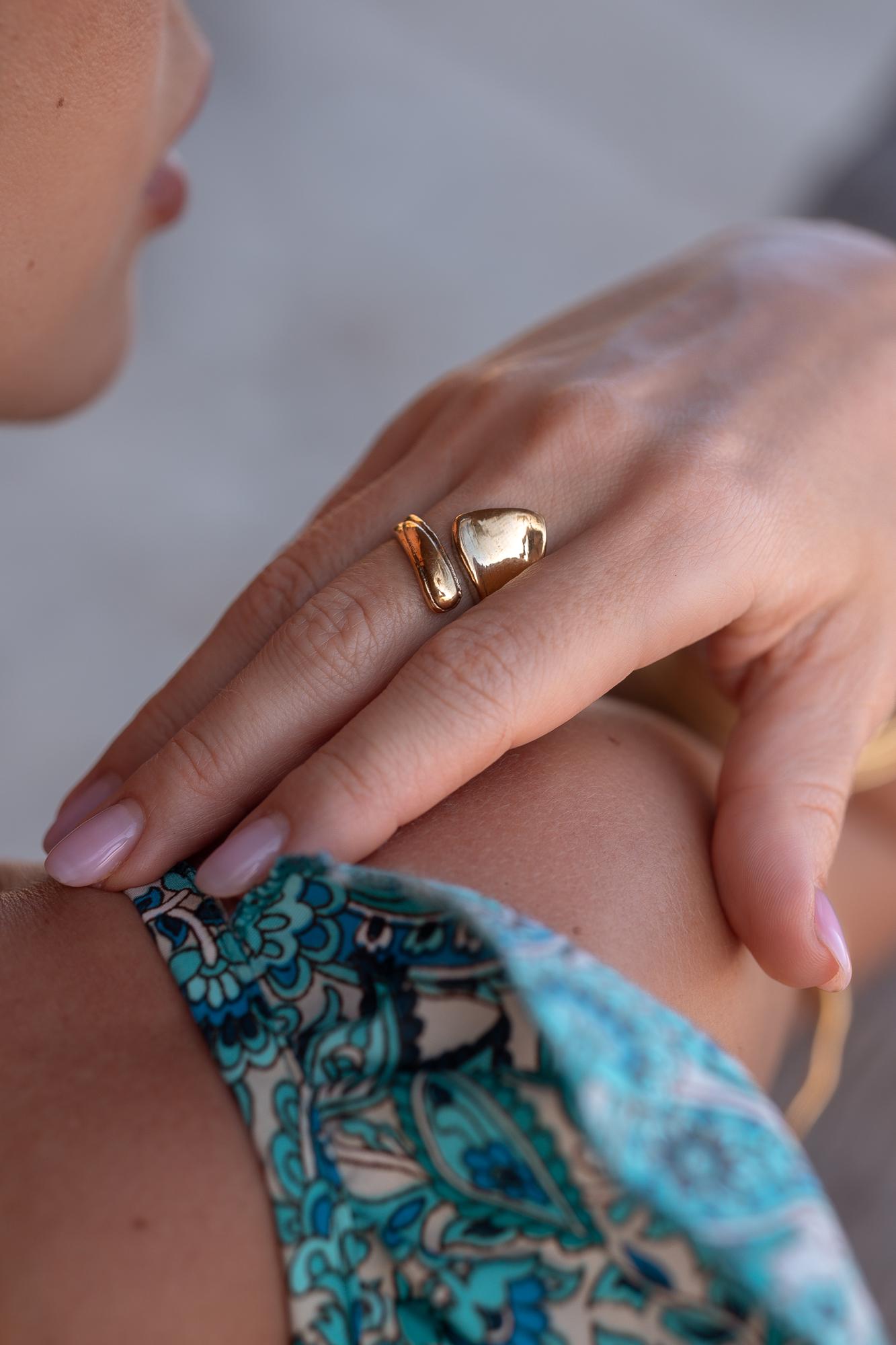 Its fluid, contemporary silhouette makes it a versatile accessory, ideal for all occasions, whether for an outfit or a casual dressy evening. Made from brass, this ring is lightweight, ensuring everyday use without compromising on style.