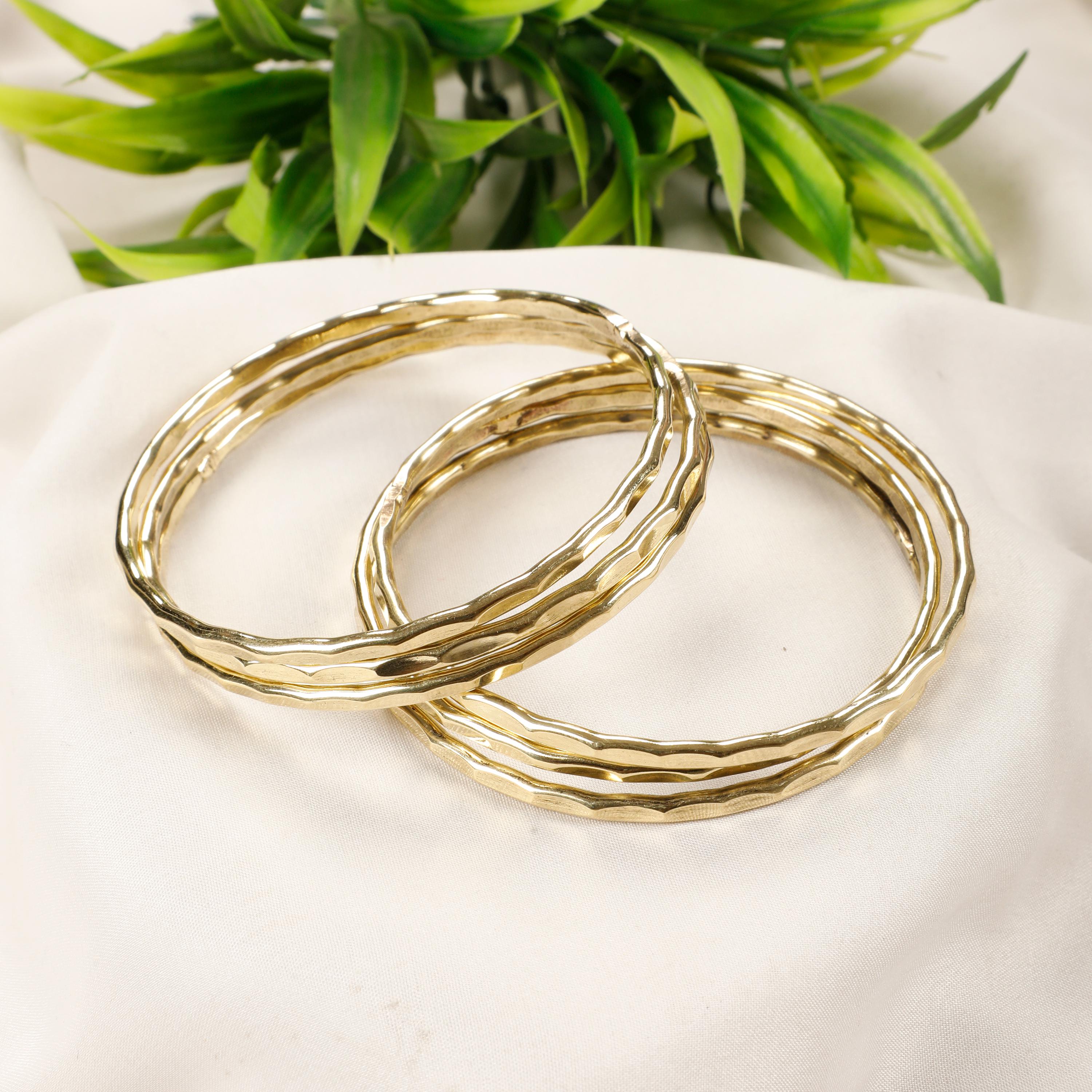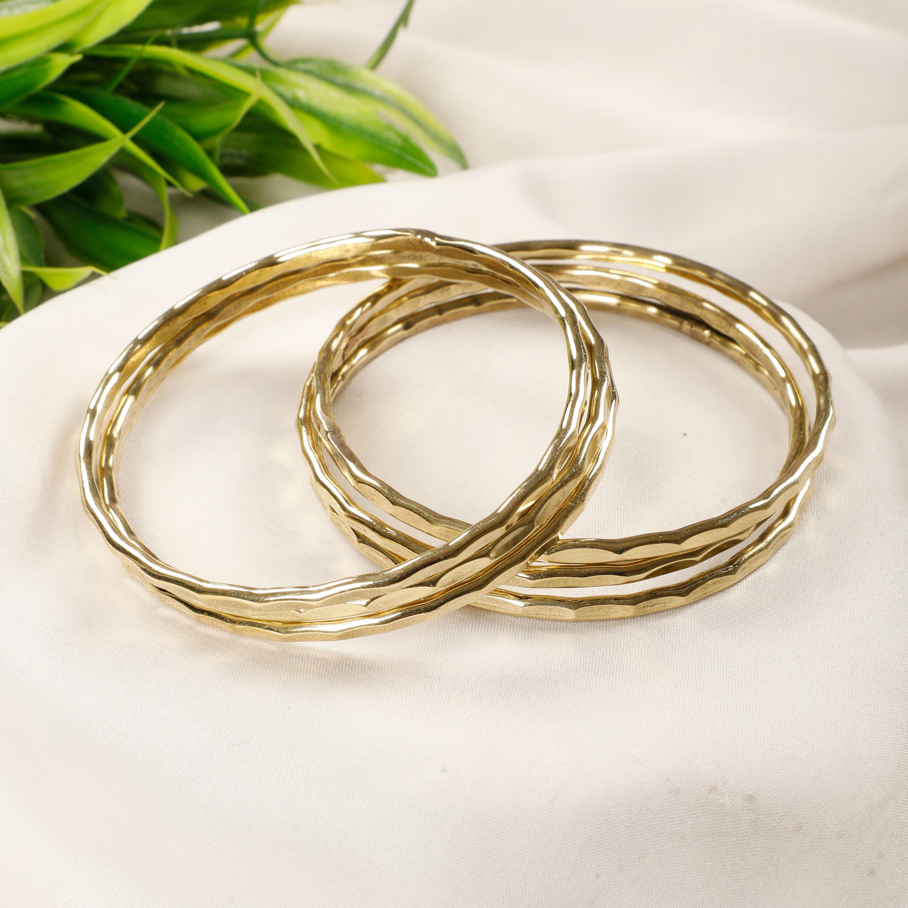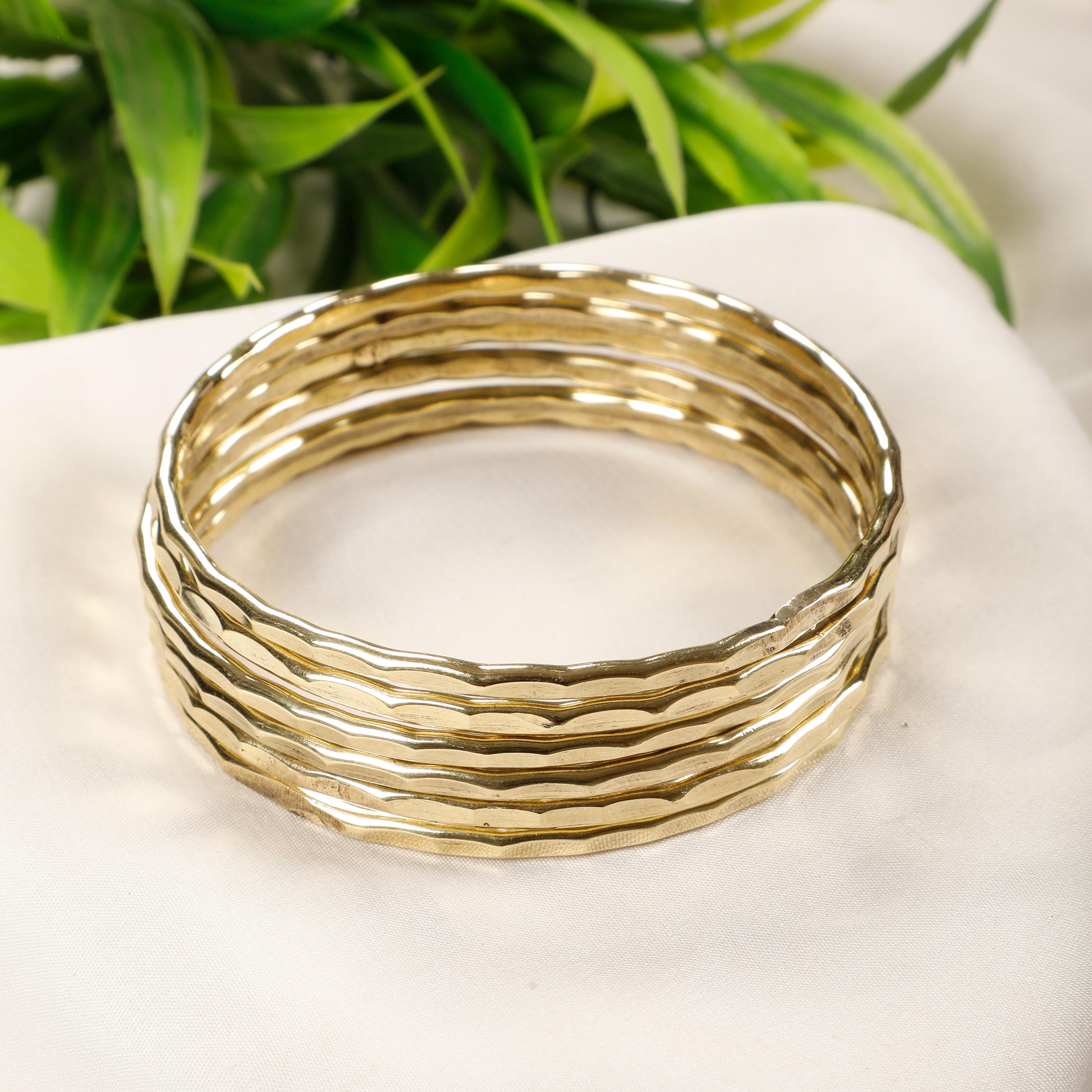 Elevate your everyday style with this set of 6 fine hammered bracelets. Their delicate design and textured finish add a subtle touch of sophistication to any outfit. Wear them stacked together for a bolder look, or individually for a minimalist touch. These delicate bracelets add a touch of understated glamor to any look, from casual daytime outfits to elegant evening ensembles.