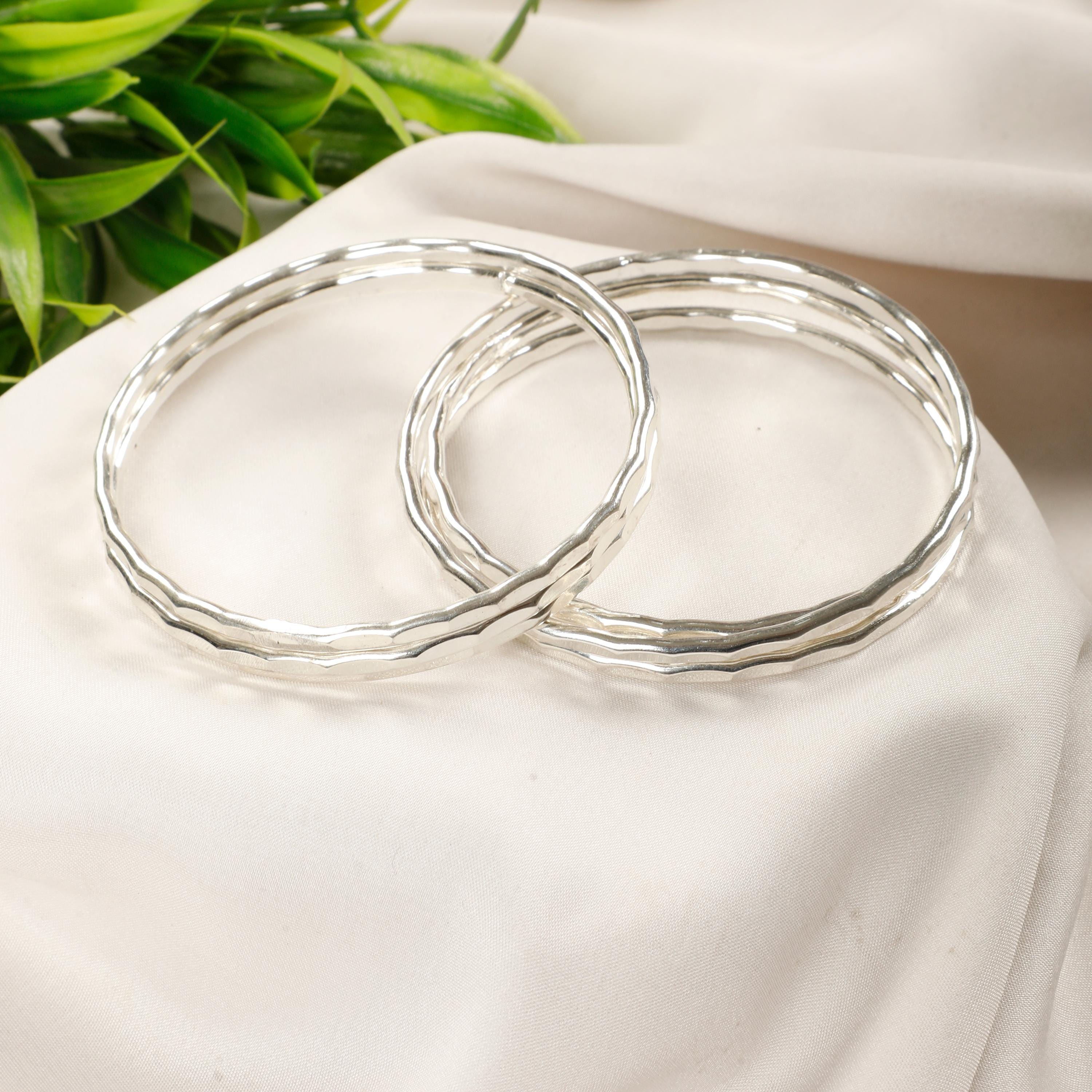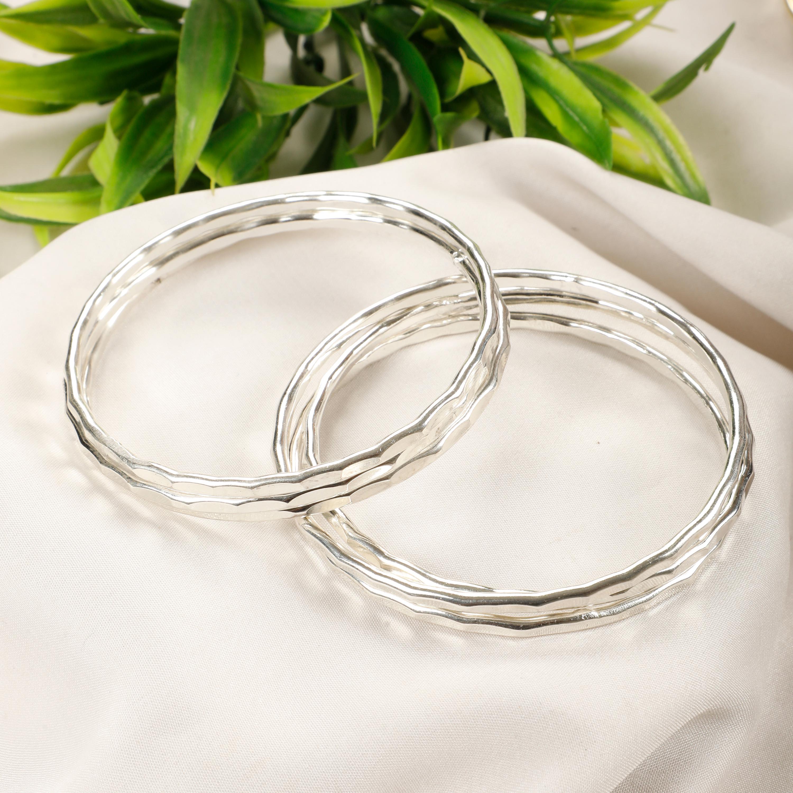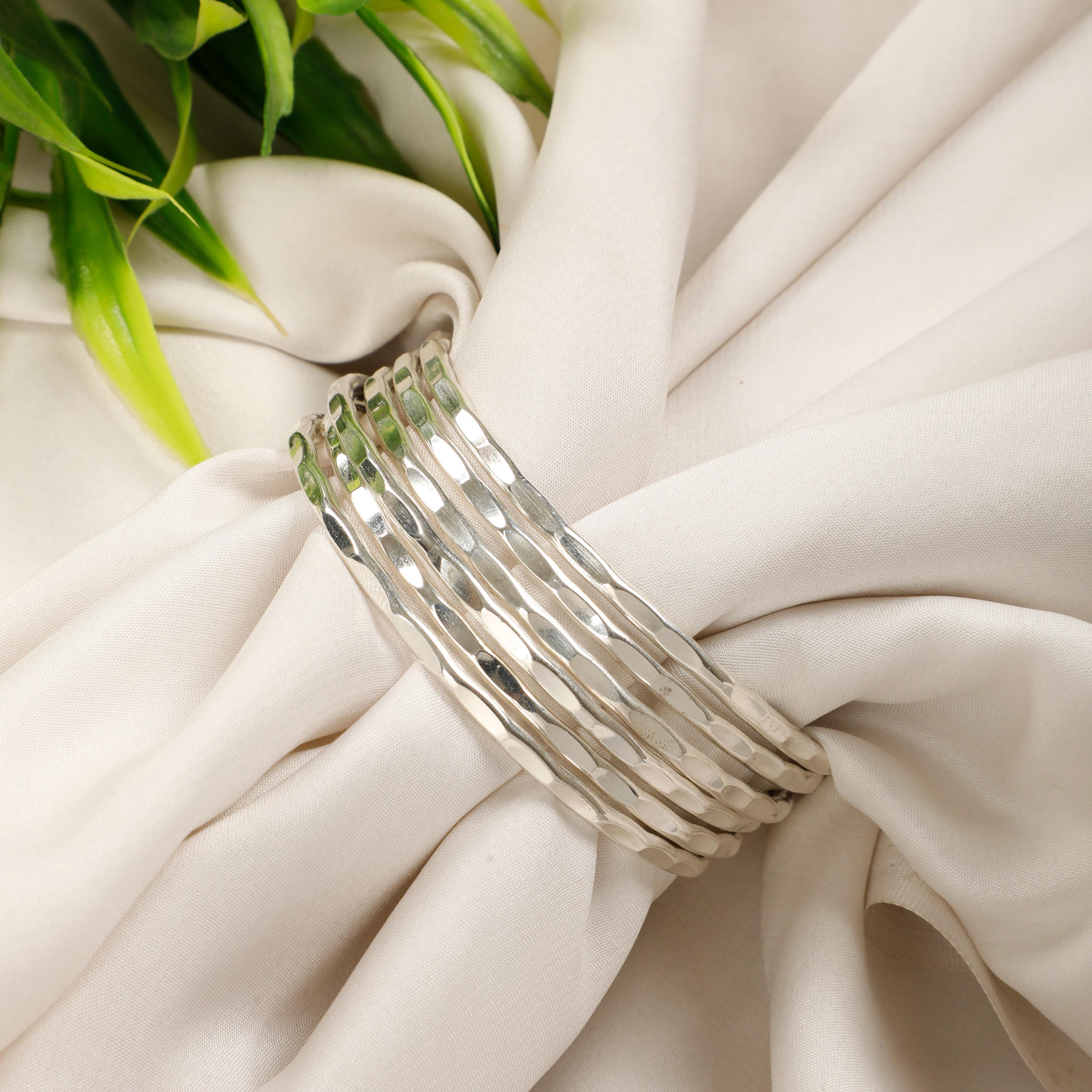 Elevate your everyday style with this set of 6 fine hammered bracelets. Their delicate design and textured finish add a subtle touch of sophistication to any outfit. Wear them stacked together for a bolder look, or individually for a minimalist touch. These delicate bracelets add a touch of understated glamor to any look, from casual daytime outfits to elegant evening ensembles.