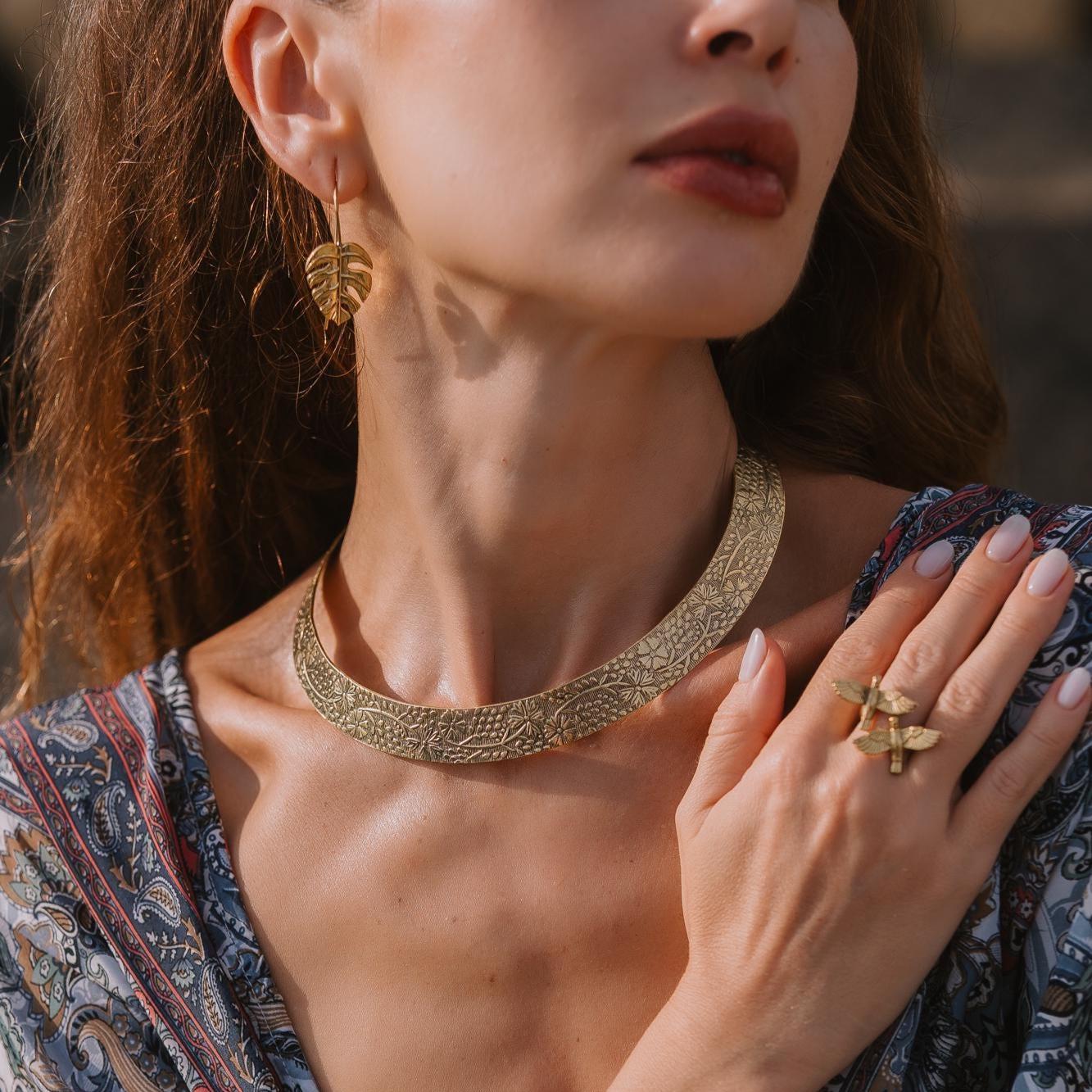 Add a touch of bohemian sophistication to your look with this stunning brass choker.