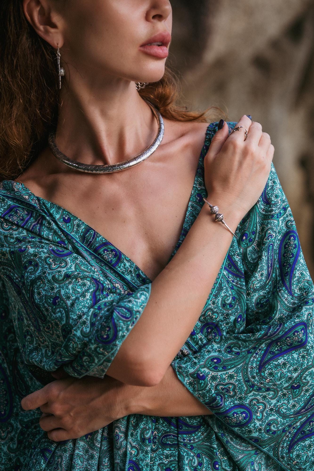 It ends with two decorative spheres like traditional torques. Perfect for dressing up a casual outfit or adding an edgy touch to an evening outfit.