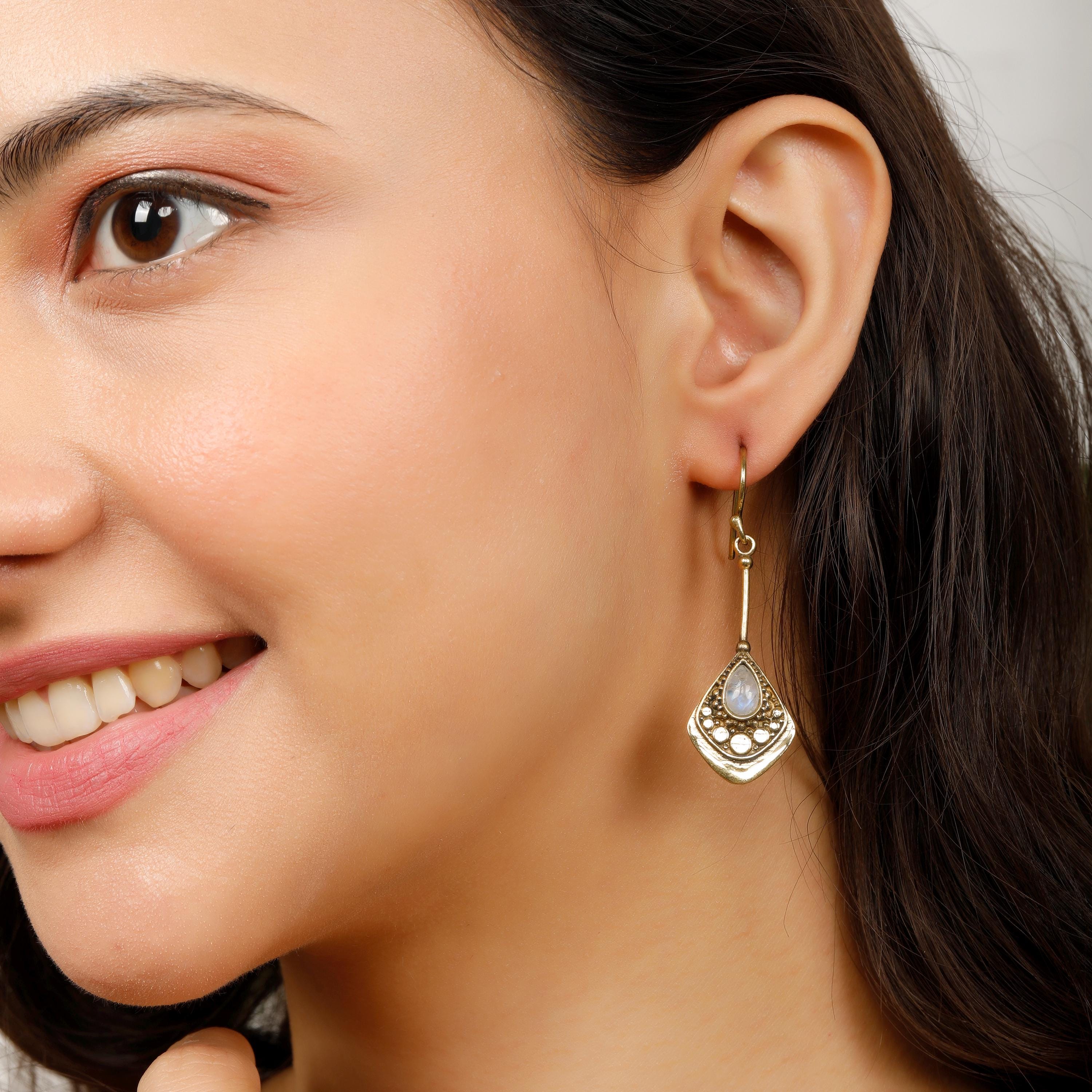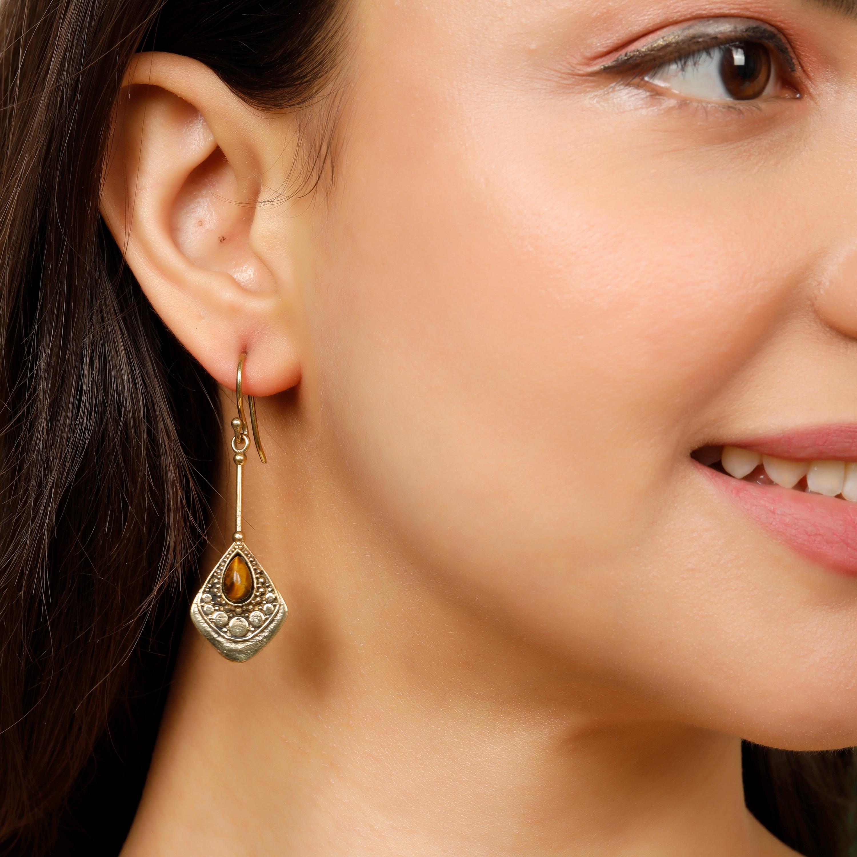 Gemstones add a pop of color and shine, enhancing the design. Lightweight and comfortable, these earrings are easy to wear all day long.