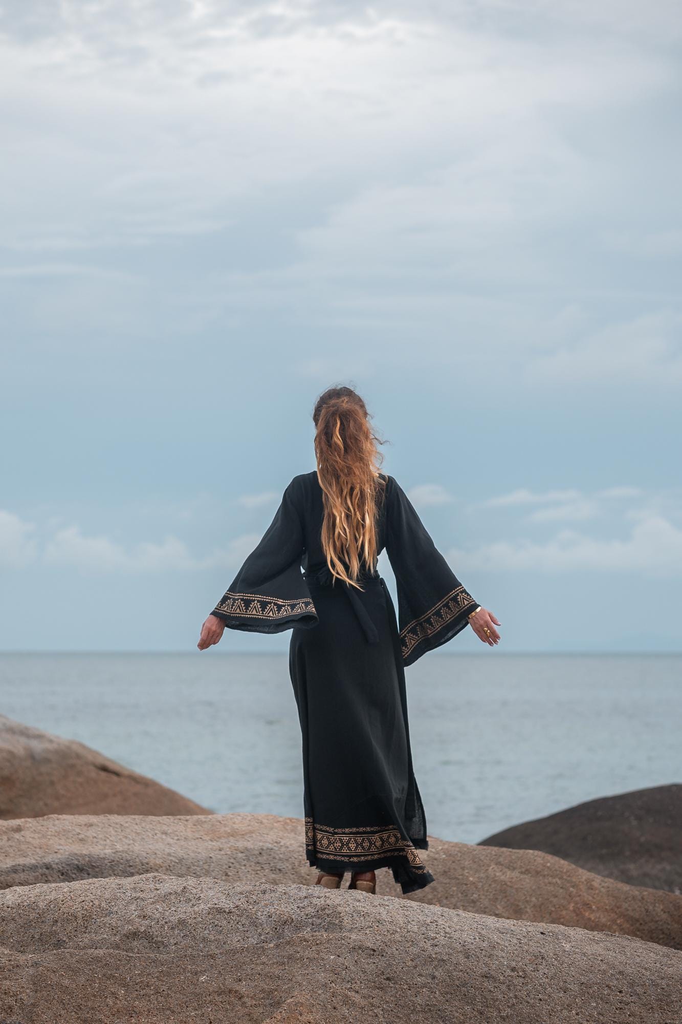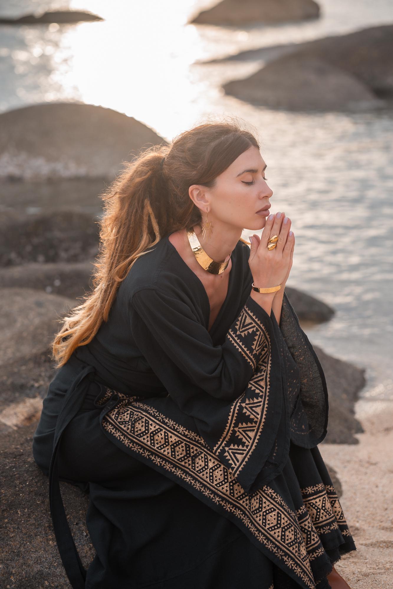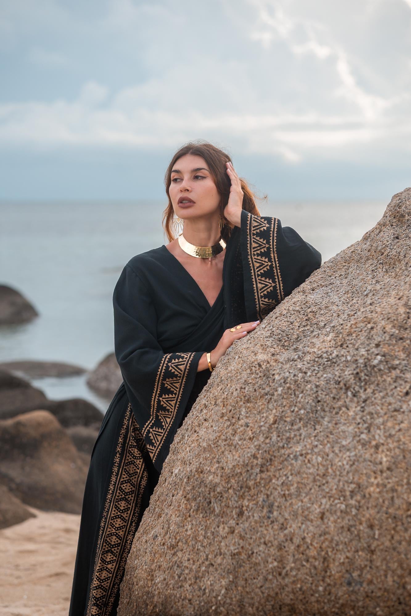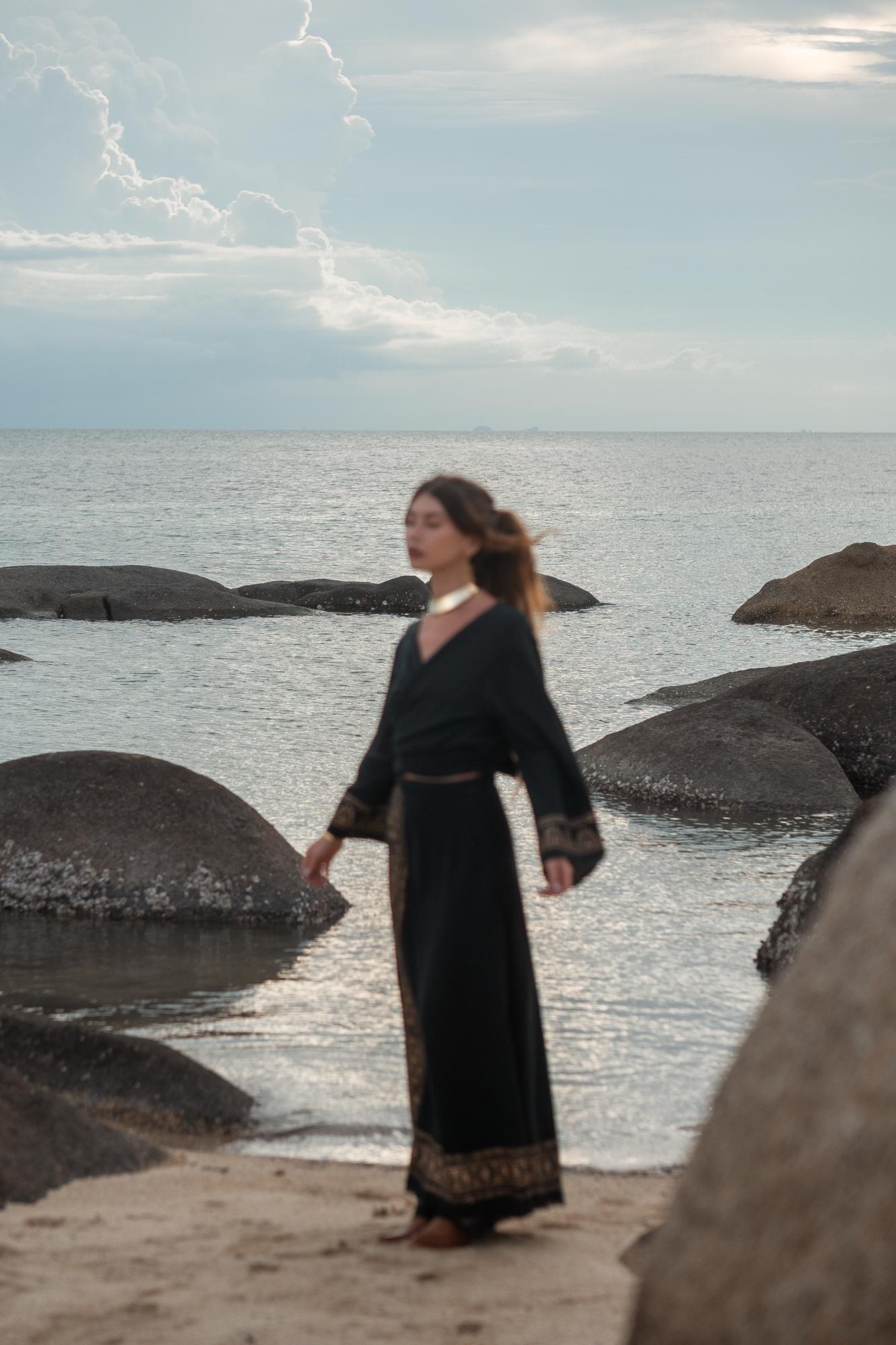 Let yourself be swept away by a fluid style with our bohemian wrap skirt in black vegetable-dyed raw cotton. More than just a piece of clothing, it's a statement. Crafted from luxuriously soft raw cotton and dyed with a sustainable black vegetable dye, this skirt embodies responsible fashion.