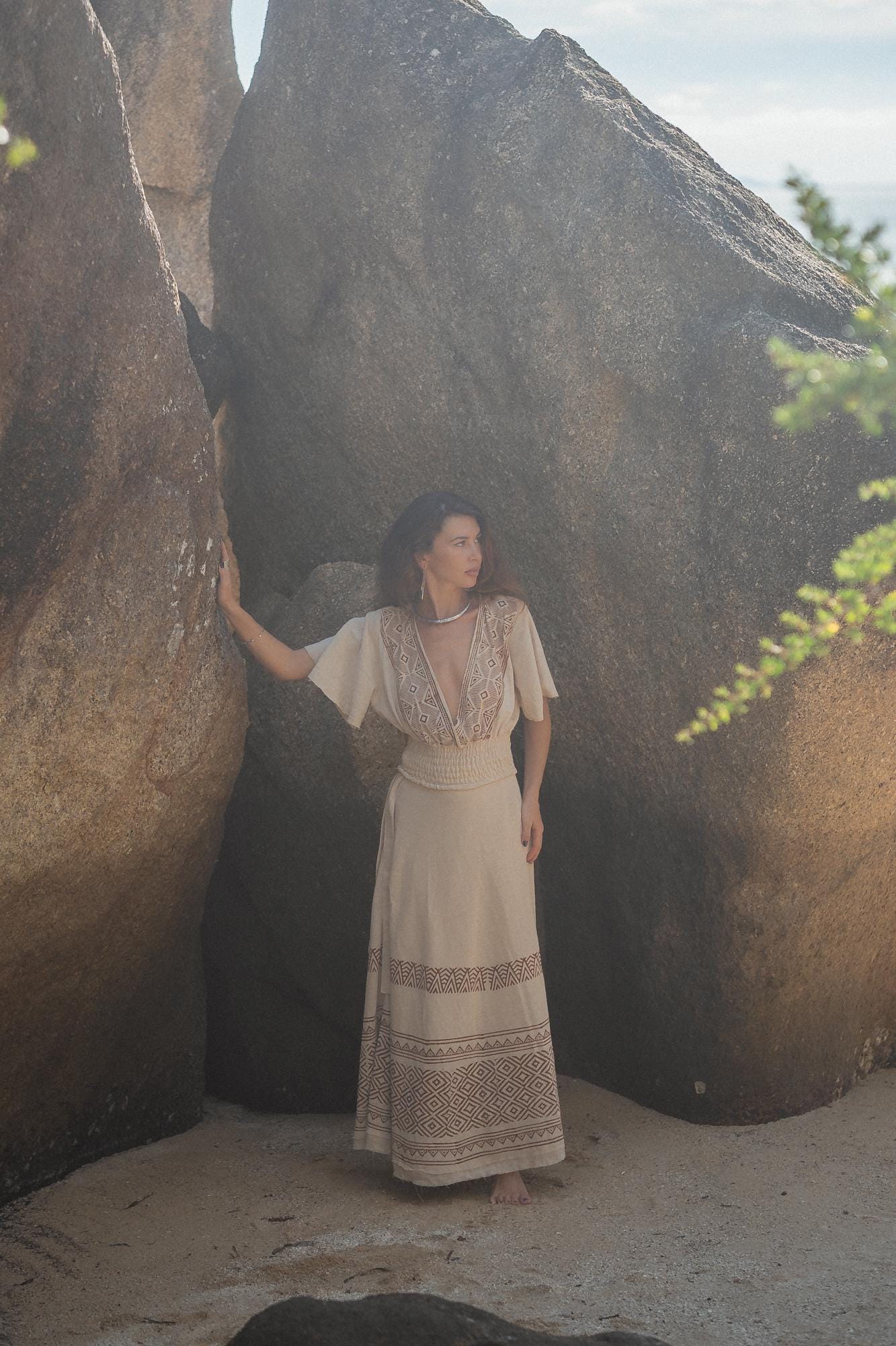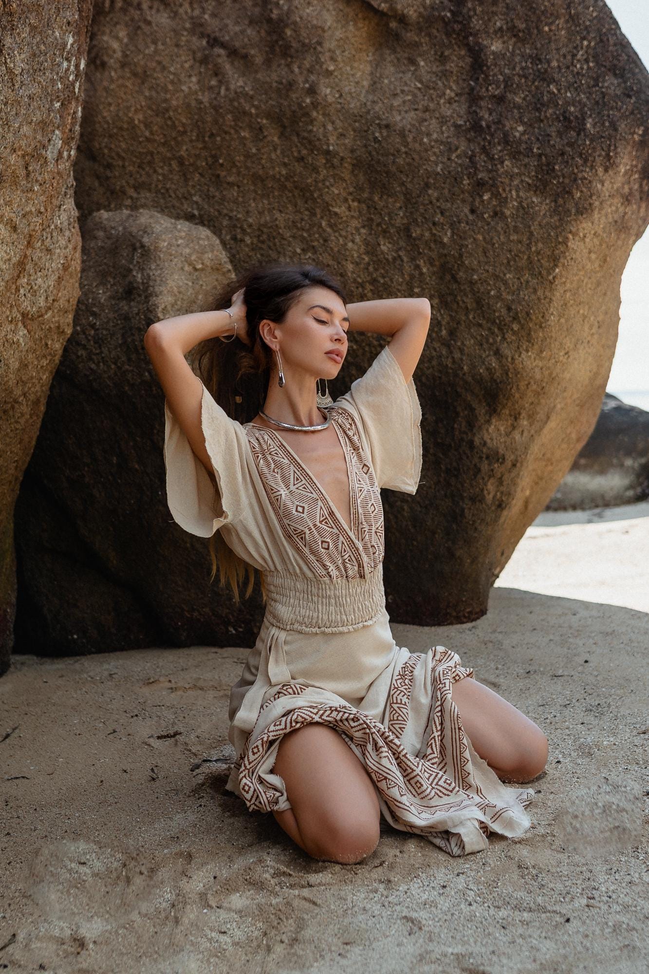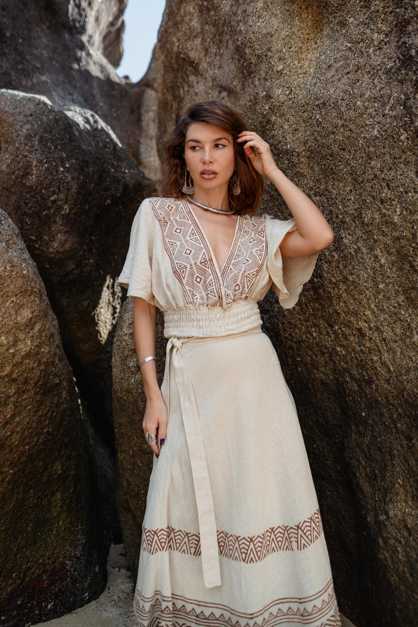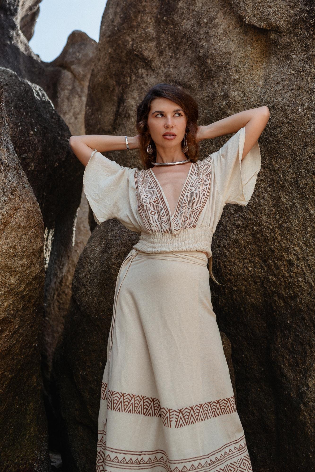 Drift into a world of free-flowing style with our Vegetable Dye Raw Cotton Bohemian Wrap Skirt. This isn't just clothing; it's a statement. Crafted from luxuriously soft raw cotton, and dyed using a sustainable vegetable dye, this skirt embodies conscious fashion.