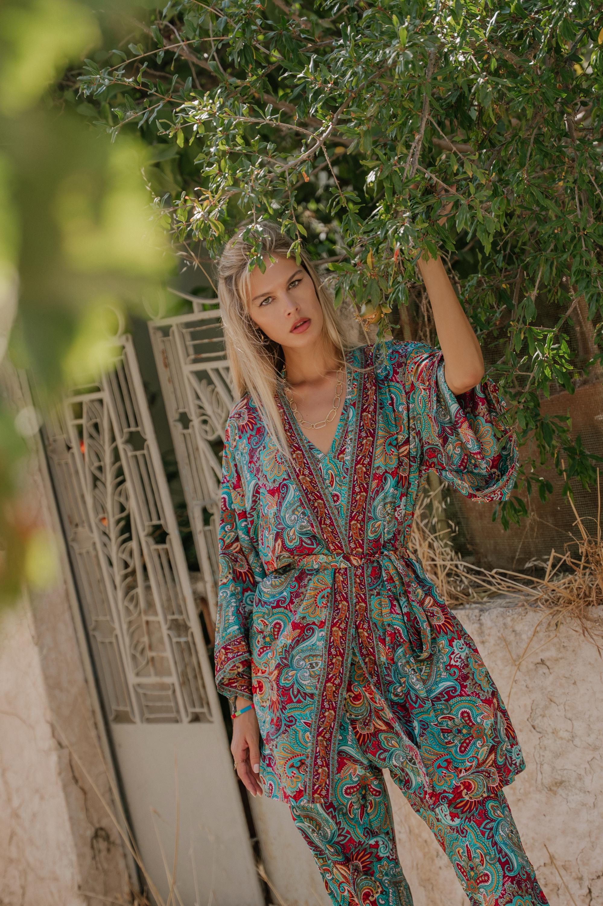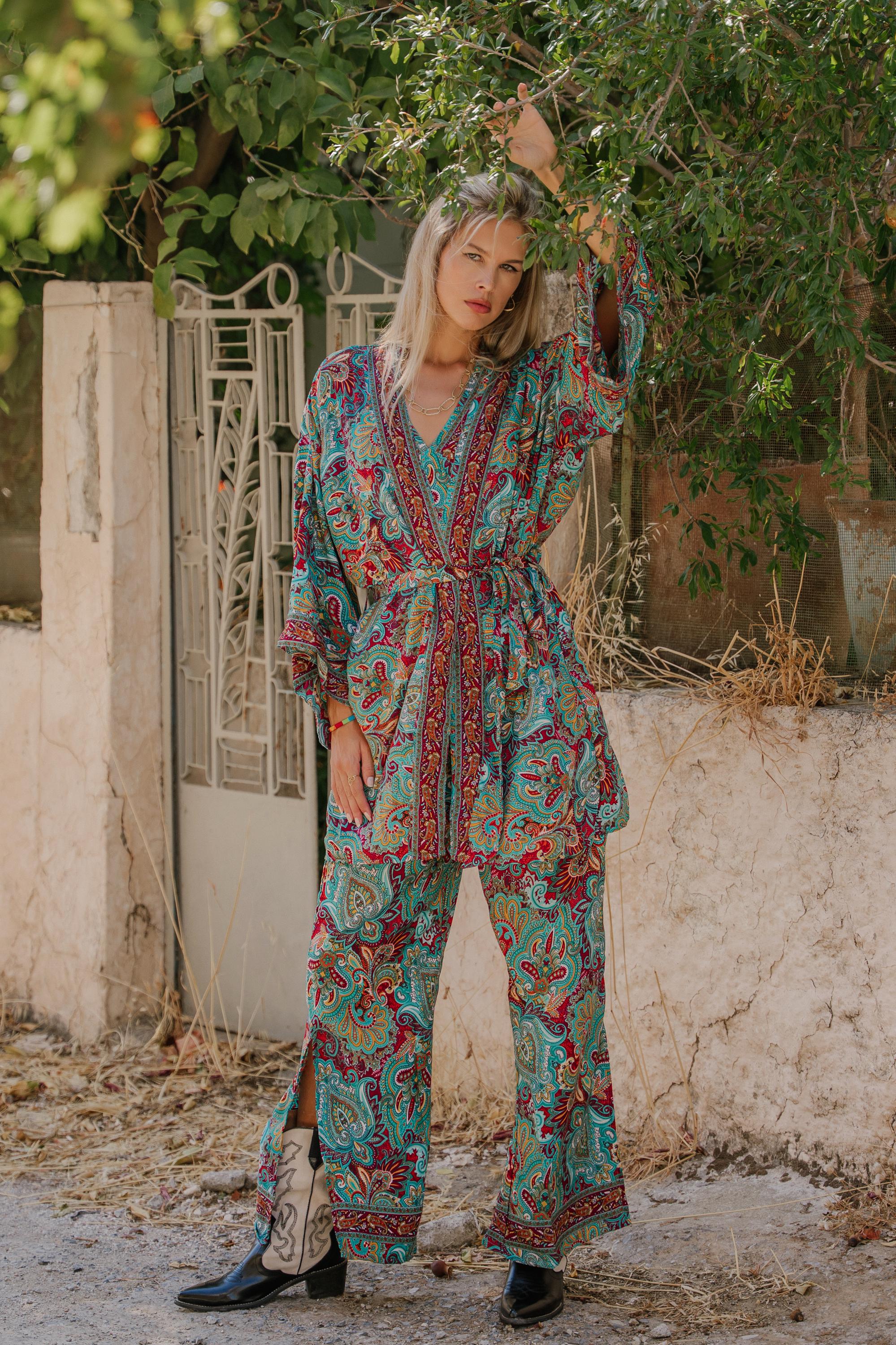 Add a touch of free-spirited style to your wardrobe with our Paisley Print Bohemian Kimono.