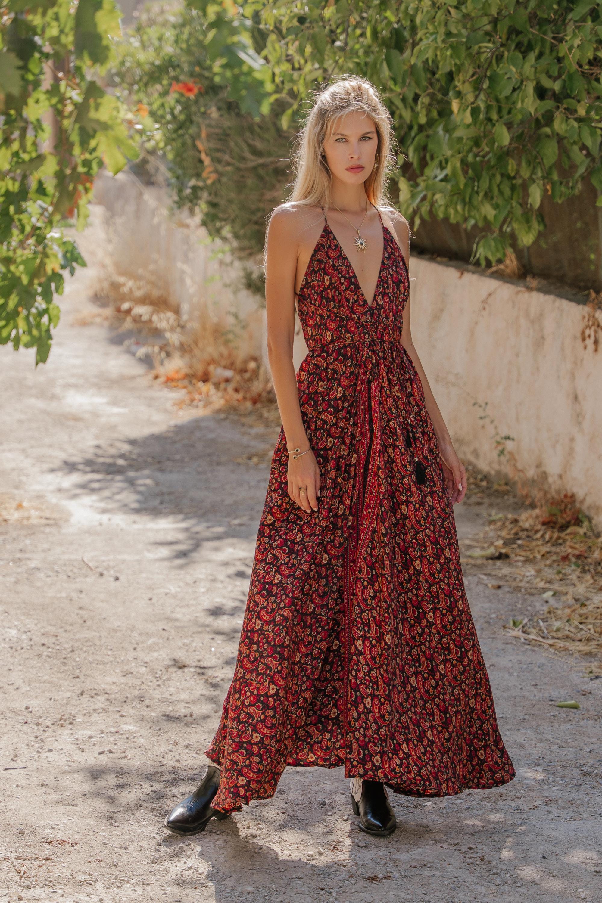 Drift into summer with our captivating Black Bohemian floral Maxi Dress.