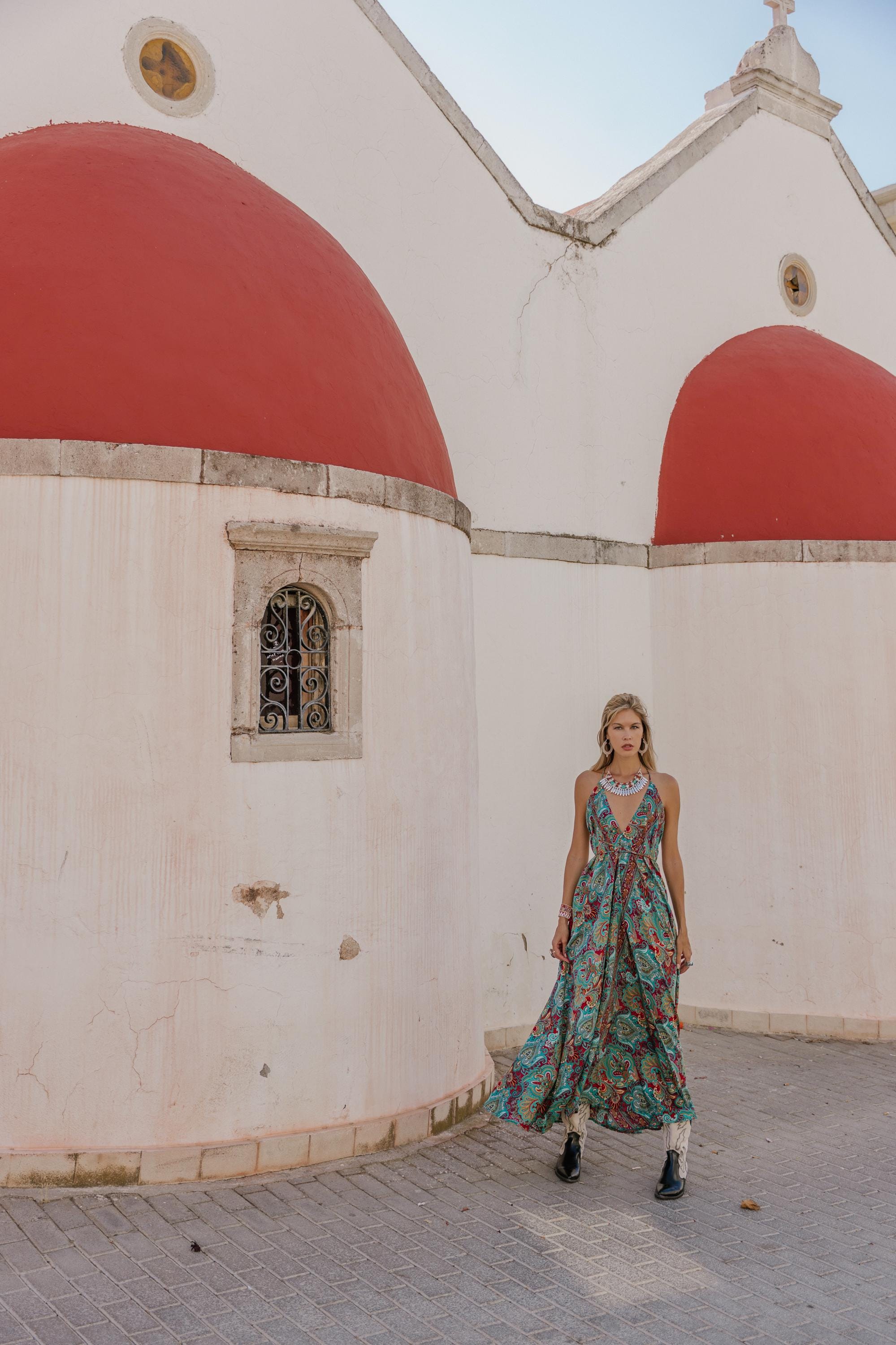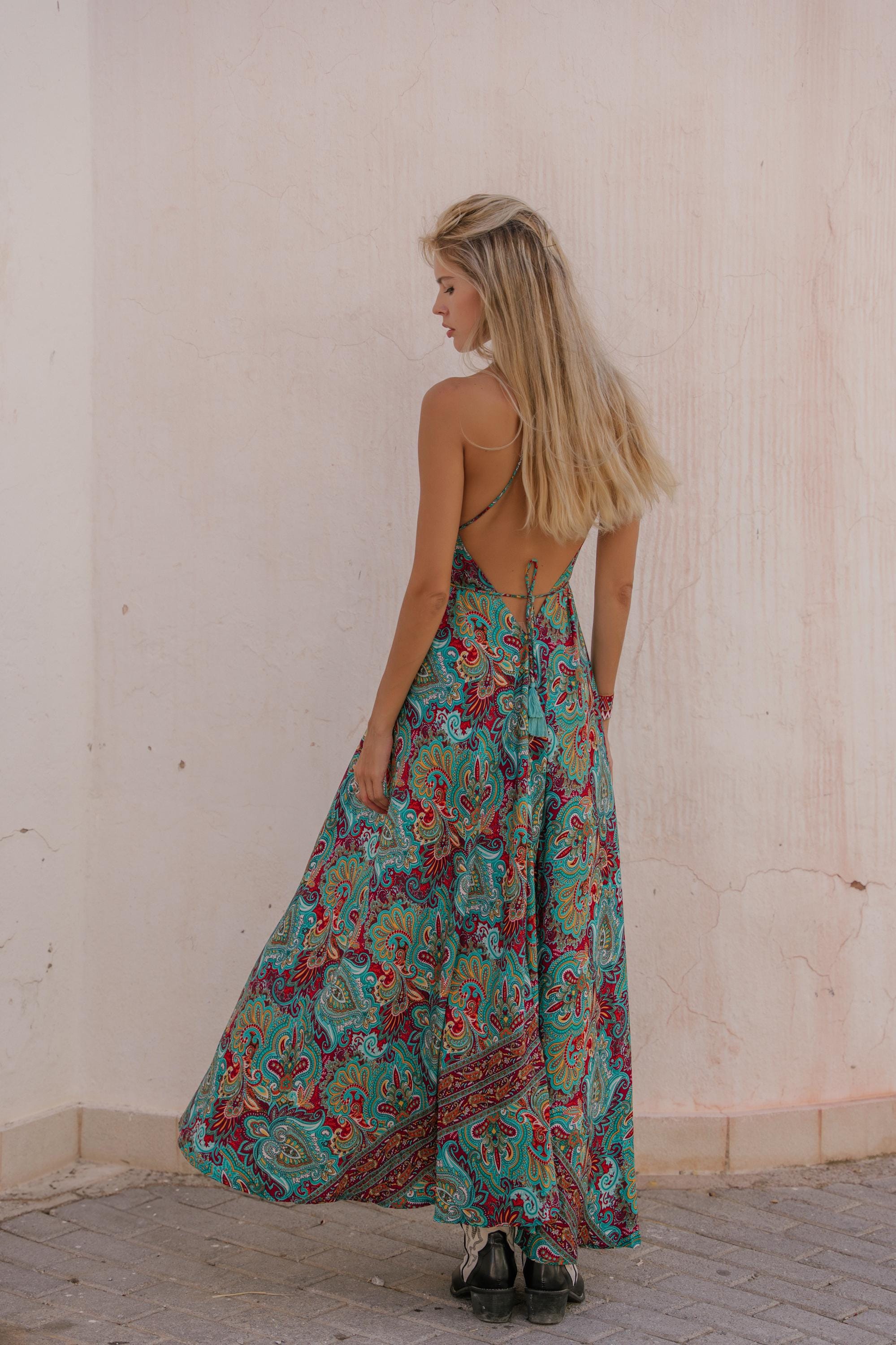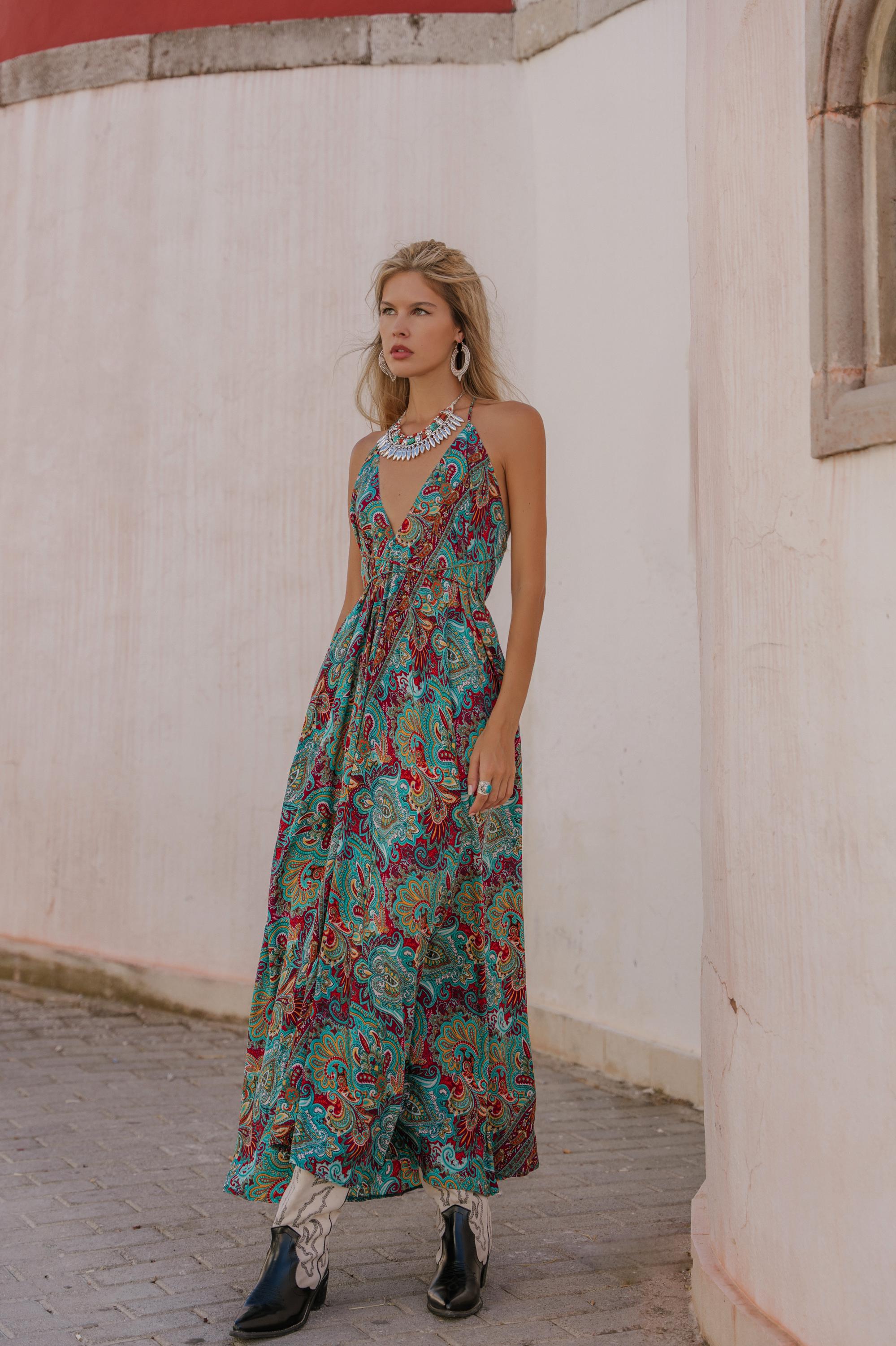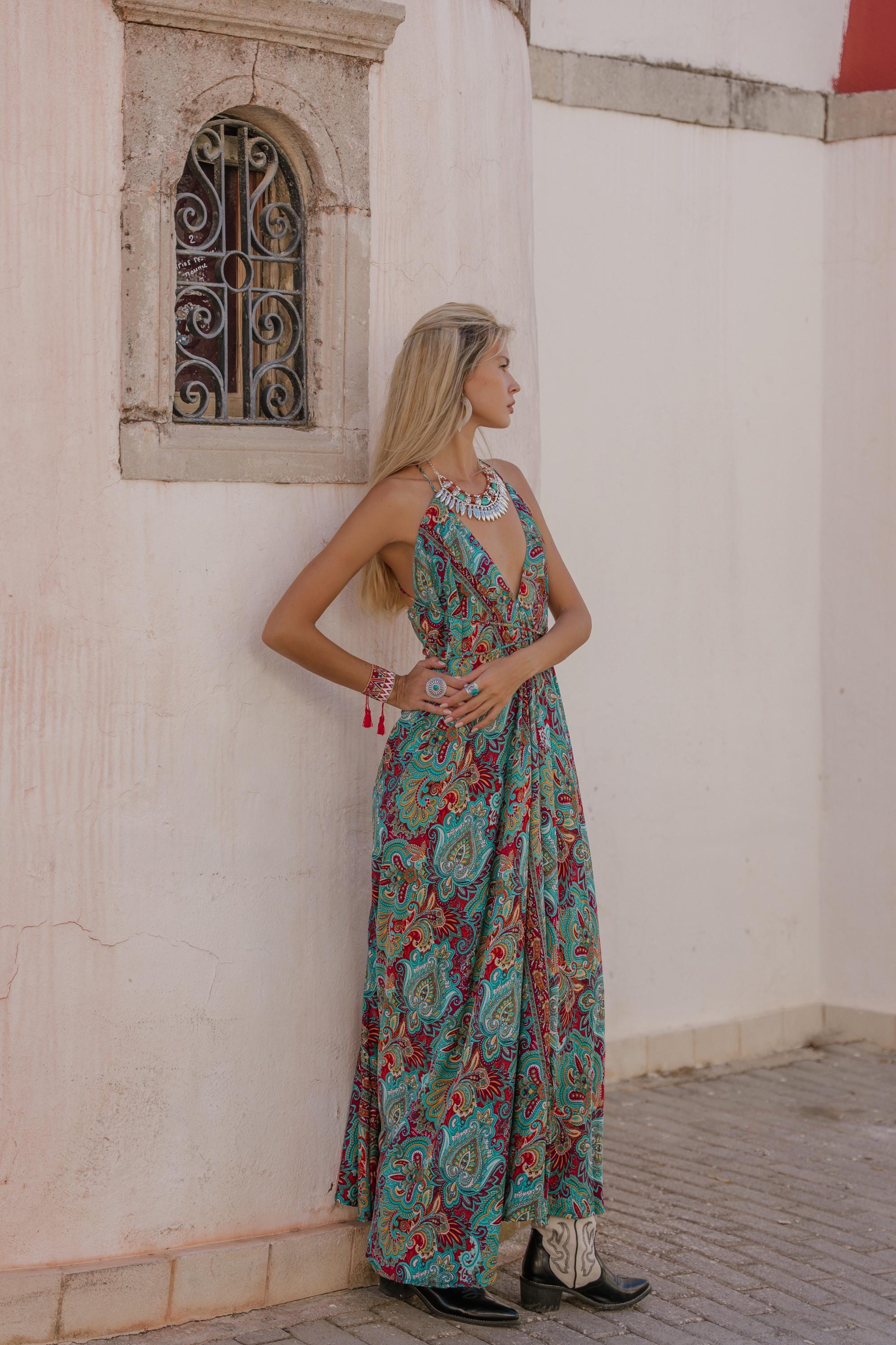 Drift into summer with our captivating green Bohemian Paisley Maxi Dress.