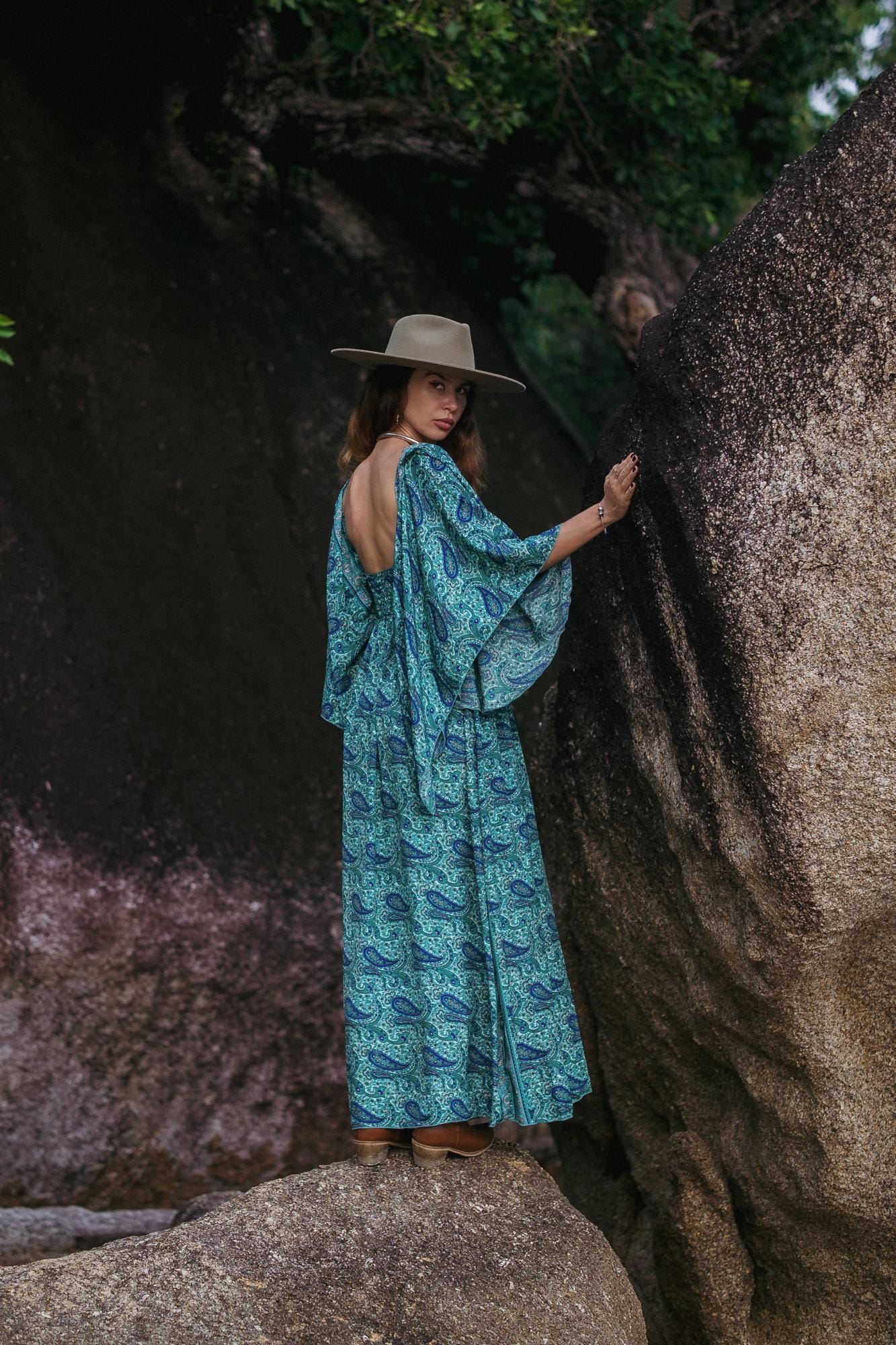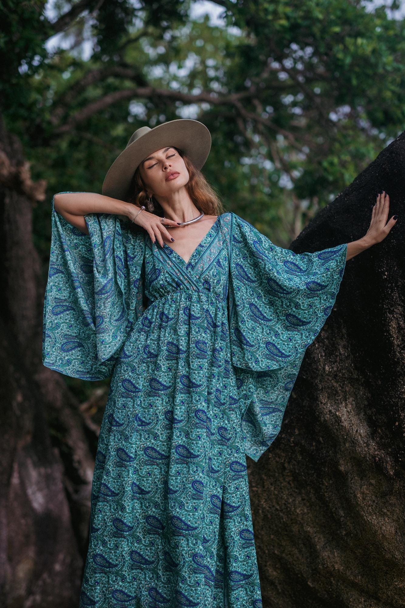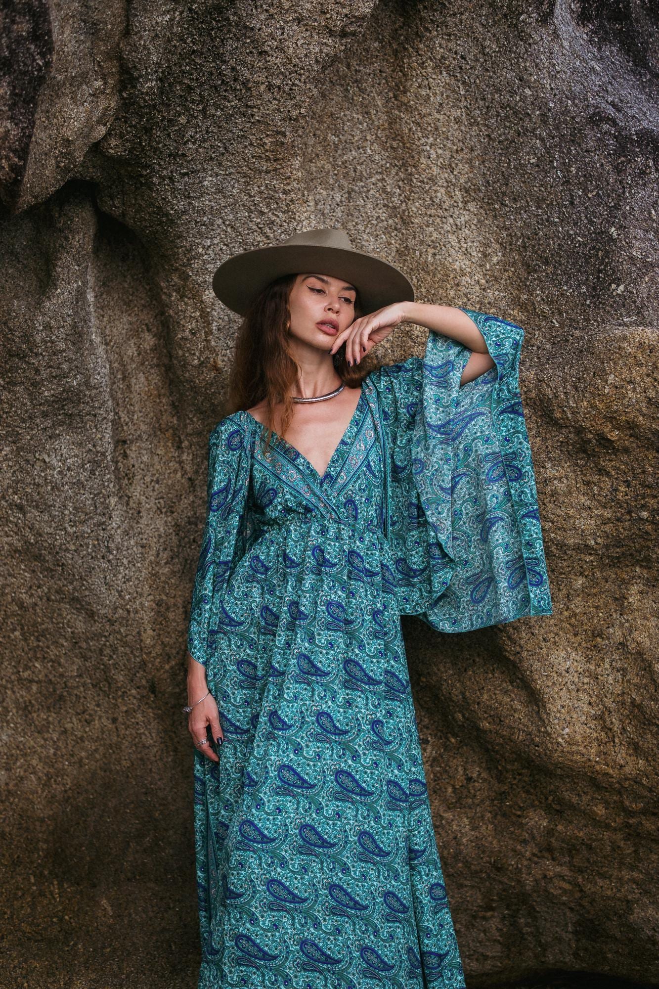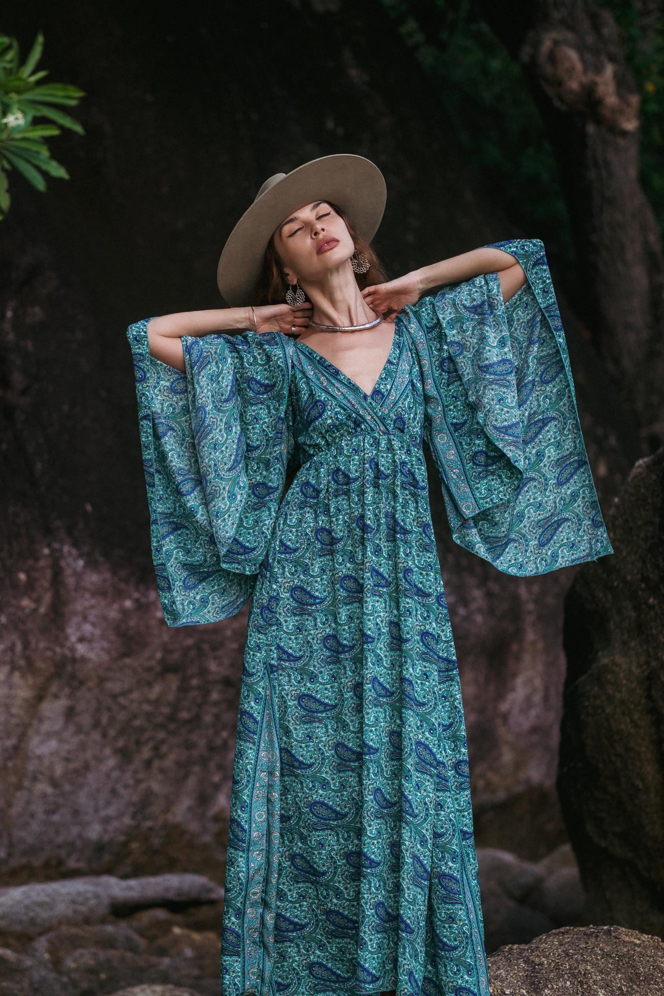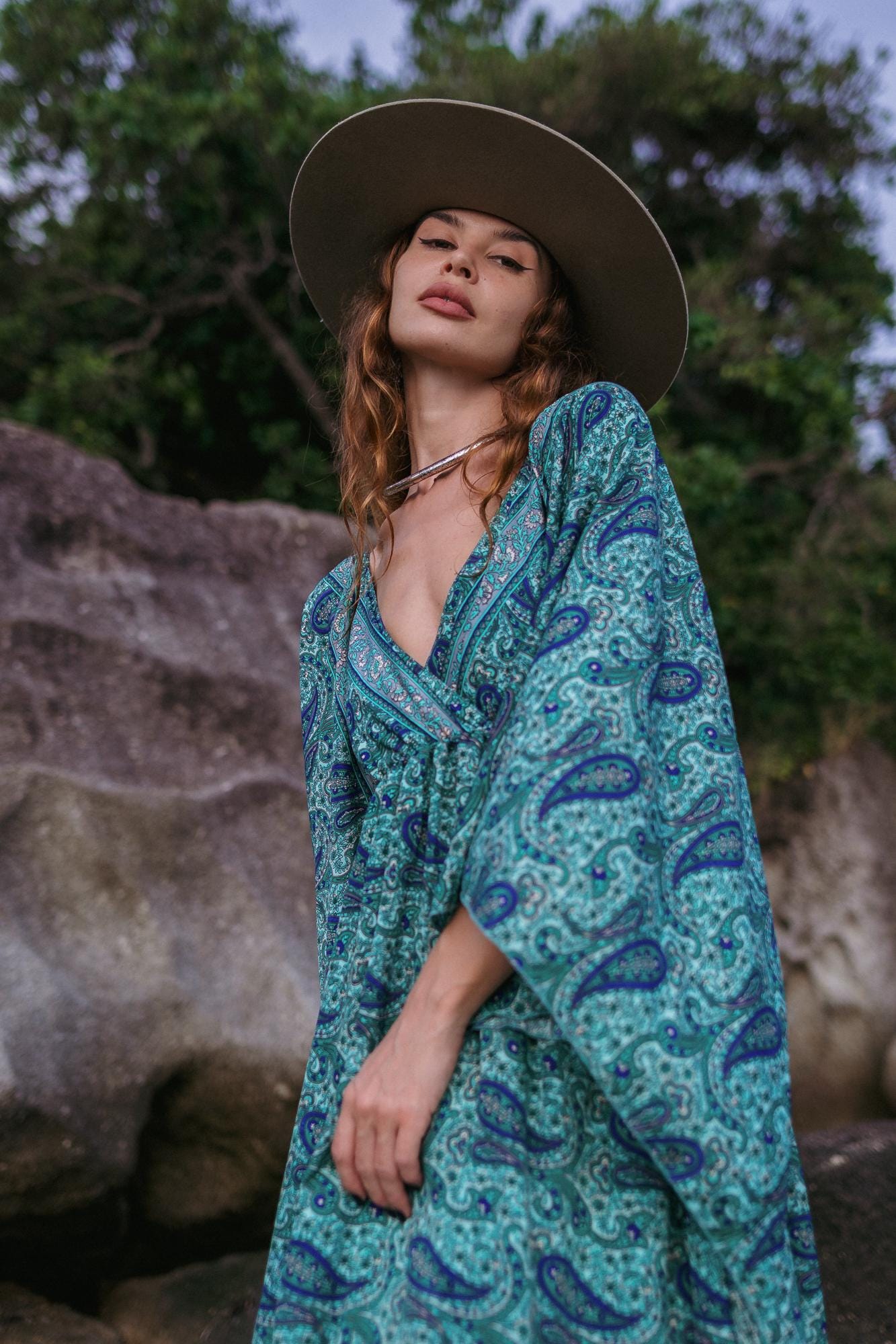 Indulge in Rich Bohemian Elegance with Our Petrol Paisley Maxi Dress.