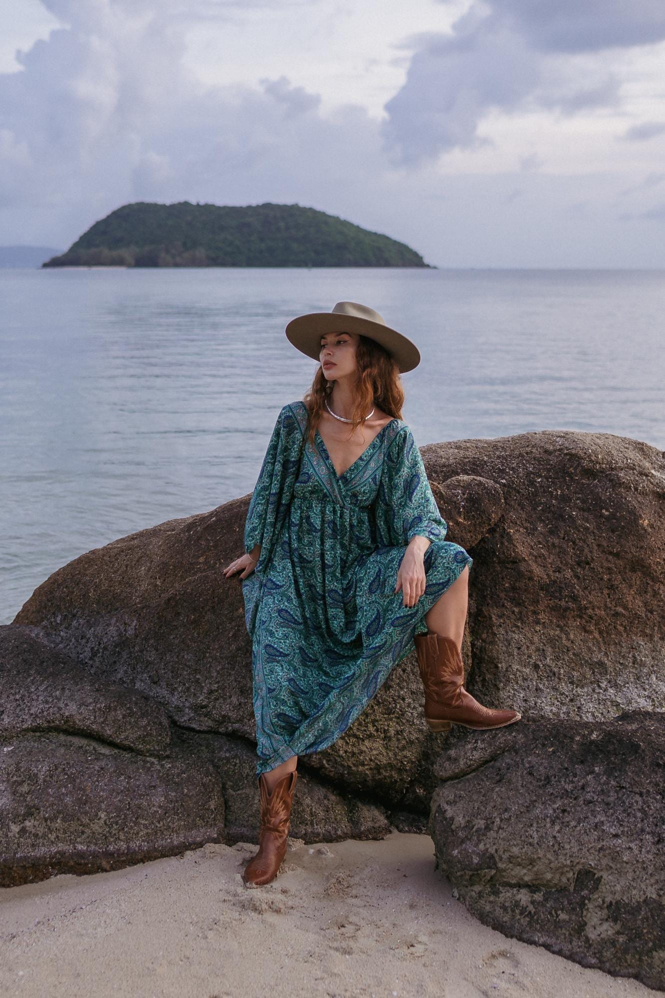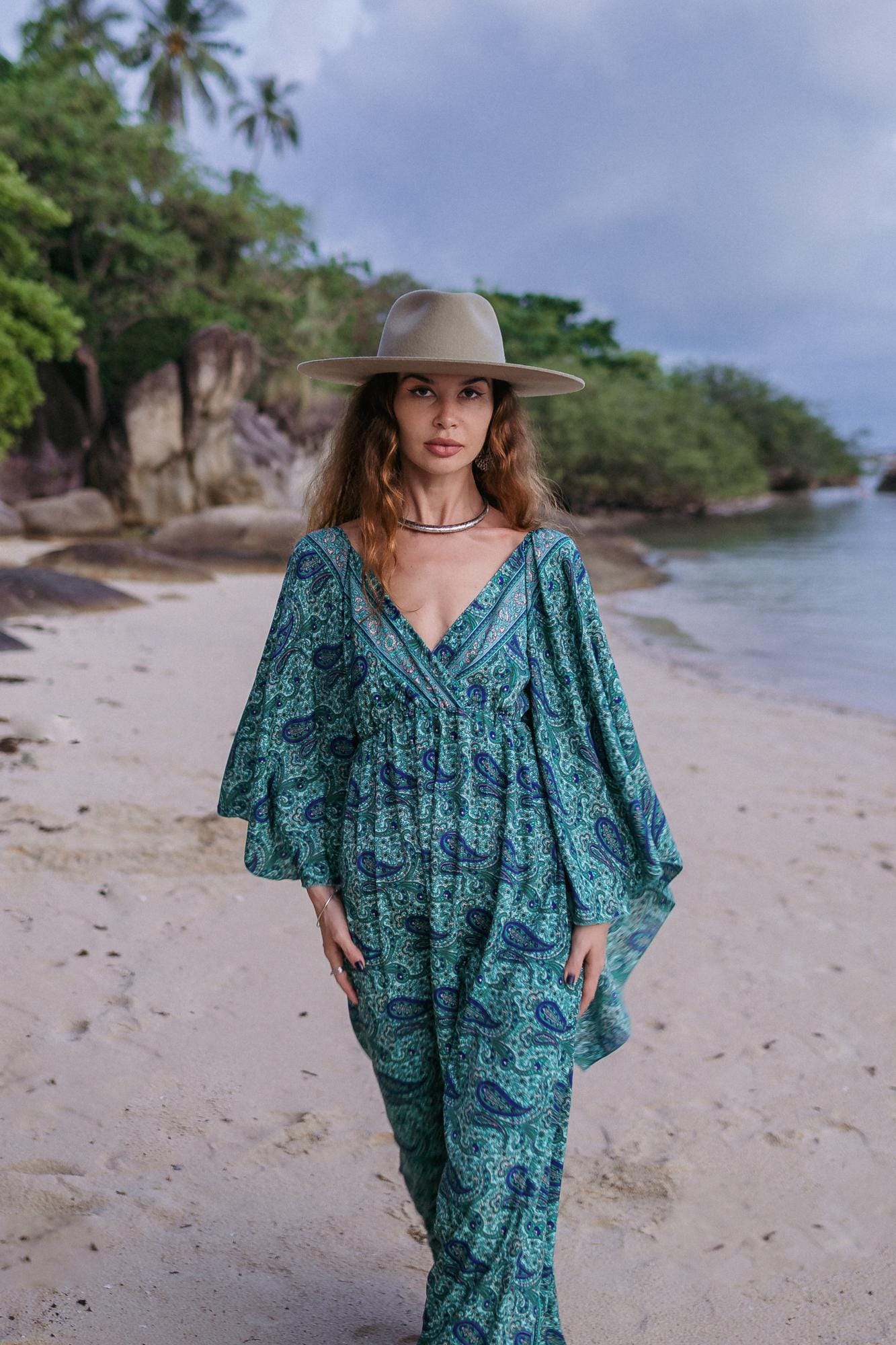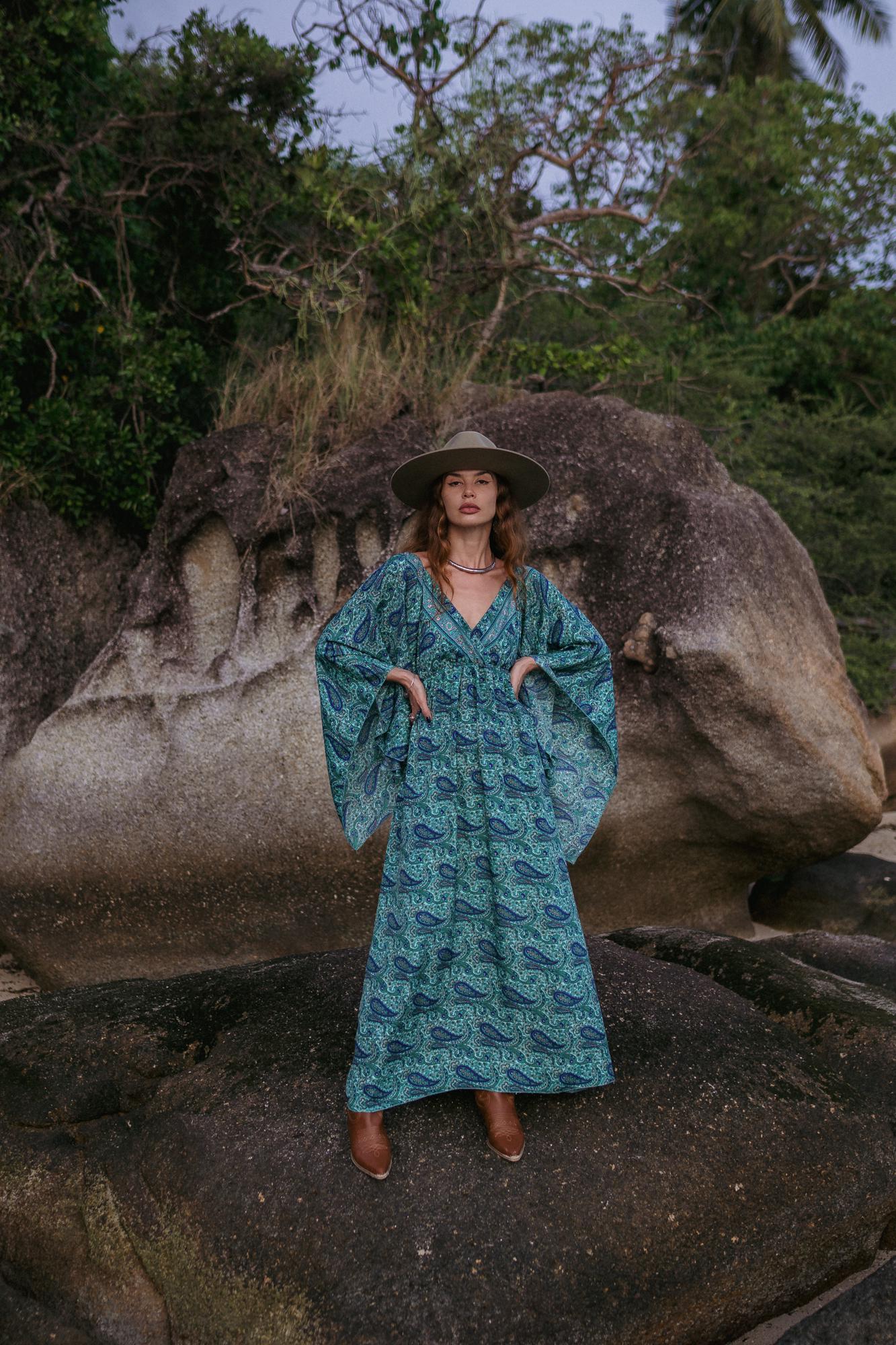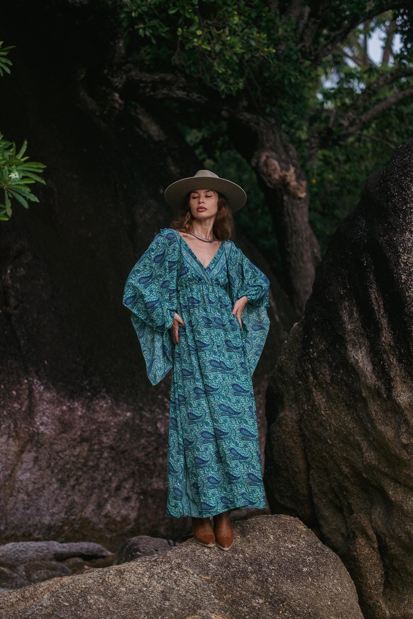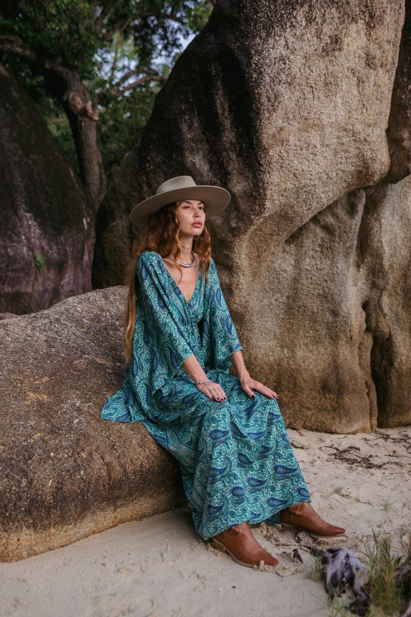 Indulge in Rich Bohemian Elegance with Our Petrol Paisley Maxi Dress.