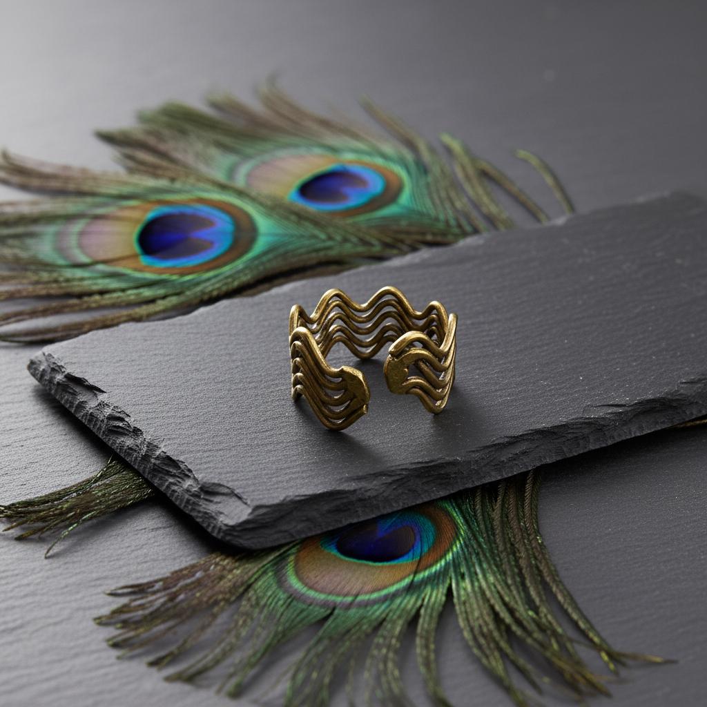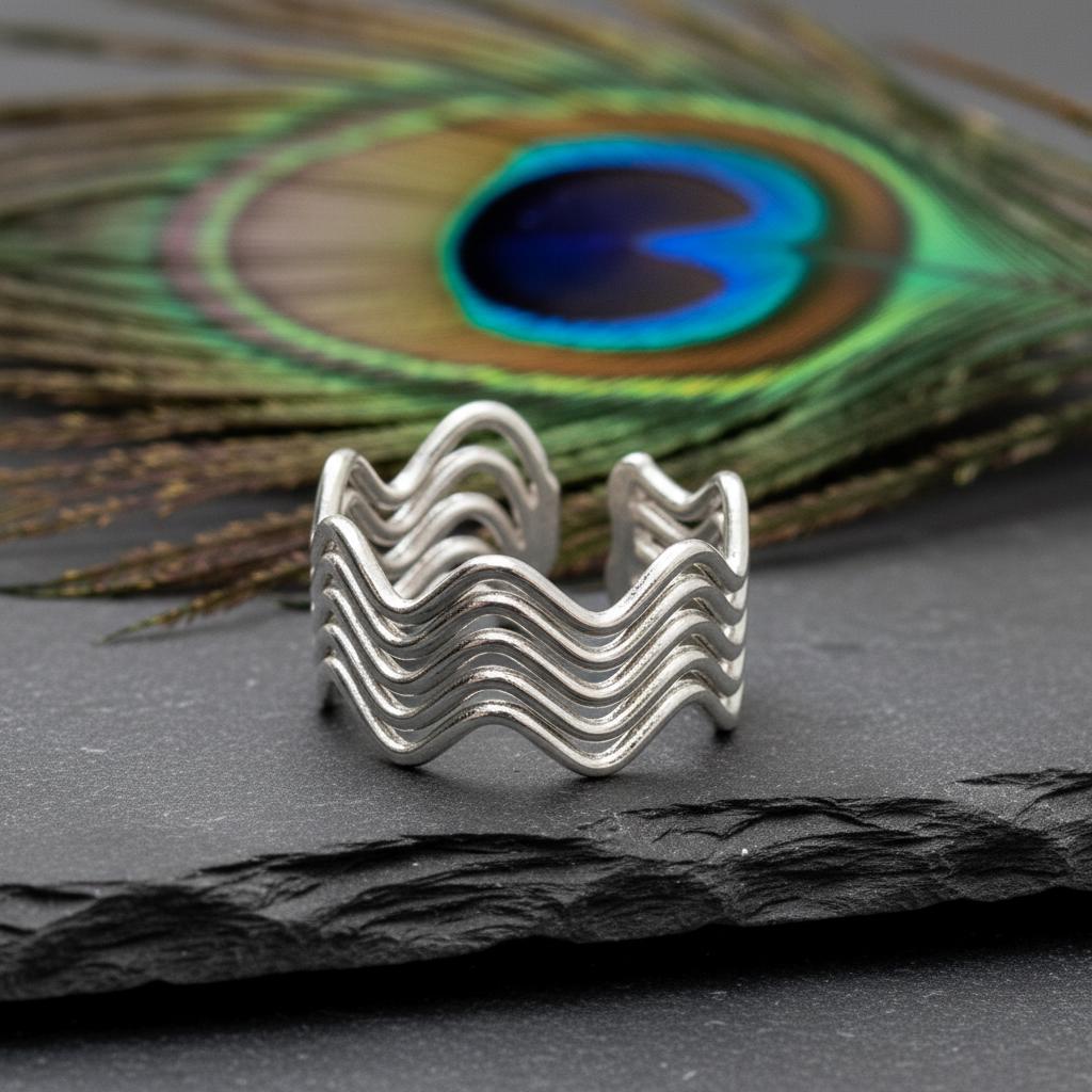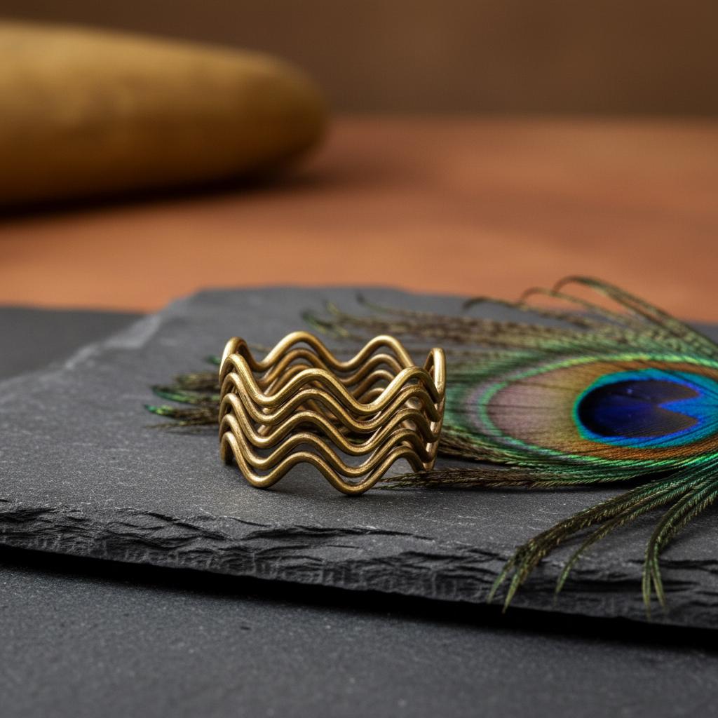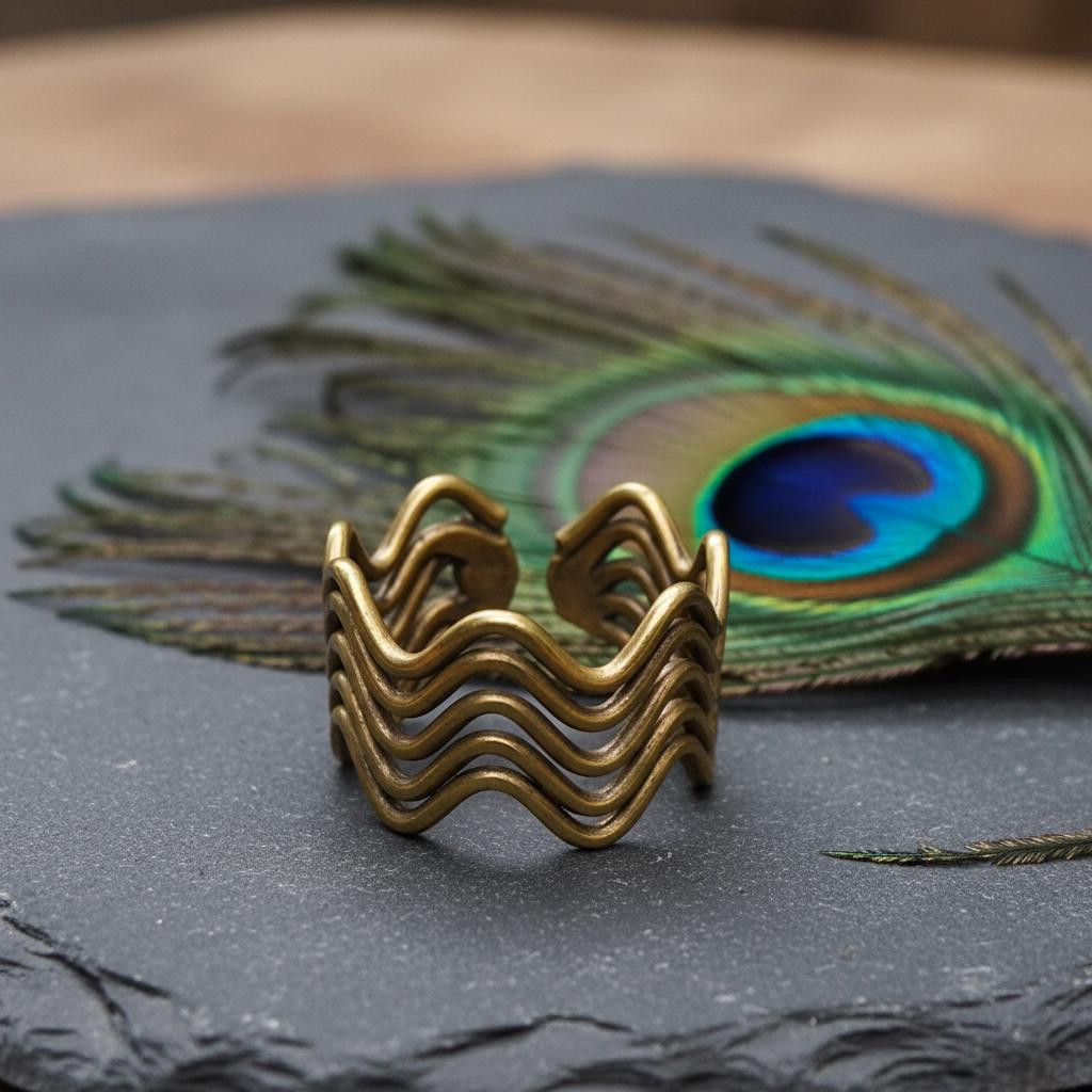 This striking adjustable brass ring features a bold geometrical zigzag pattern in a modern openwork waves design. The clean lines and minimalist aesthetic make it a versatile piece for any outfit.