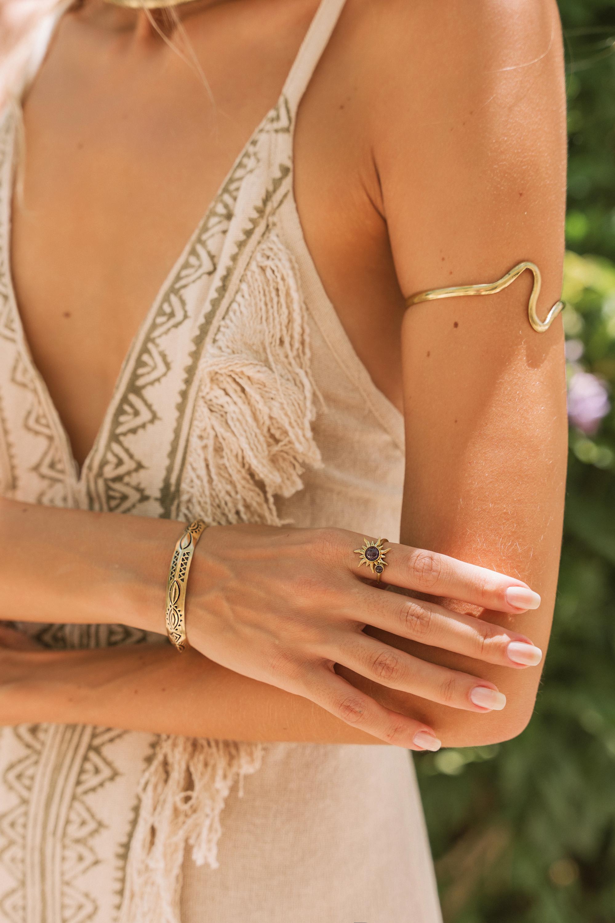 Achieve understated elegance with our Minimalist Stylized Wave Design Brass Upper Arm Bracelet.