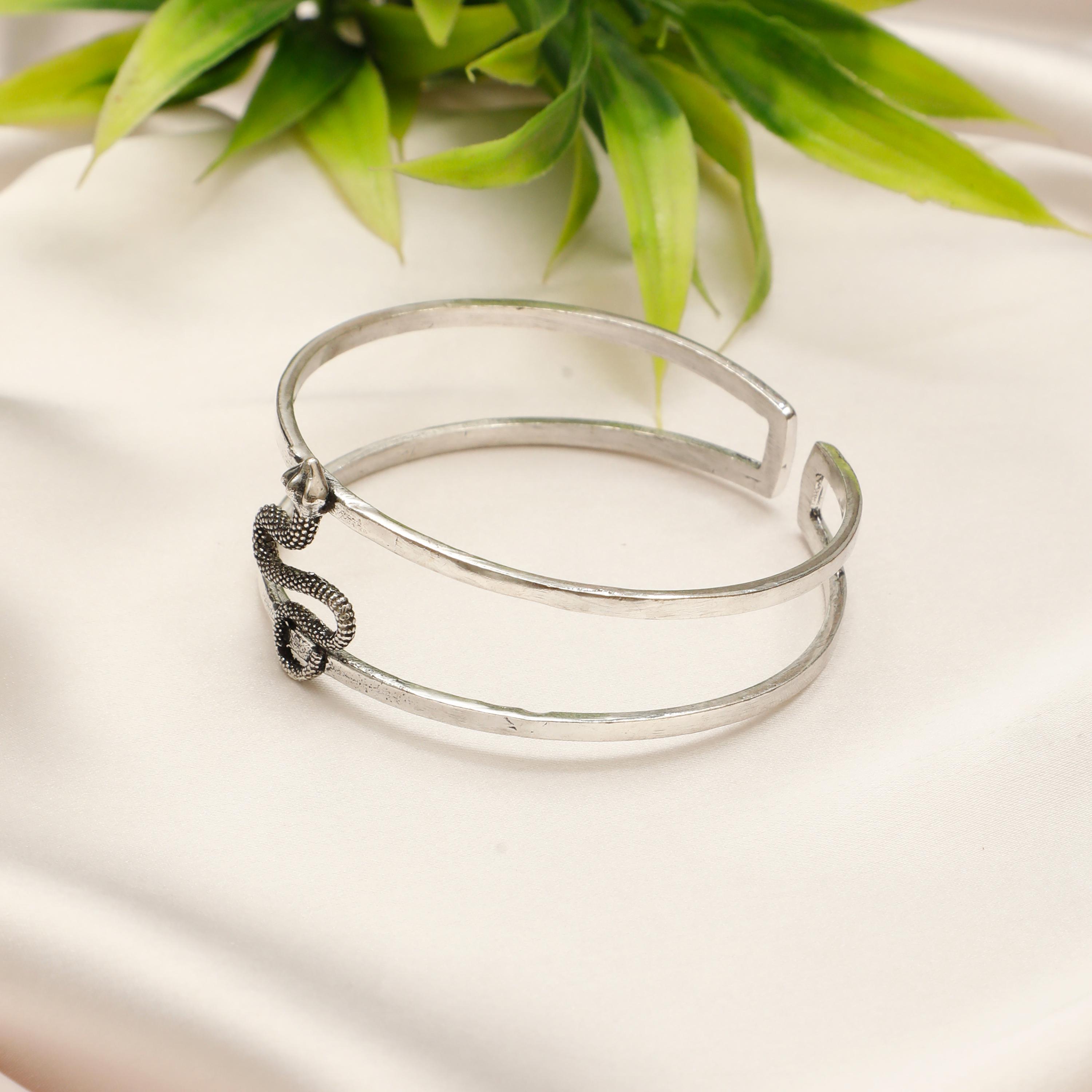 Appreciate the mystique of the serpent with this captivating cuff bracelet.