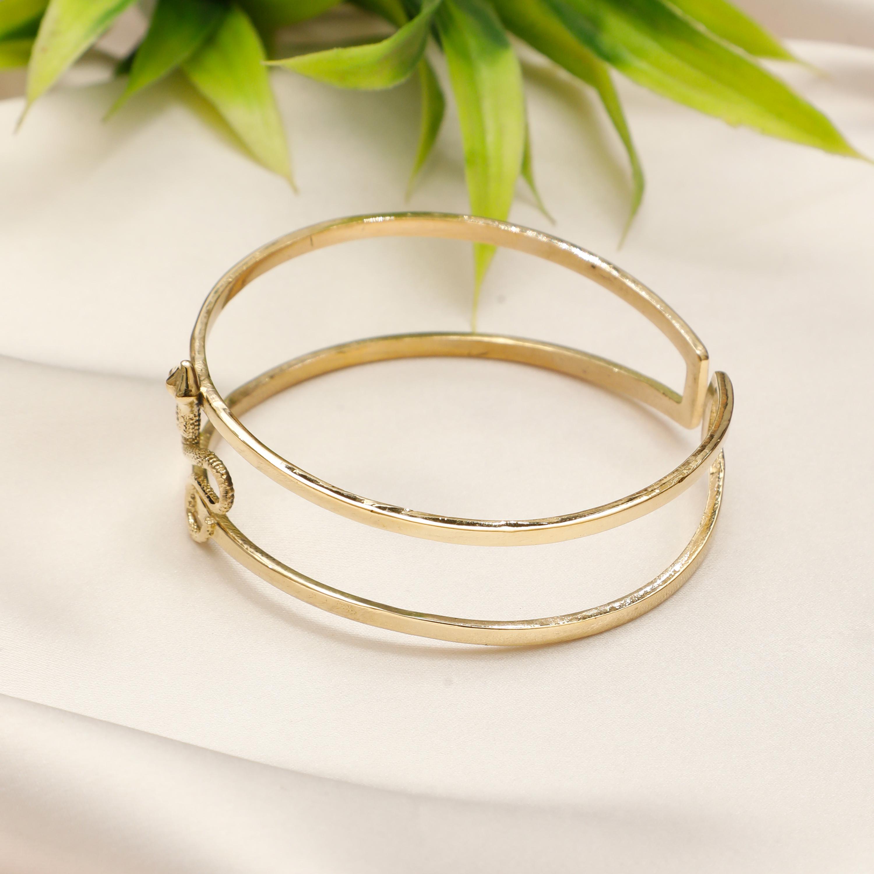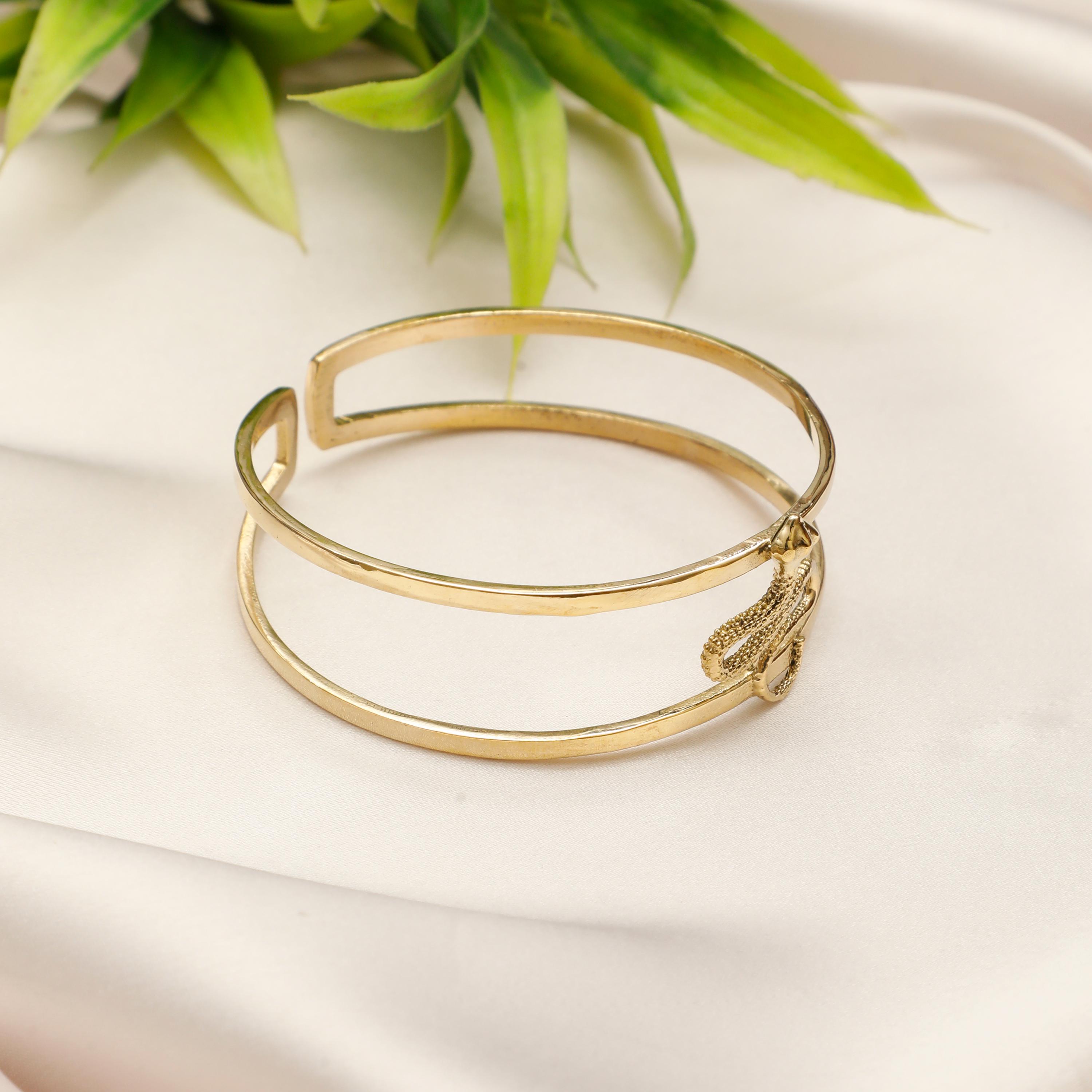 Adorn your wrist with the charm of ancient mythology. This minimalist serpentine cuff bracelet features a subtle yet striking snake motif.