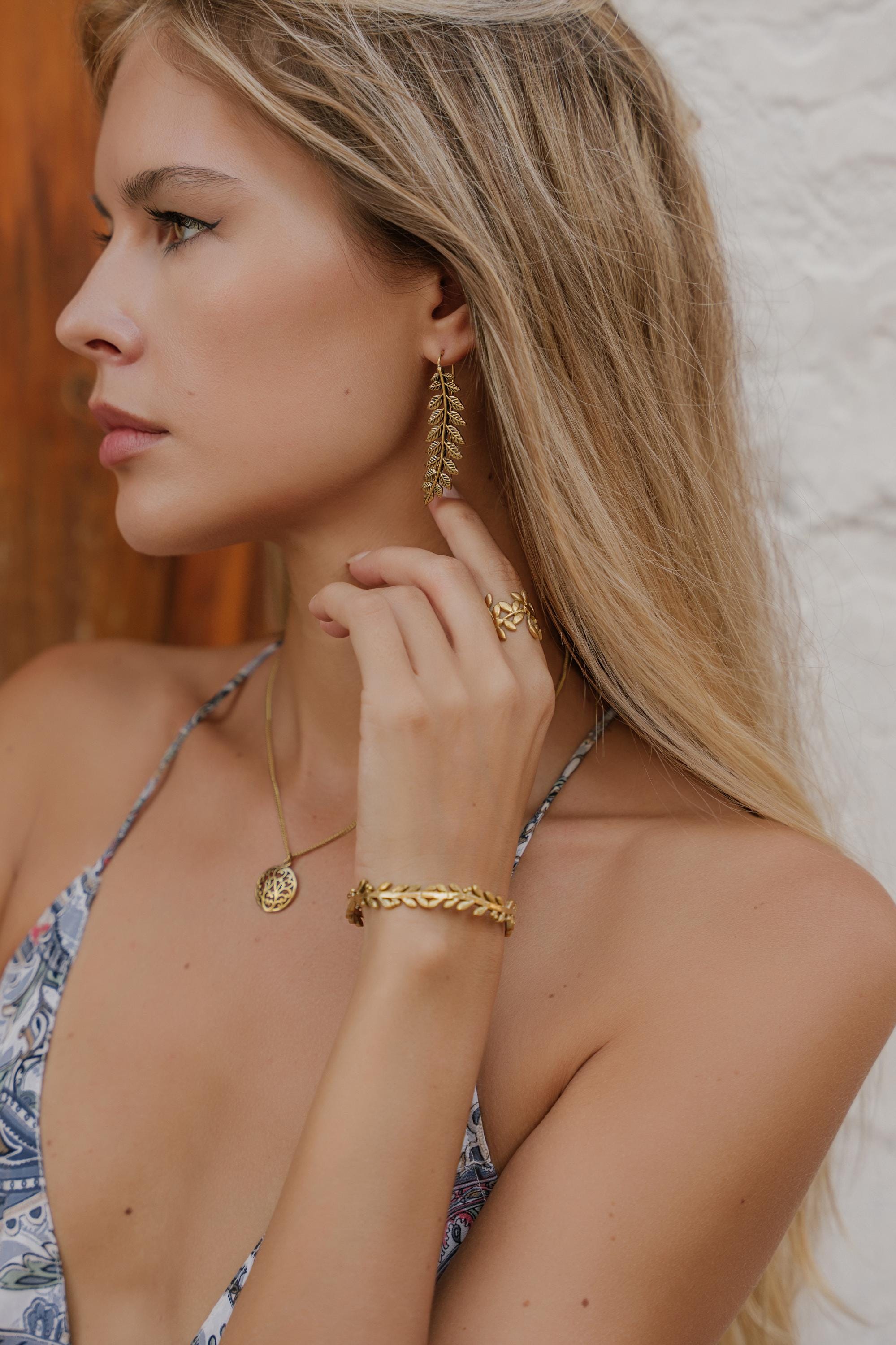 Embrace your inner bohemian with this unique and eye-catching piece. The wide band design makes a statement, while the delicate leaves add a touch of subtle elegance. Perfect for adding a touch of nature-inspired style to any outfit.