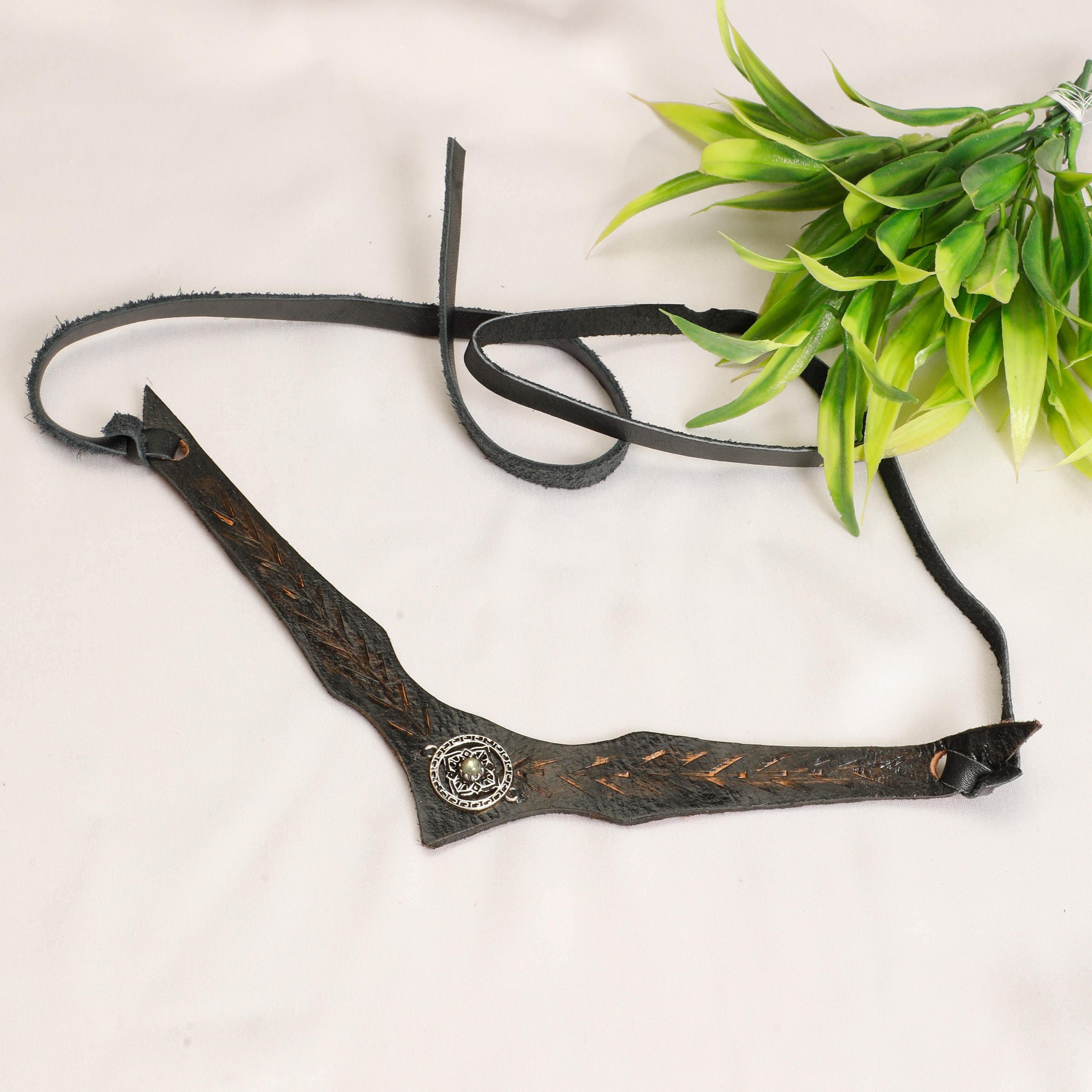 Embrace the spirit of the Norse with this exquisitely crafted leather Viking tiara. Made from supple, leather, this headband is comfortable to wear and built to last.