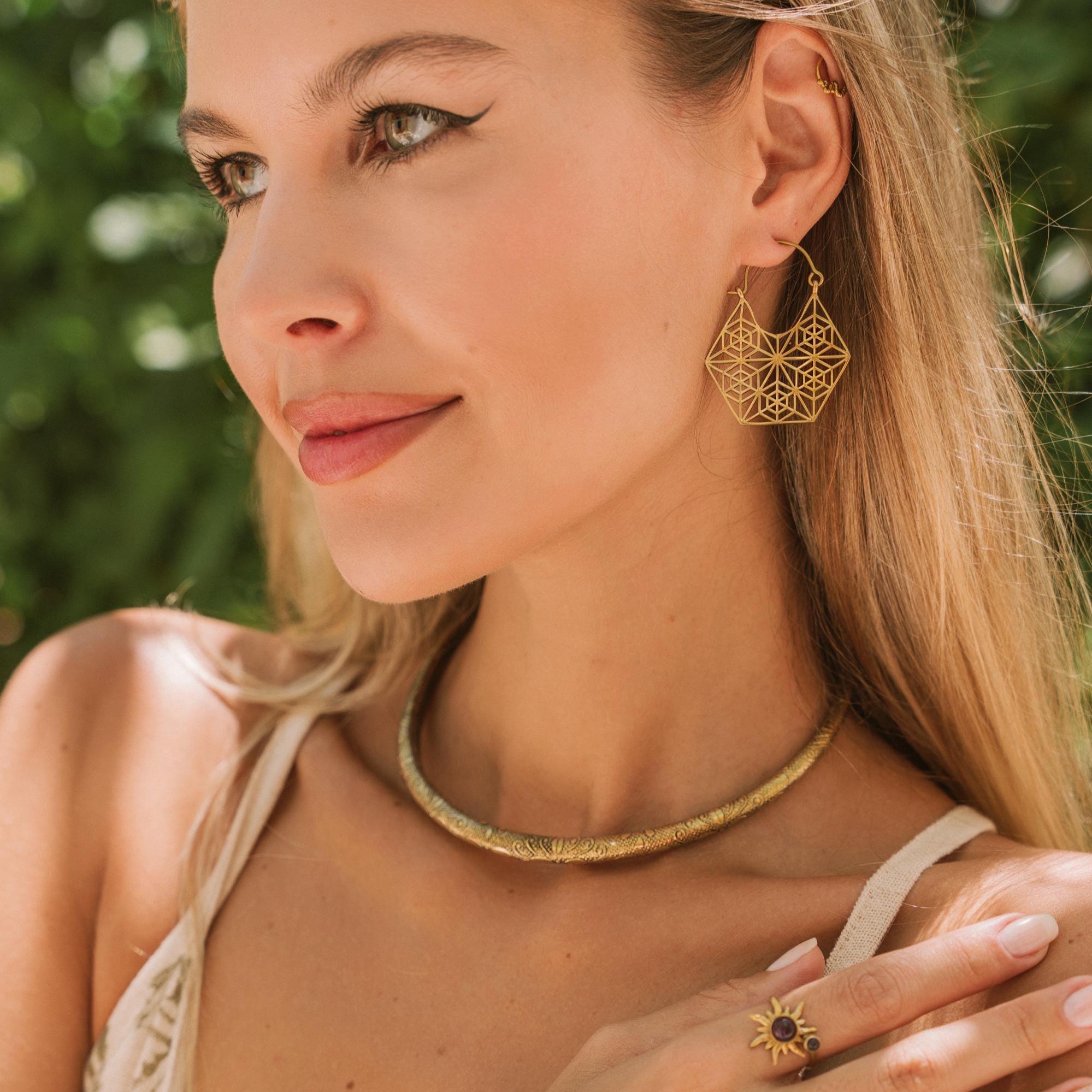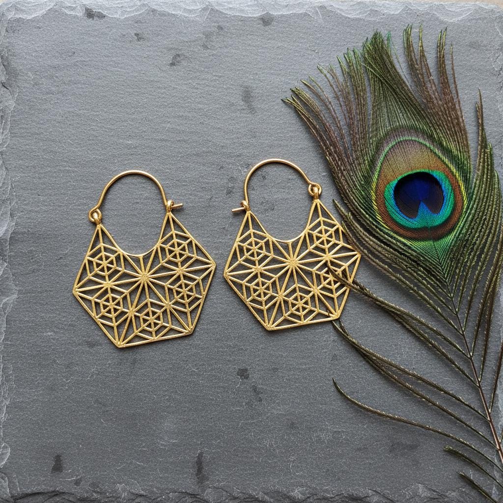 These brass earrings are ideal for those drawn to sacred geometry symbolism, mindful fashion, and artisan-inspired jewelry, offering a timeless design that transcends trends.