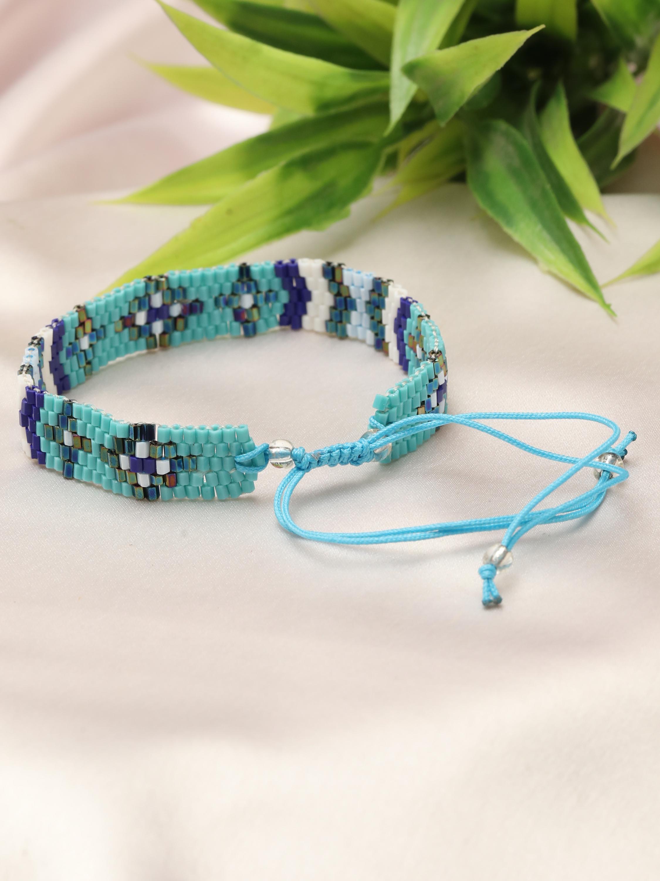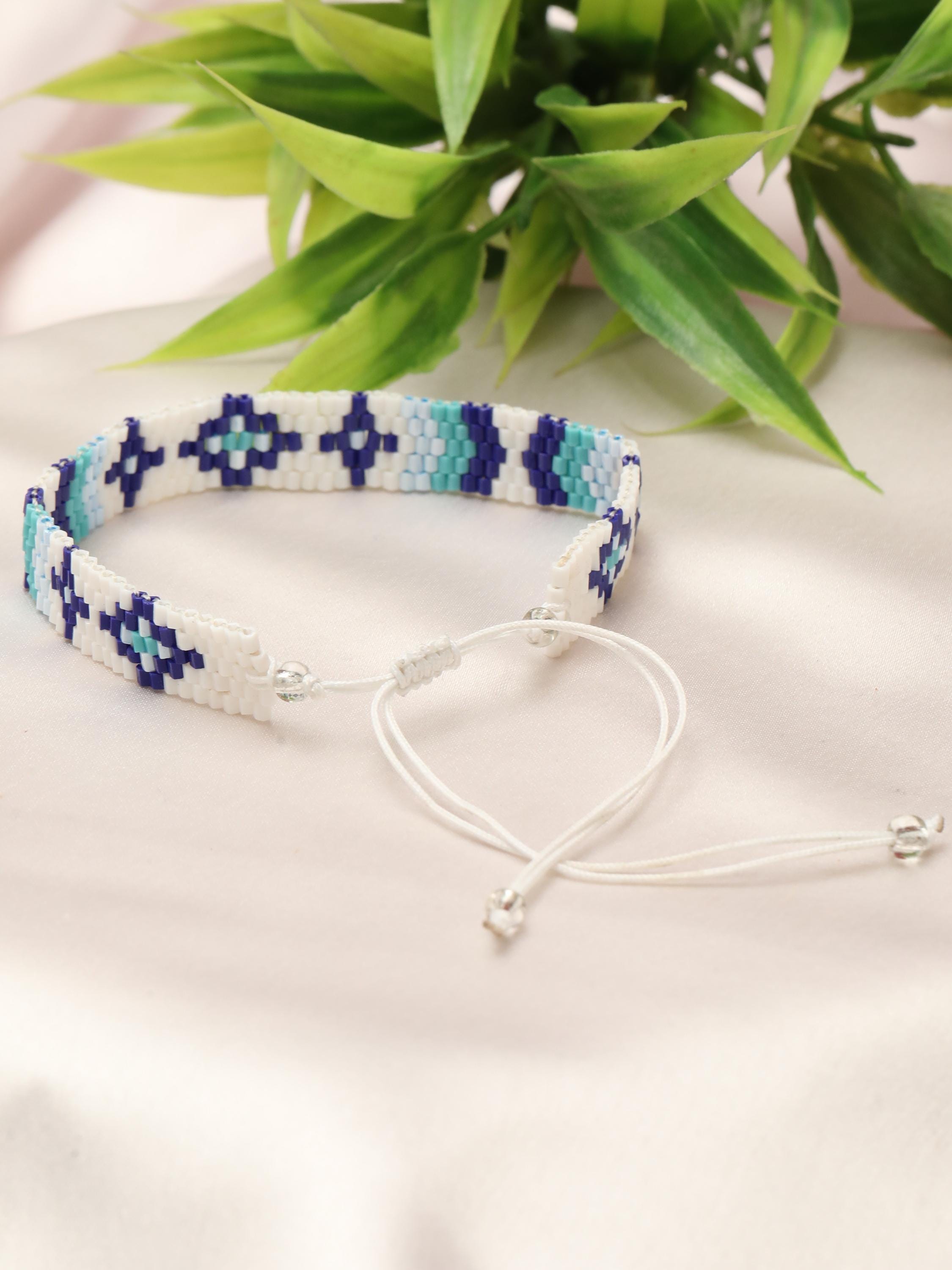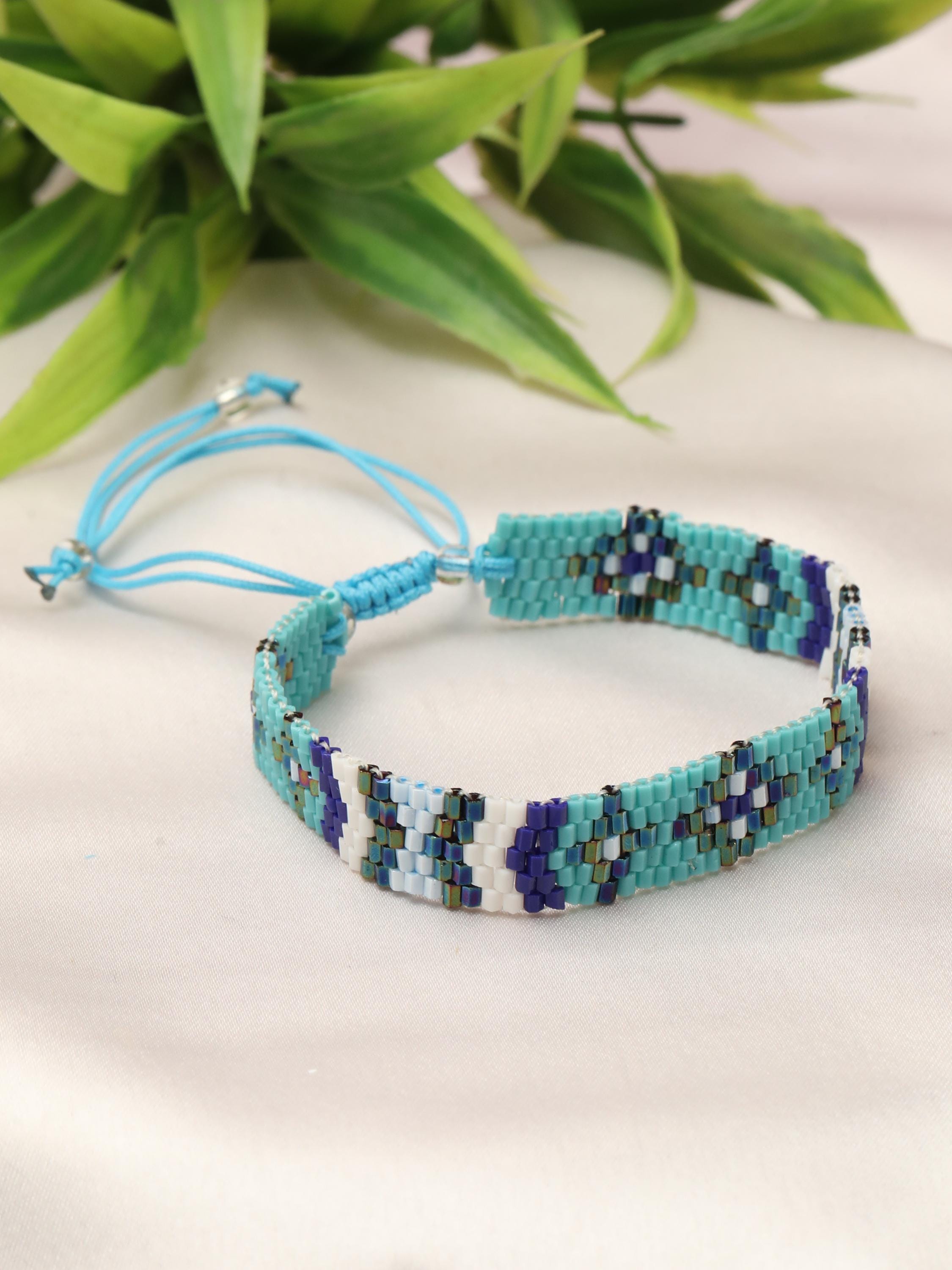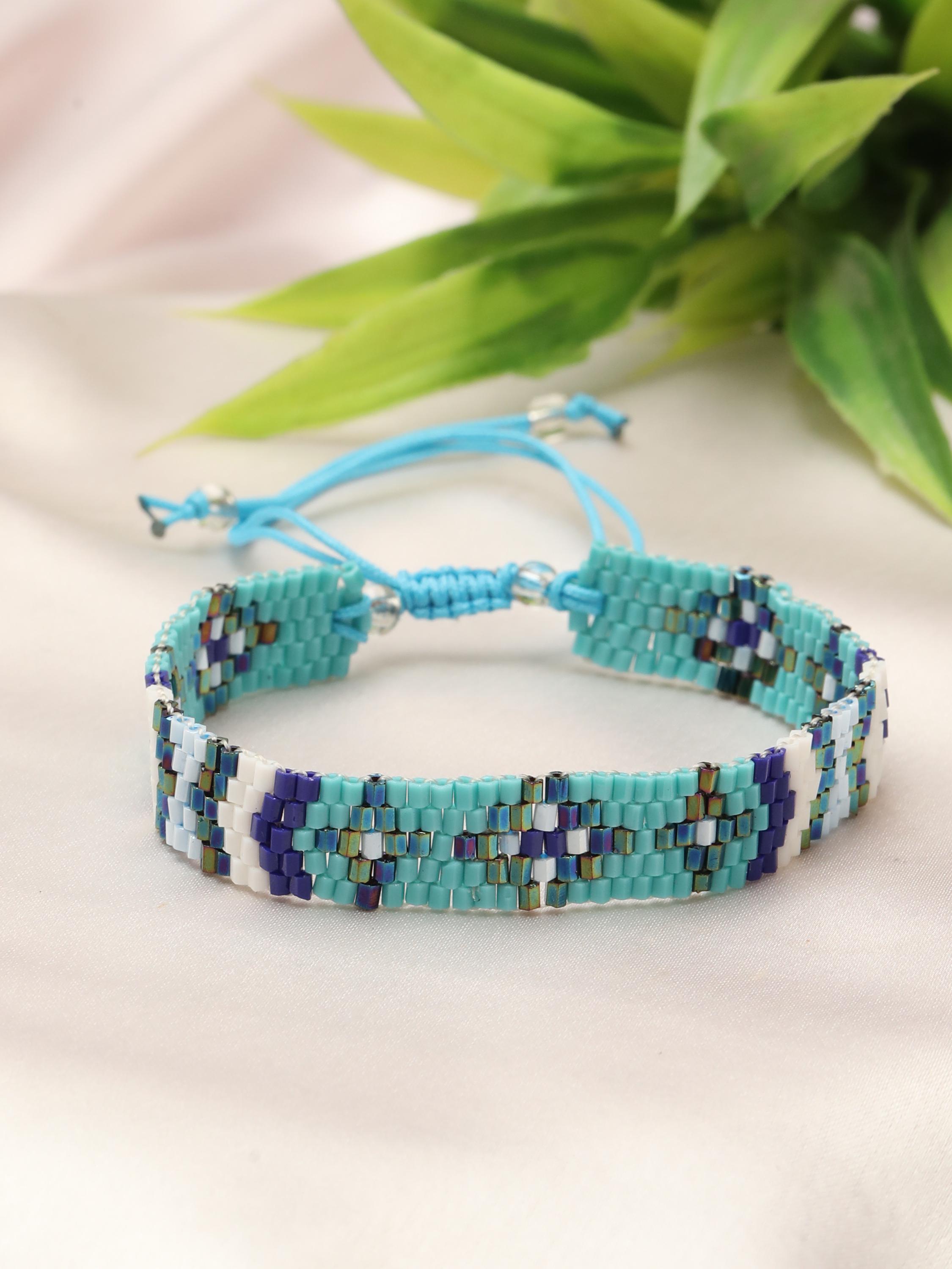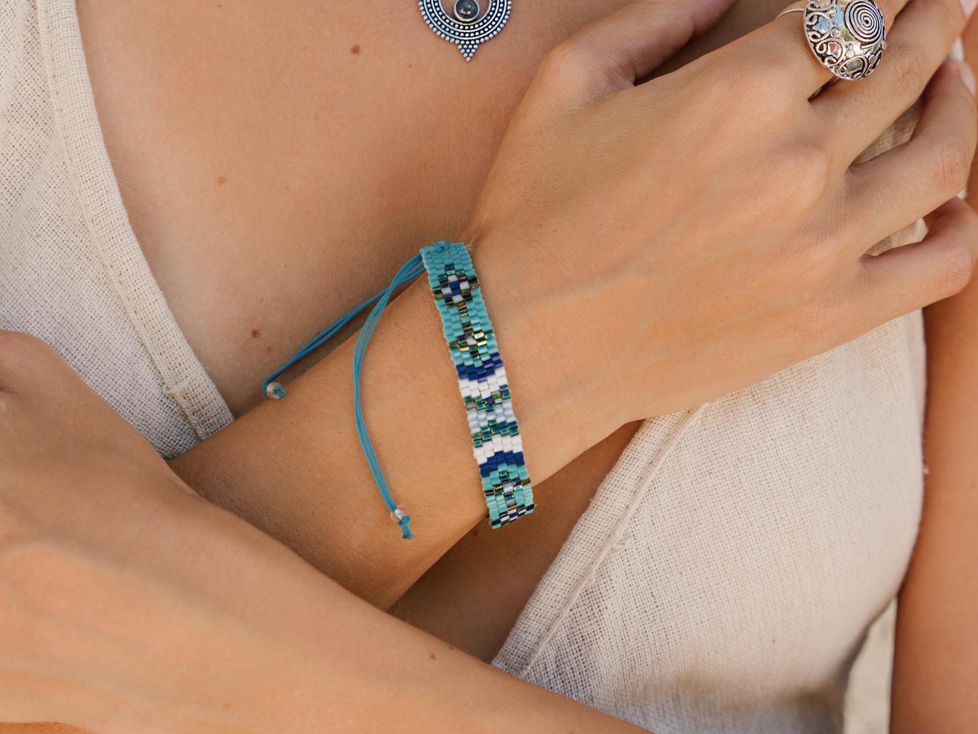 This adjustable woven bracelet is a refined statement piece designed for everyday comfort and timeless style. Carefully crafted with detailed beadwork, it blends boho, ethnic, and tribal influences into a versatile accessory.
