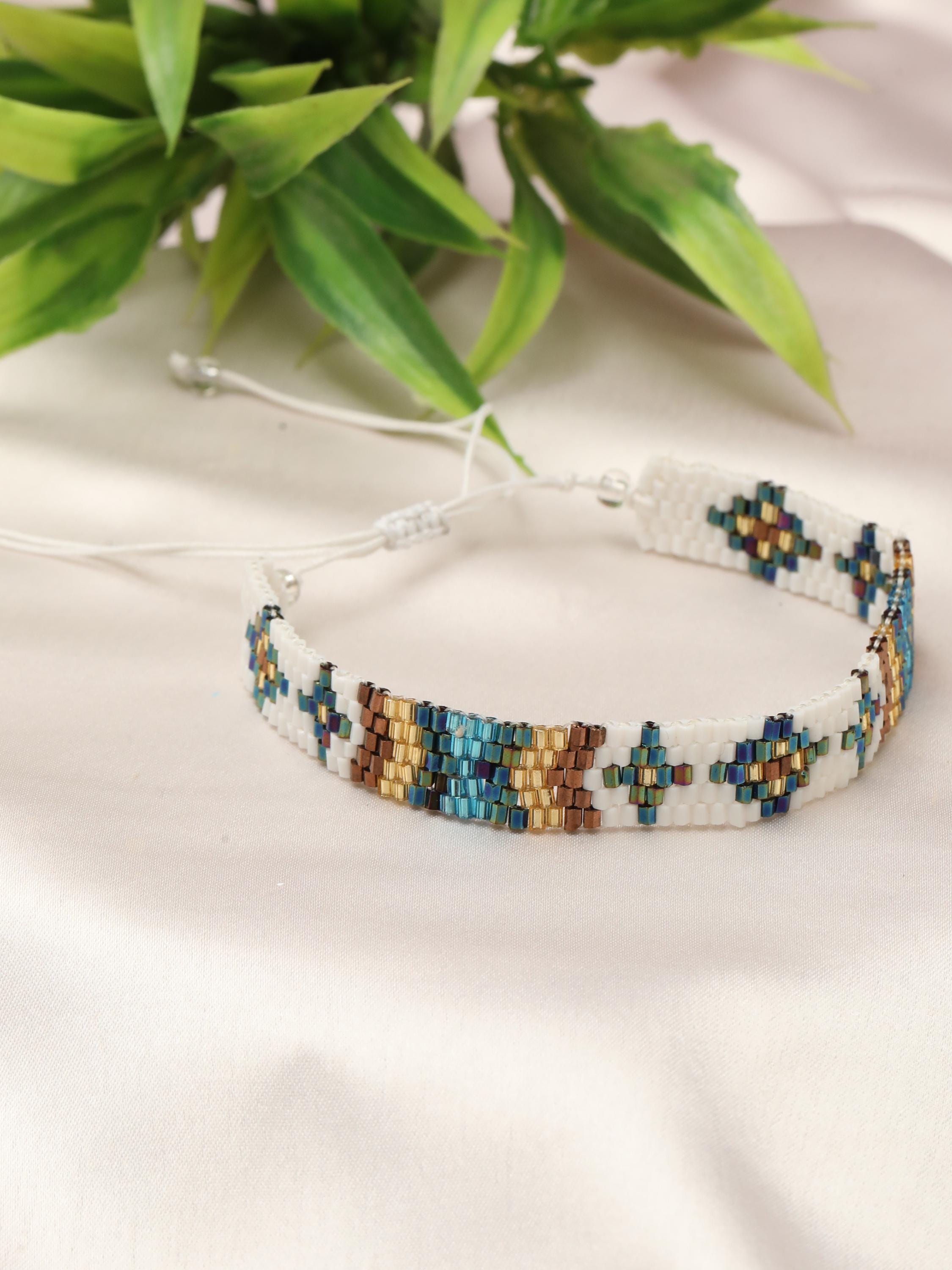Discover the intricate beauty of our Handwoven Geometric Miyuki Bead Bracelet.