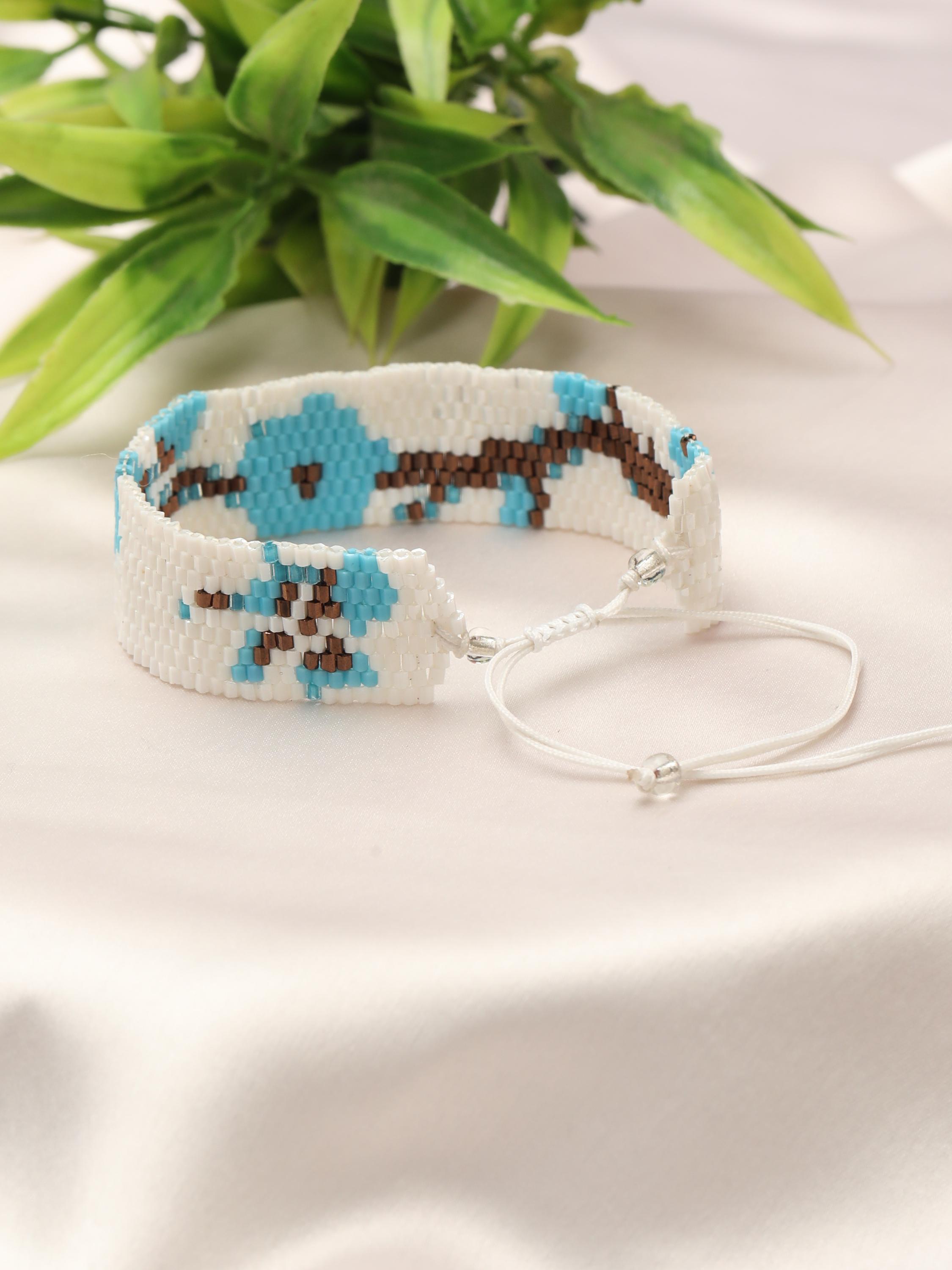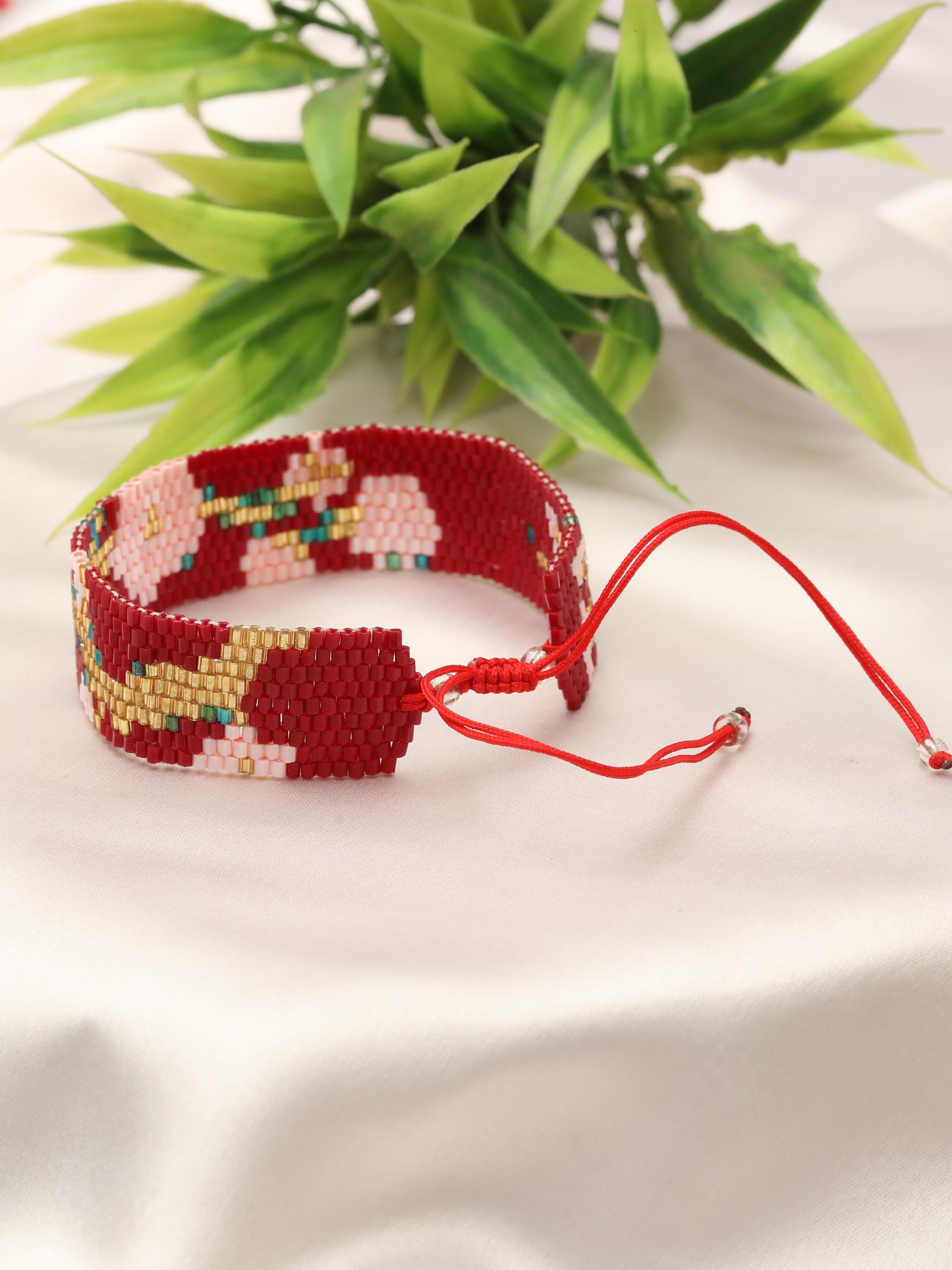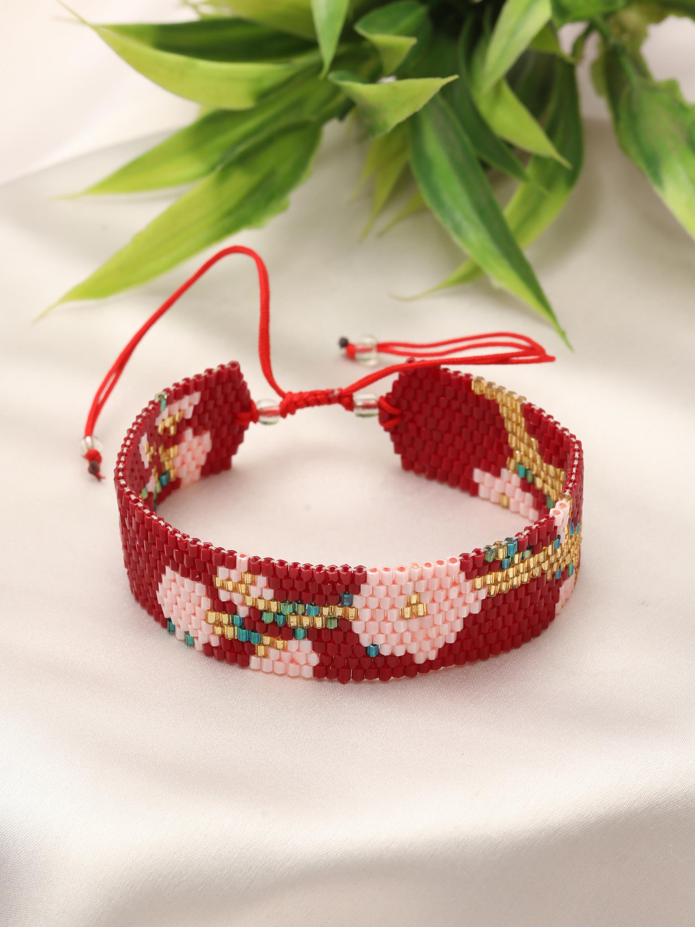 Celebrate the ephemeral beauty of spring with this exquisite Sakura Flower Woven Seed Bead Bracelet.
