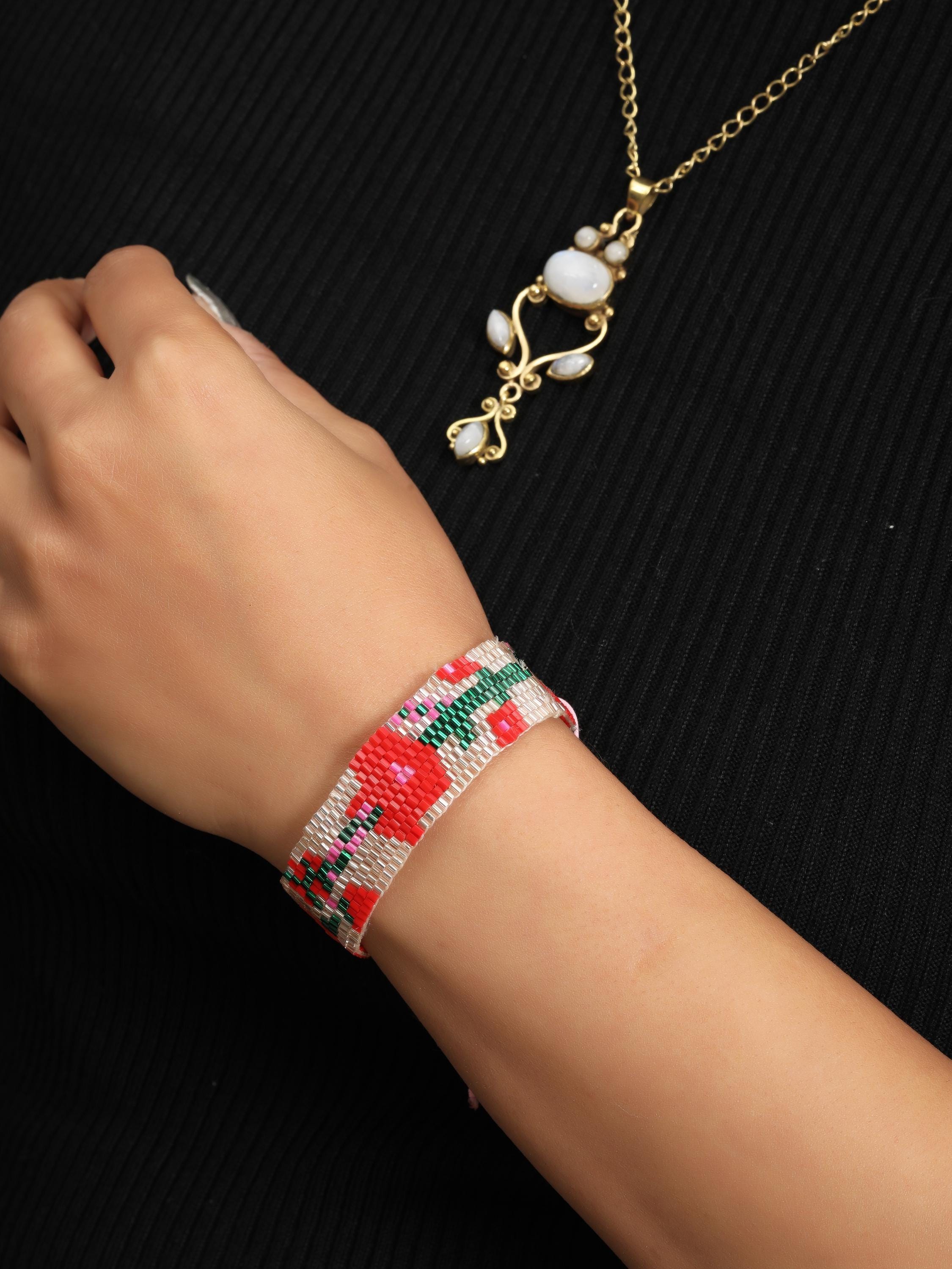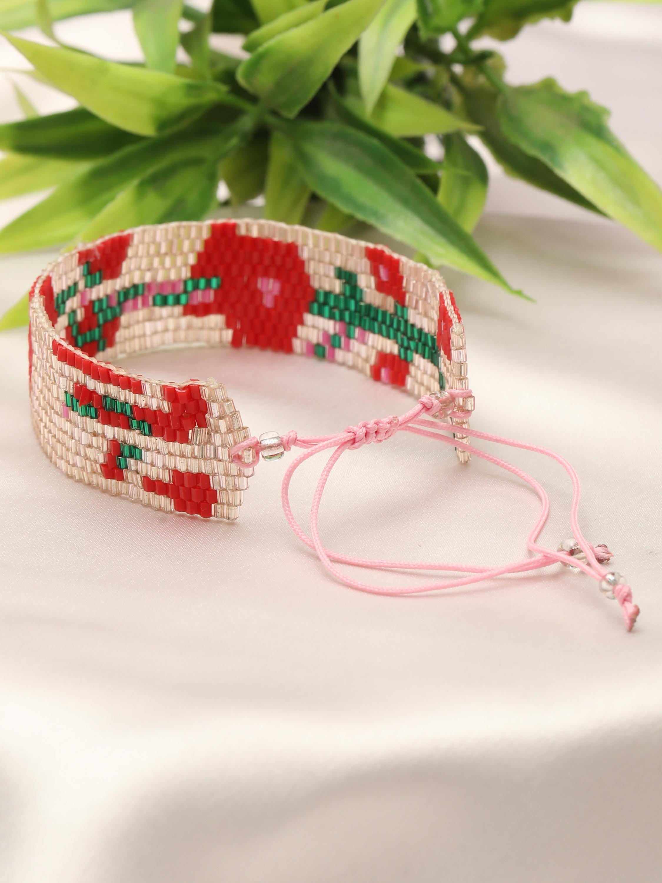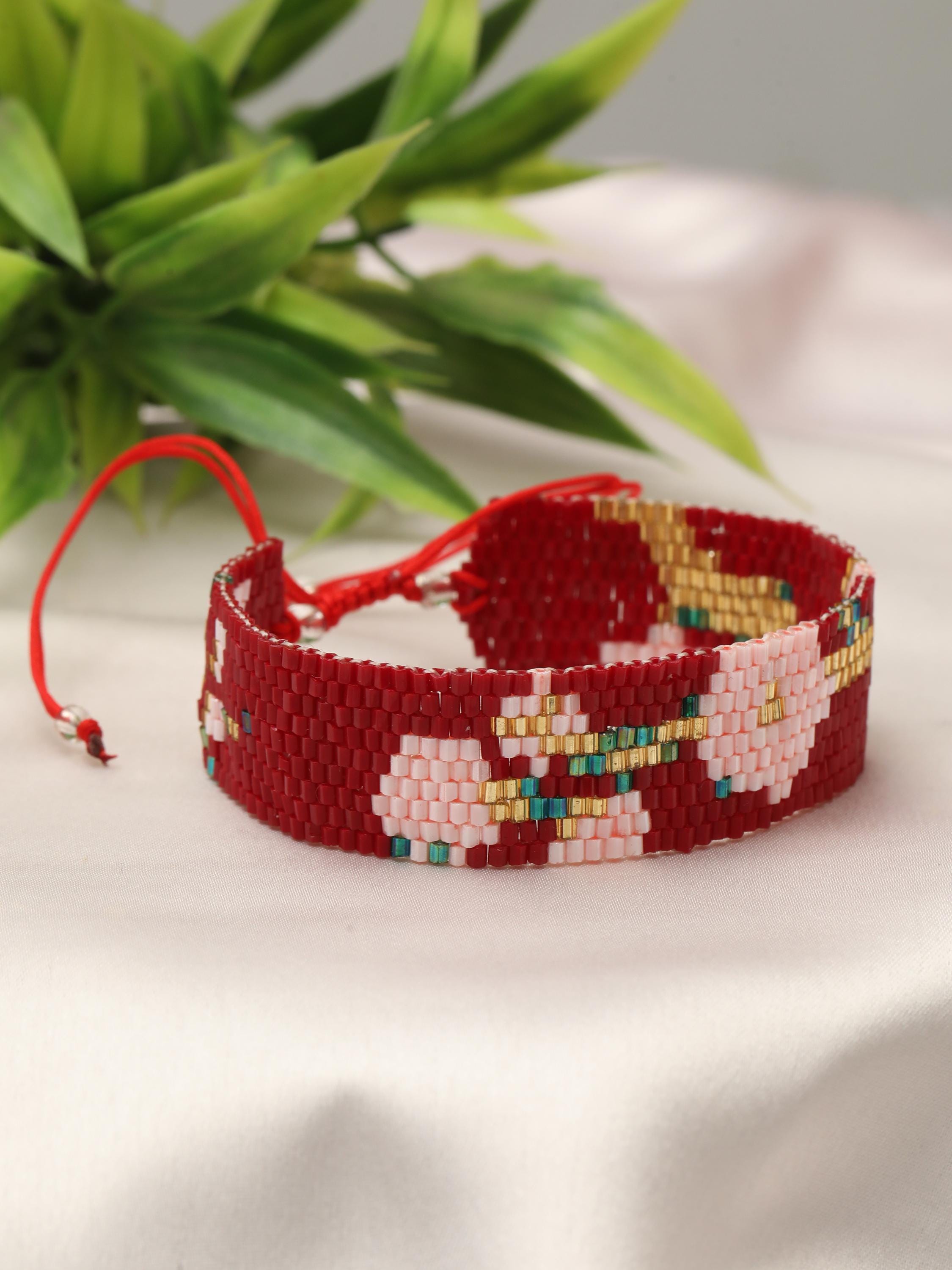 Celebrate the ephemeral beauty of spring with this exquisite Sakura Flower Woven Seed Bead Bracelet.