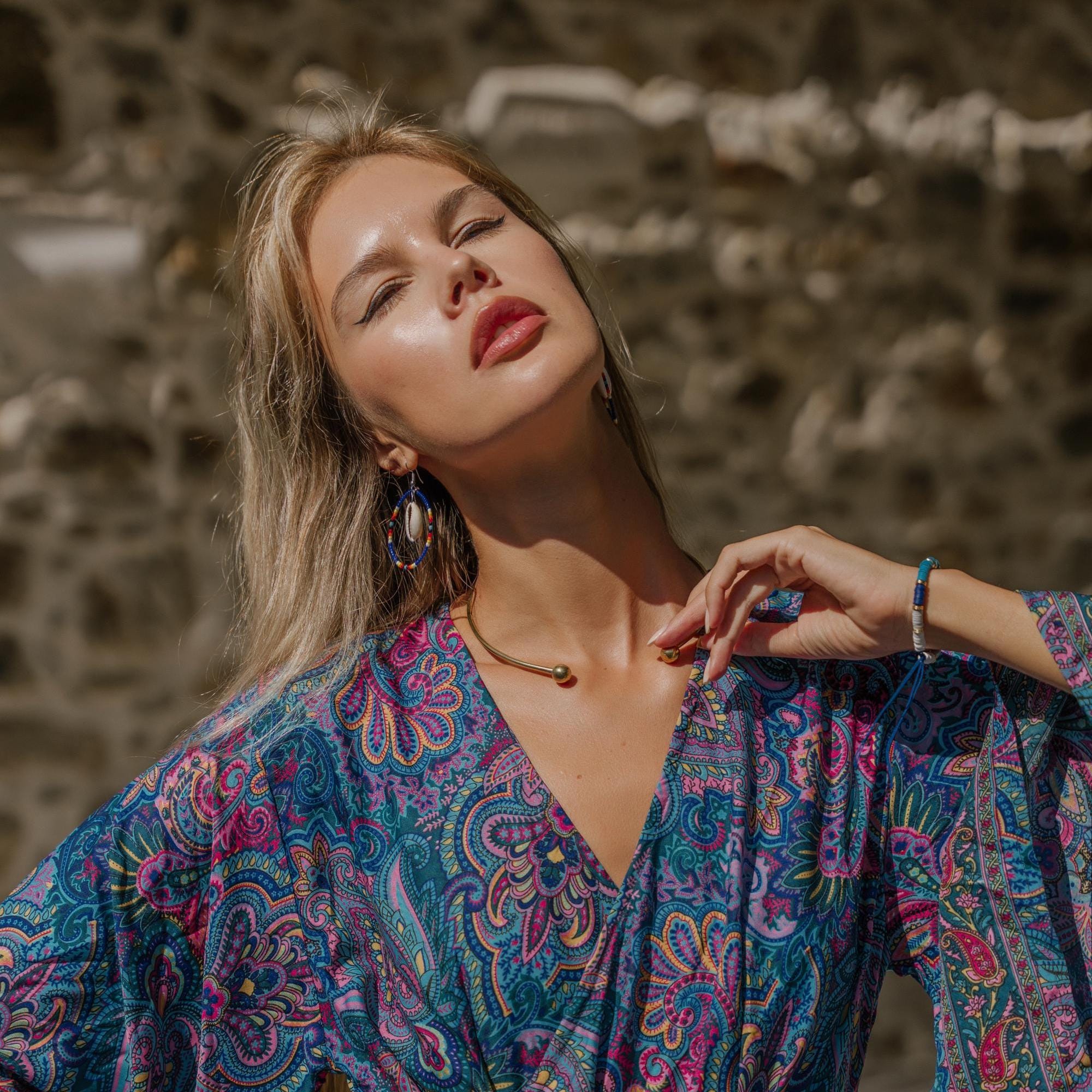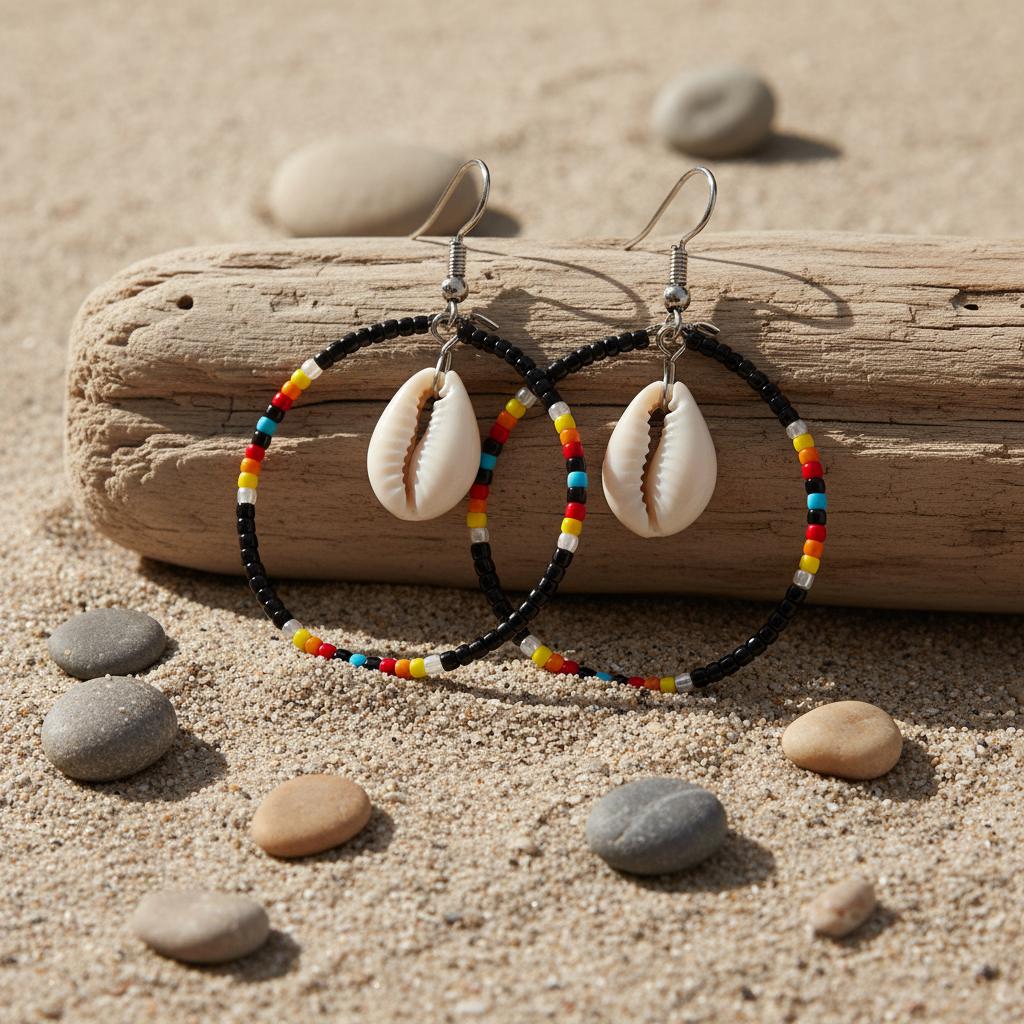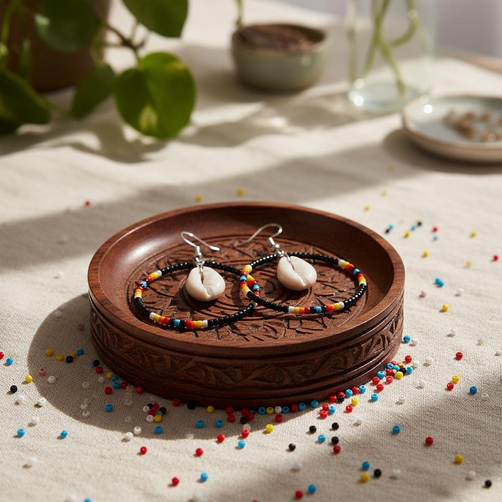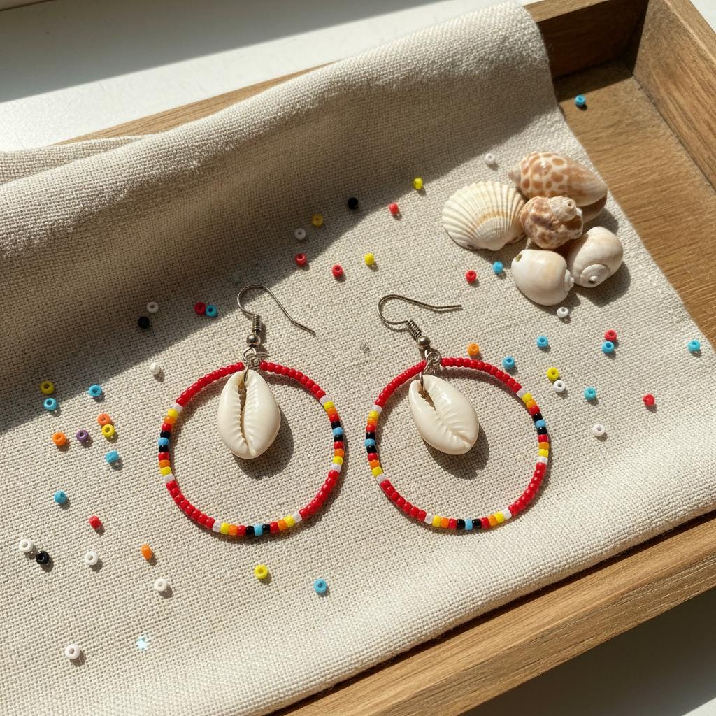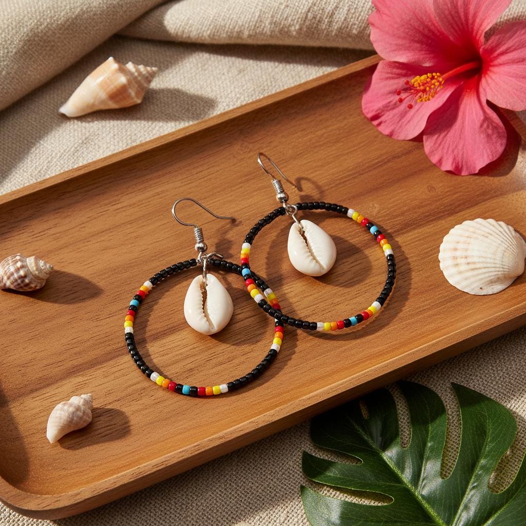 Add a touch of vibrant, free-spirited style to your accessory collection with these stunning Boho beaded dangling earrings. Handcrafted with a mix of colorful beads in shades, these earrings are designed to make a statement. At the heart of each earring is a beautiful cowrie shell, symbolizing protection and prosperity, hanging delicately at the center. Cowrie shell has long been worn as a talisman of abundance, femininity, and energy. These earrings combine ethnic symbolism with bold bohemian style.