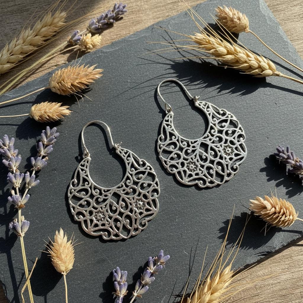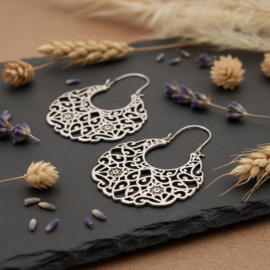 These earrings pair beautifully with flowing fabrics, earthy tones, and layered boho jewelry.
