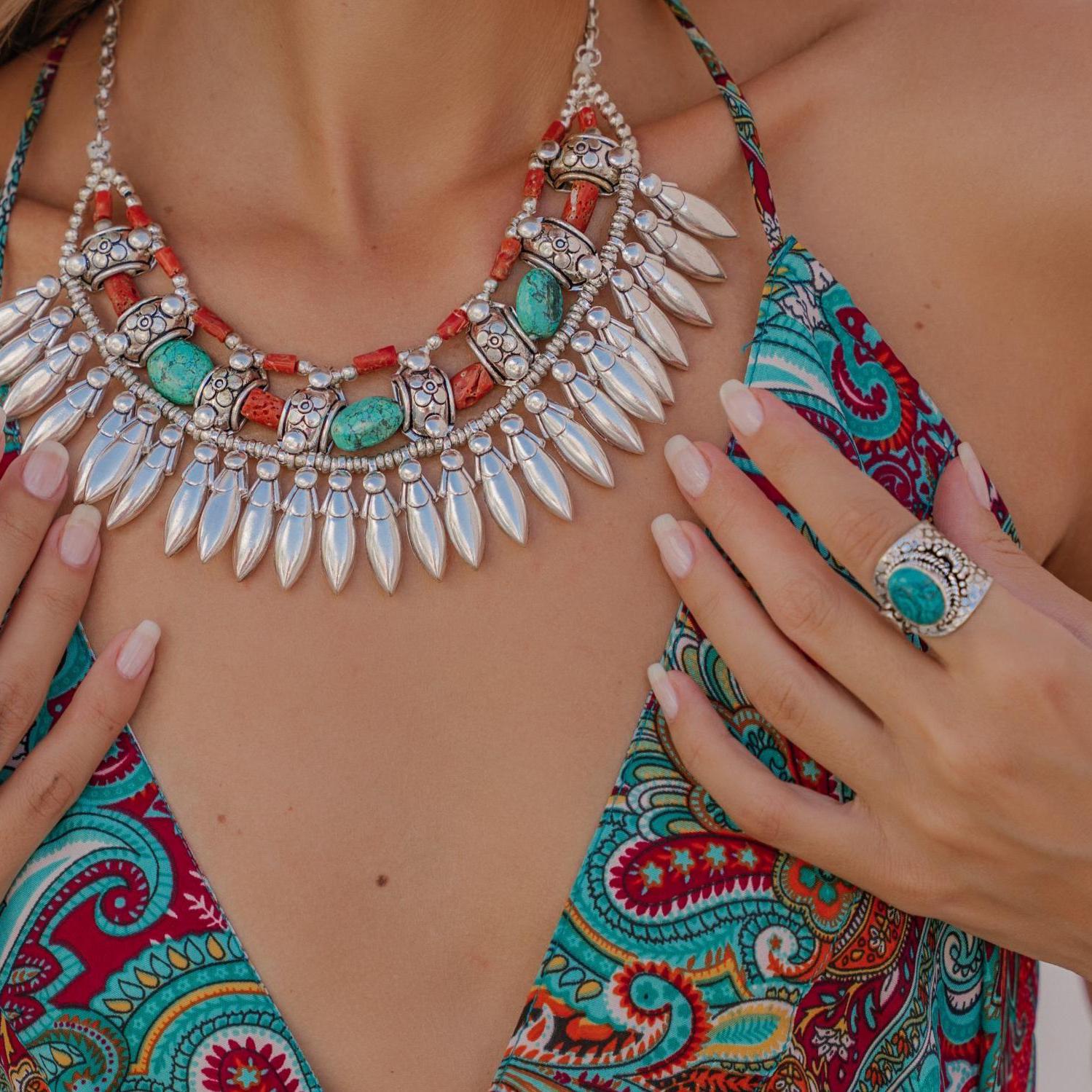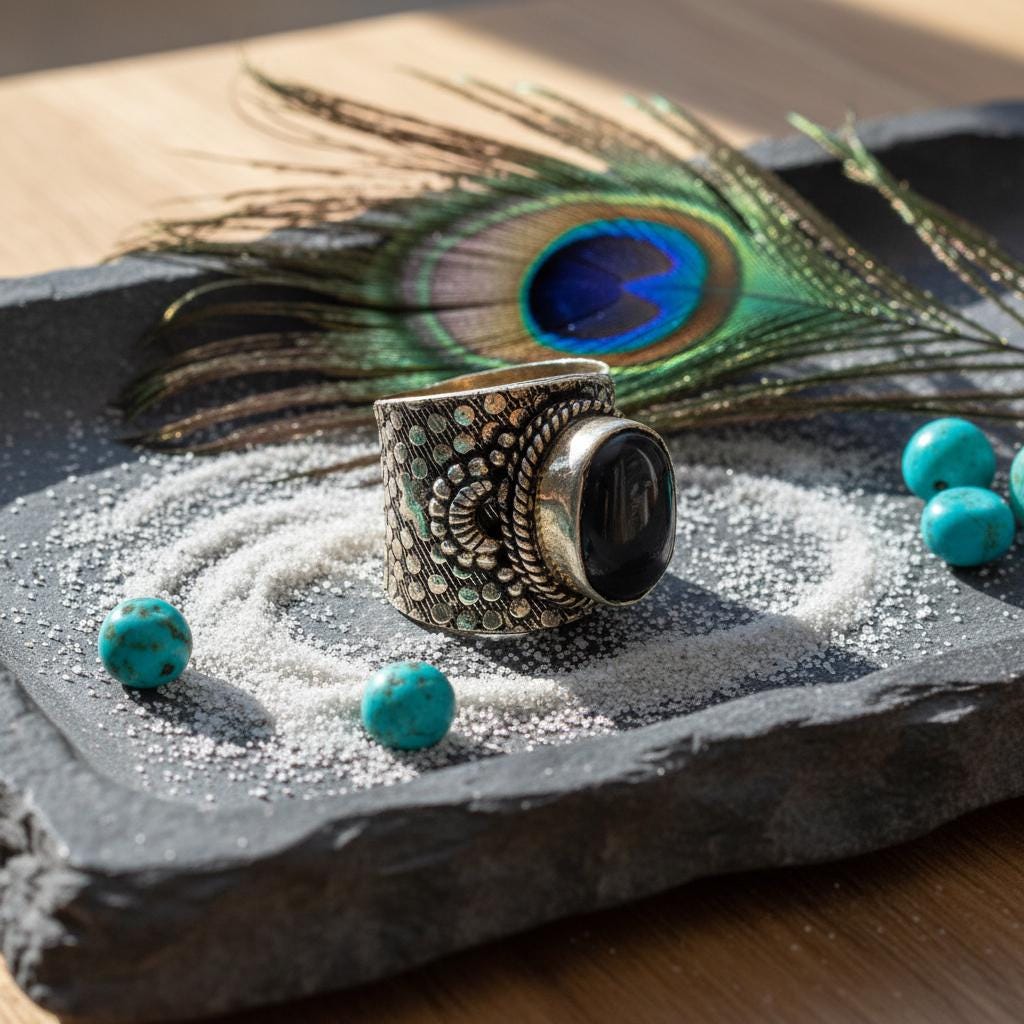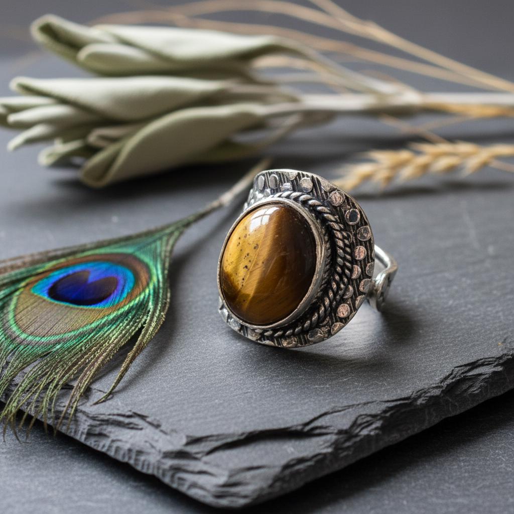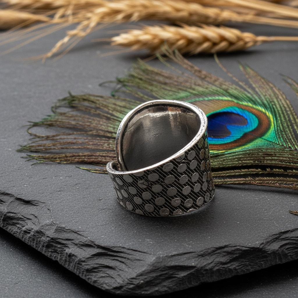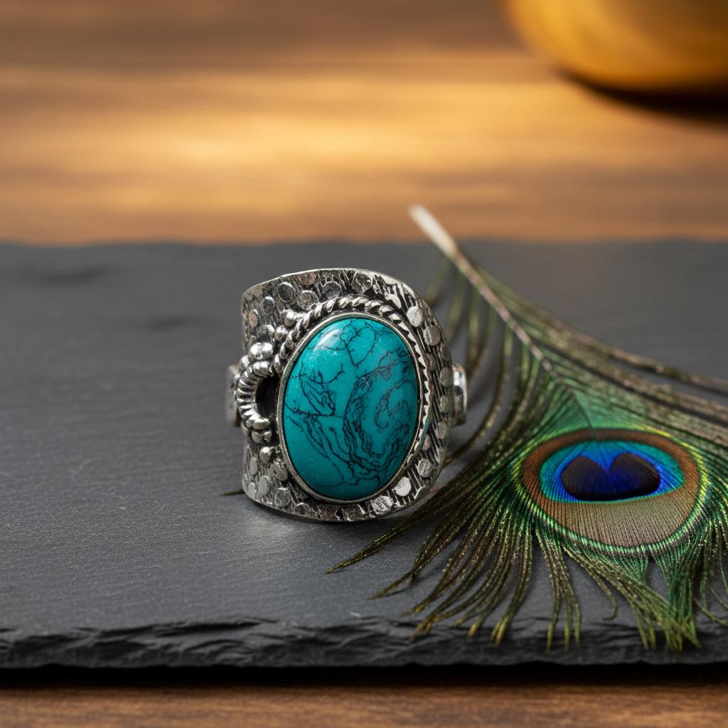 Add a bold boho touch to your look with this bohemian ethnic adjustable ring, crafted in silver tone brass and set with a gemstone. The detailed textured band and bezel setting give this ring a timeless tribal feel, perfect for lovers of ethnic, boho, and statement jewelry.