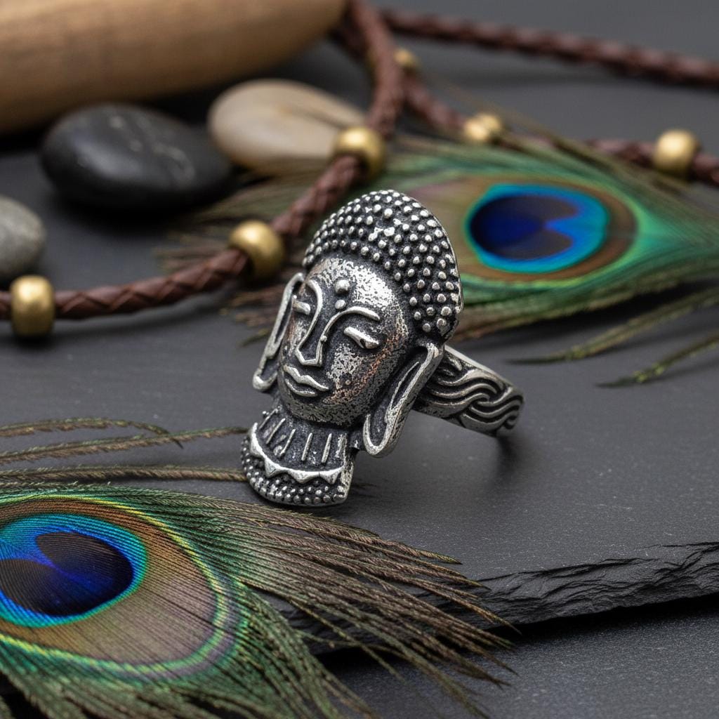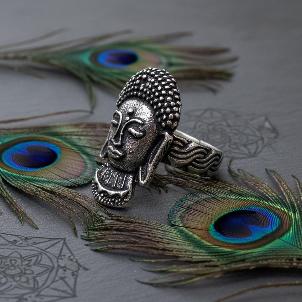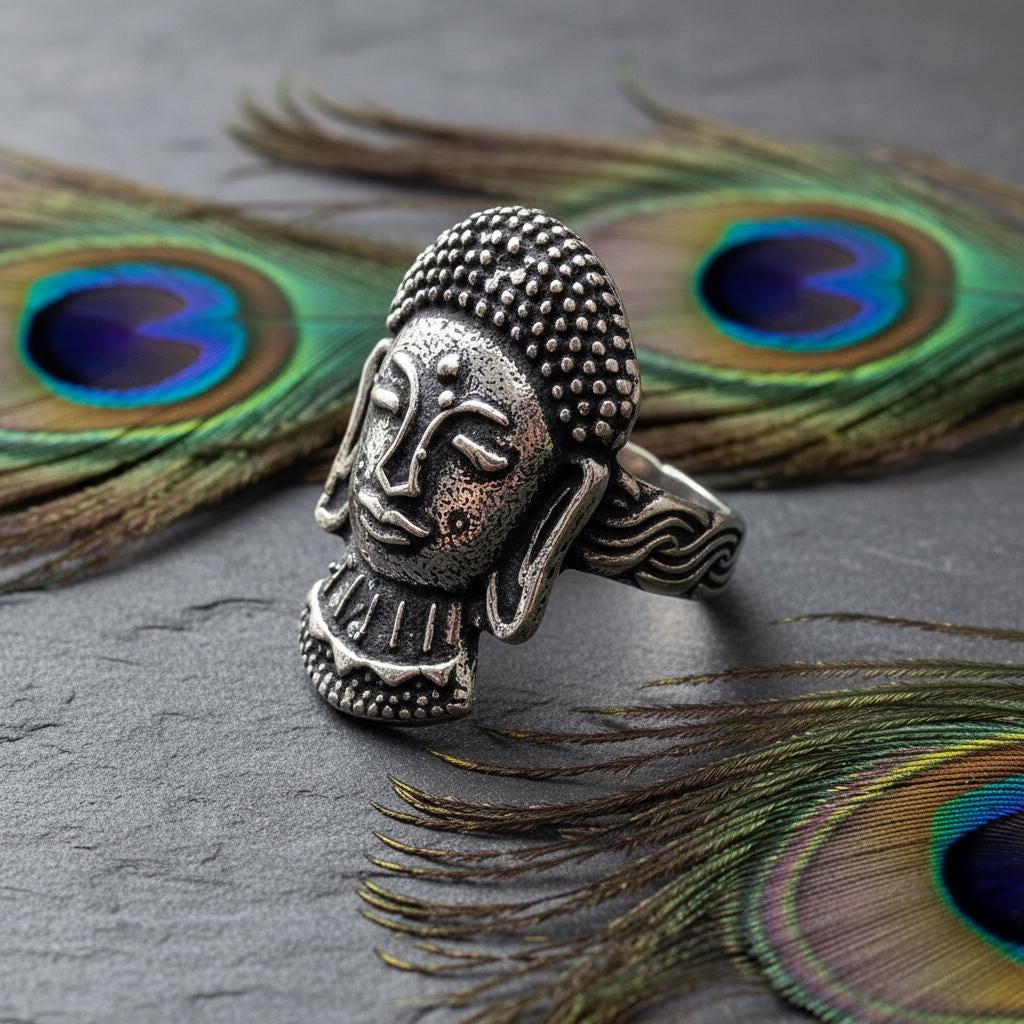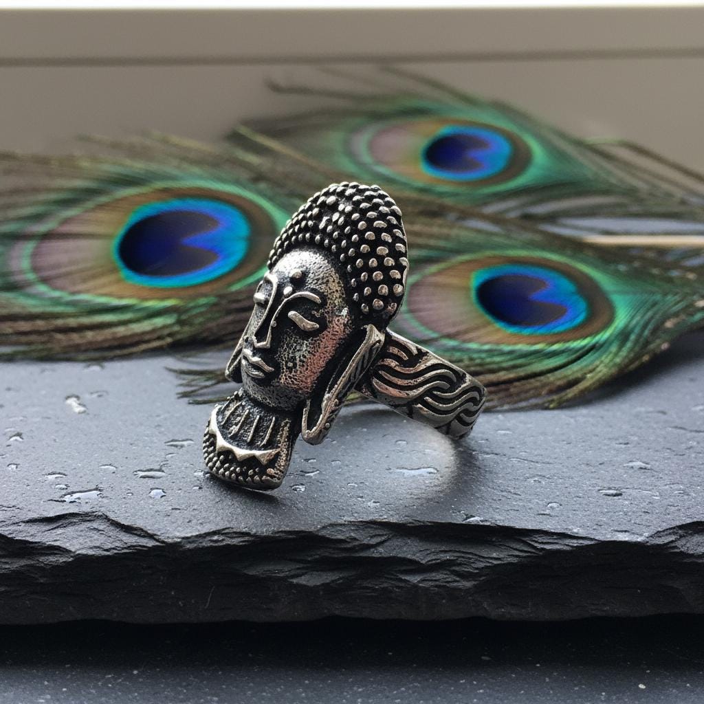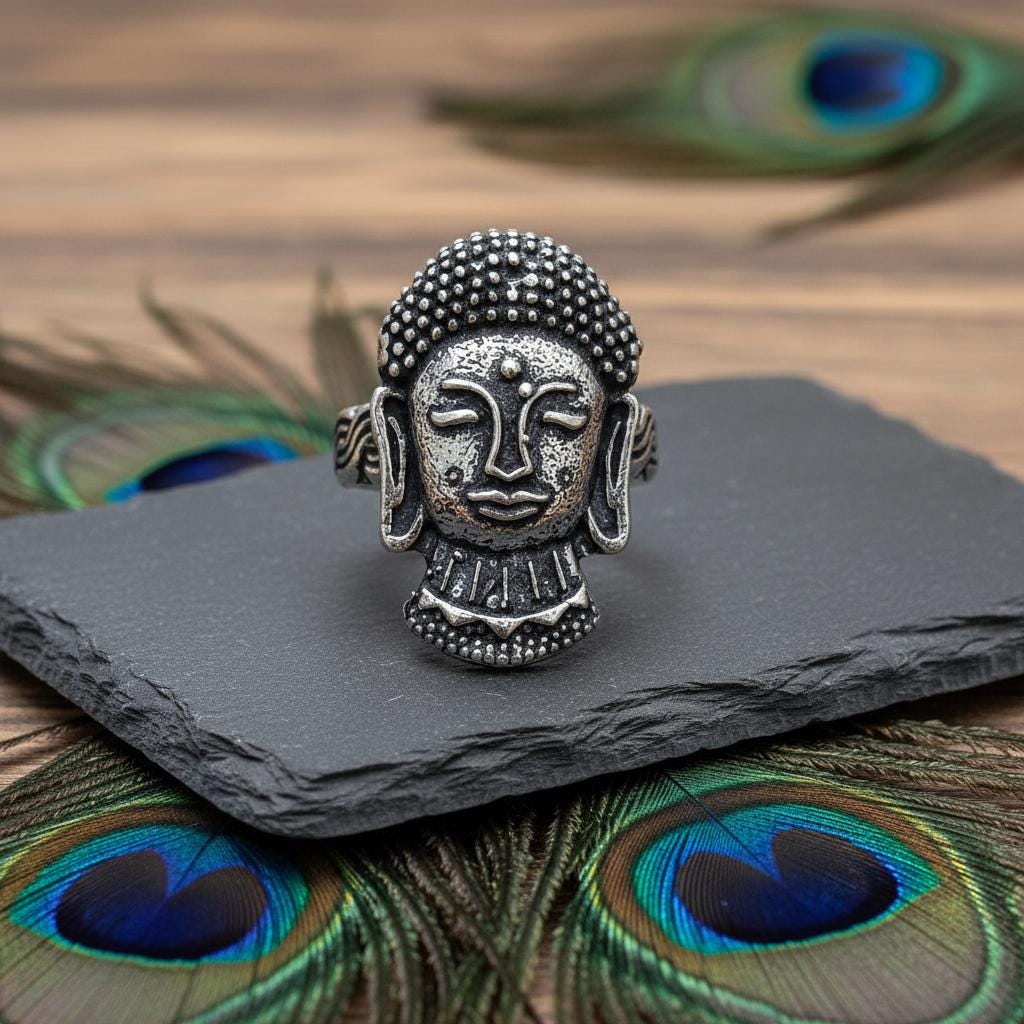 The detailed Buddha head design reflects inner peace, mindfulness, and cultural heritage, making this ring both meaningful and eye-catching.