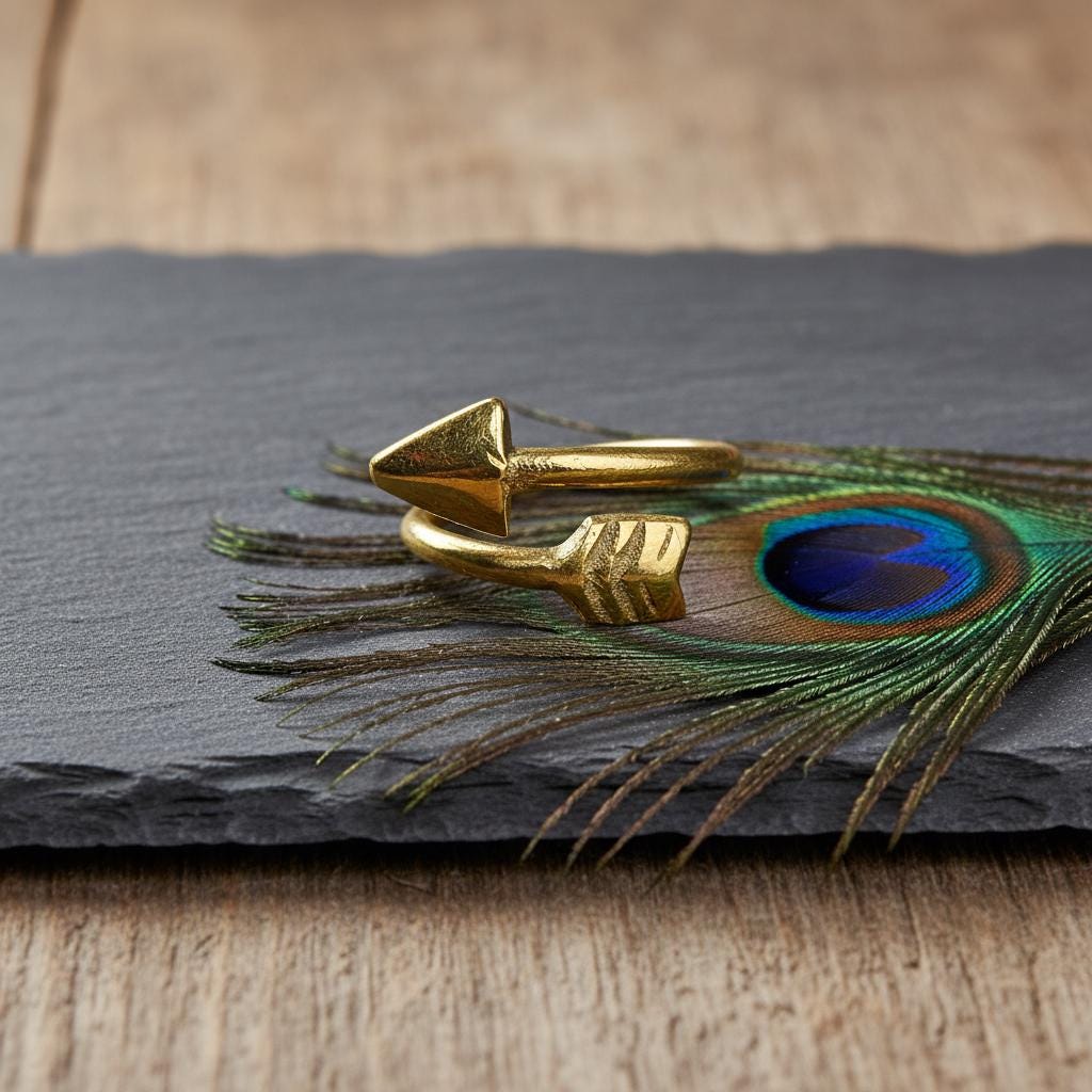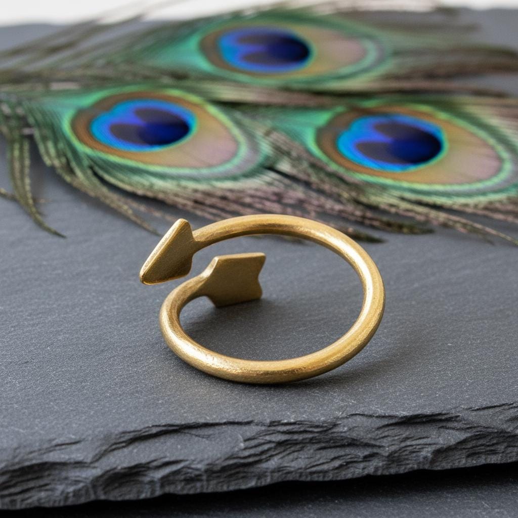 Celebrate connection, direction, and love with this minimalist arrow ring, crafted from high-quality brass and designed to wrap gracefully around the finger.